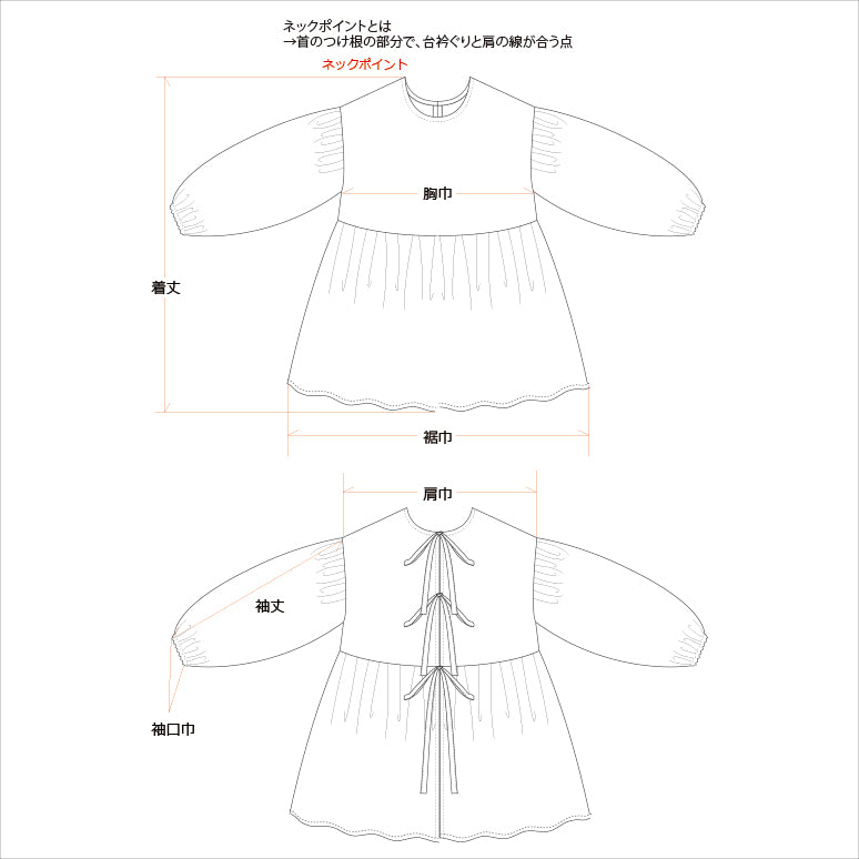 2段に切り替えた身頃には、贅沢にギャザーをたっぷり、かつ丁寧に施しました。