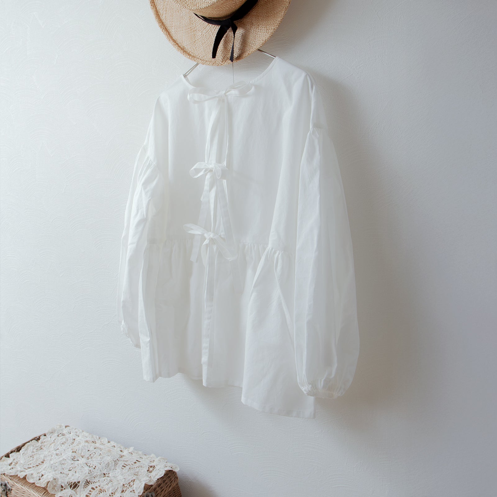 バックのリボンタイが大人かわいいティアード2WAYブラウス/オフホワイト