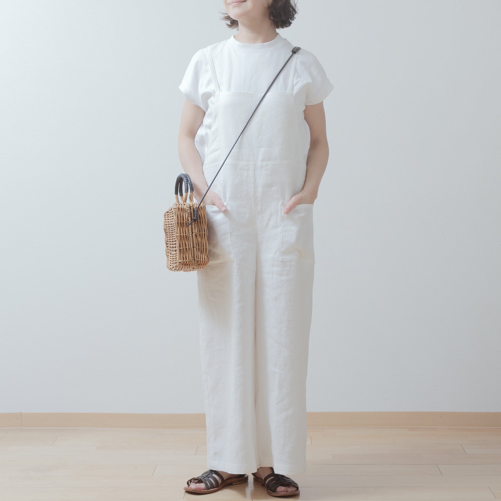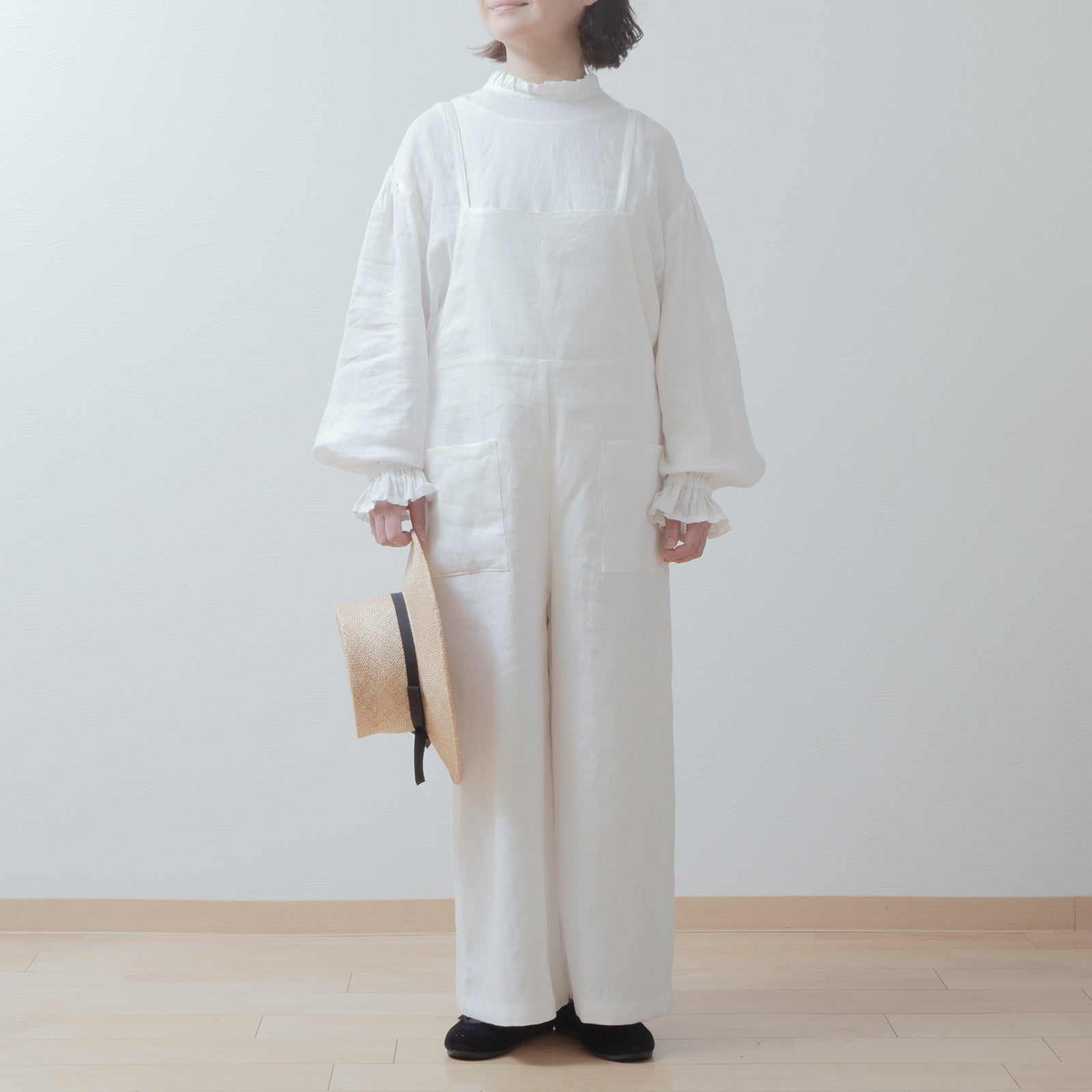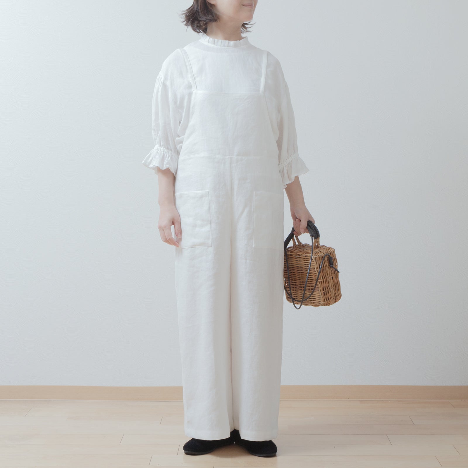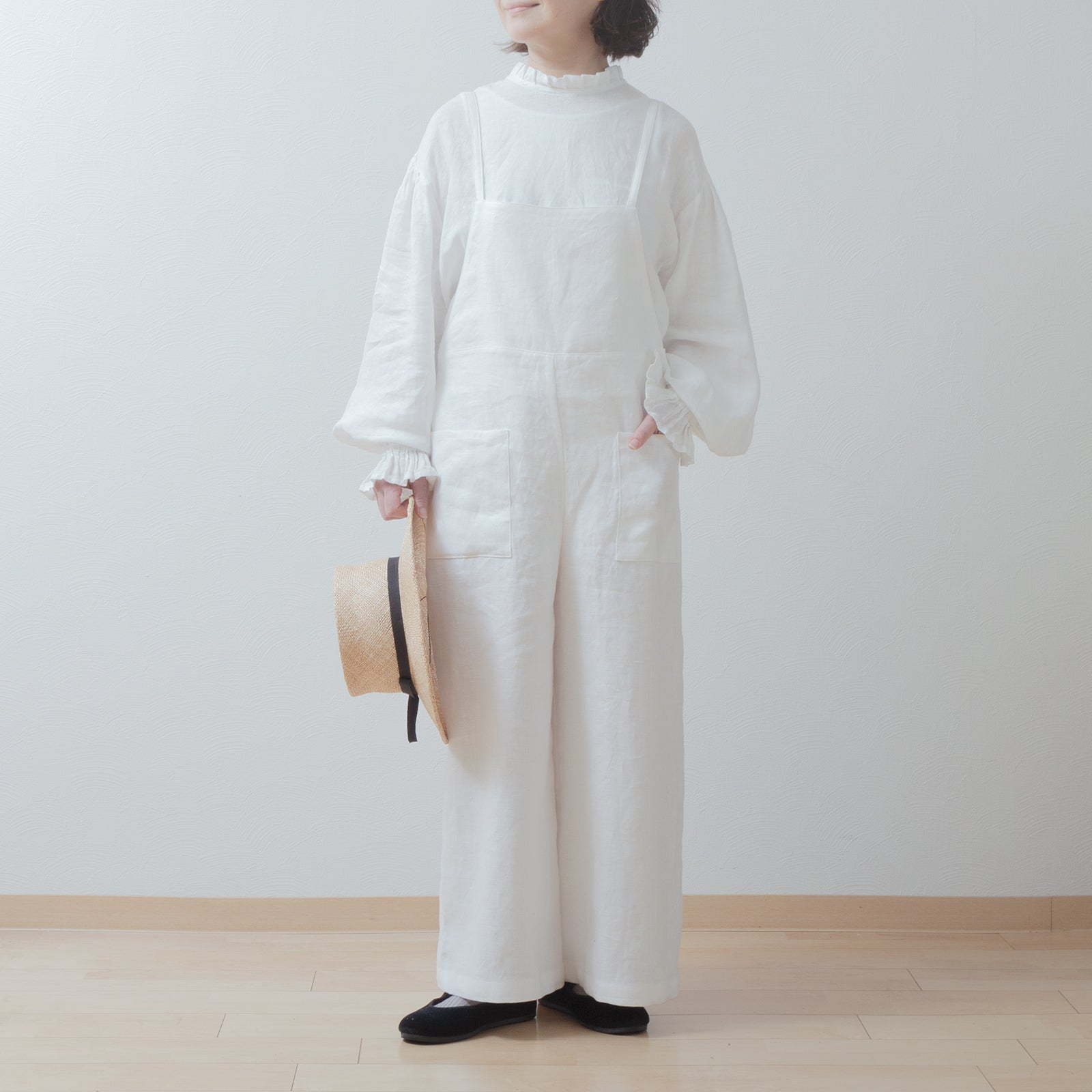 ゆるりと大人かわいいサロペットワイドパンツ-リネン/オフホワイト