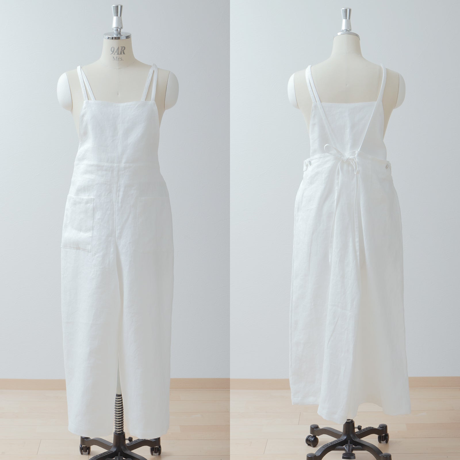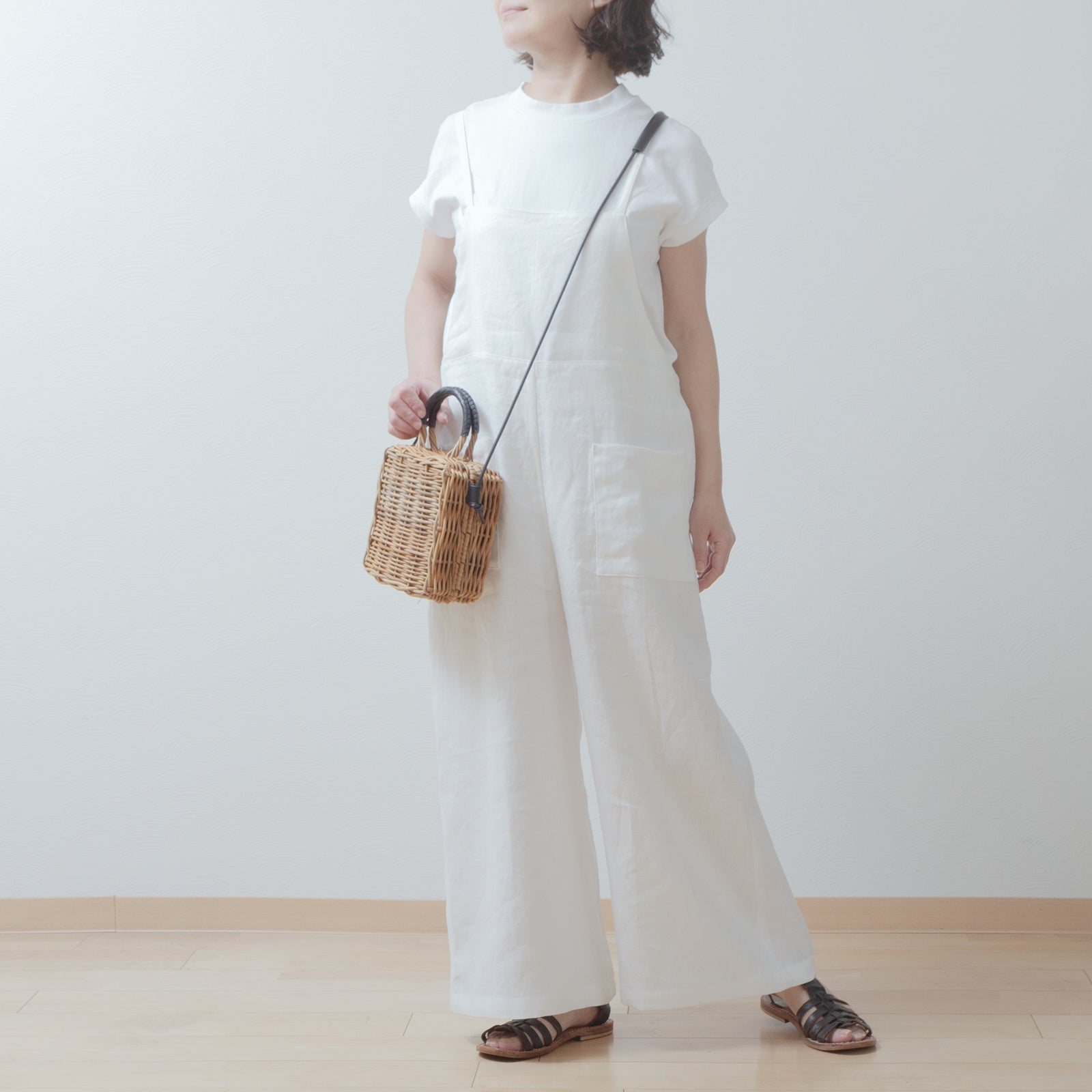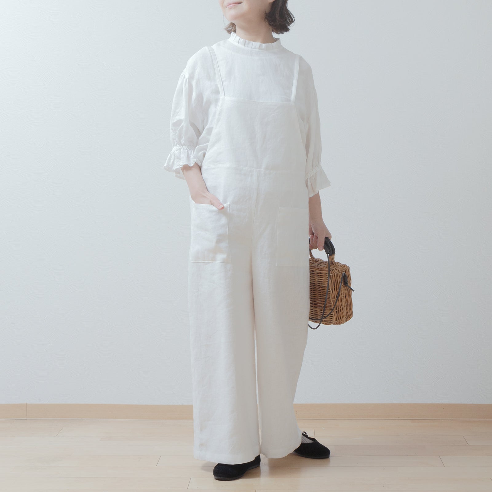 ゆるりと大人かわいいサロペットワイドパンツ-リネン/オフホワイト
