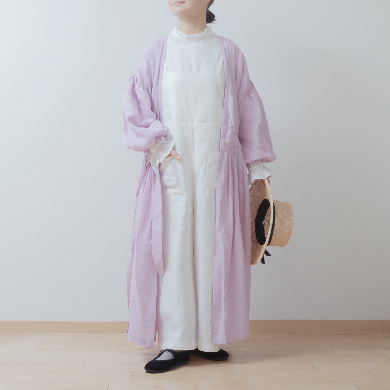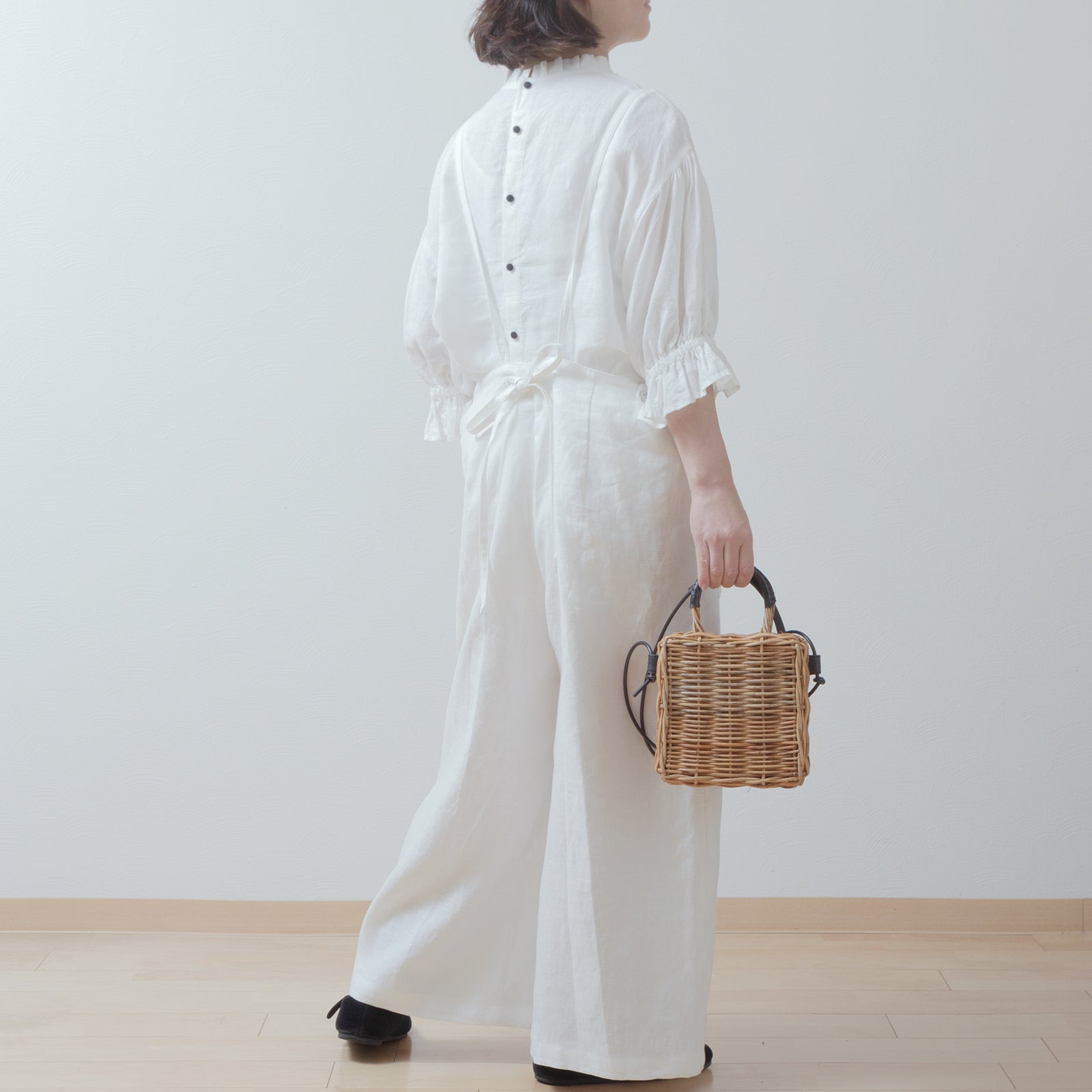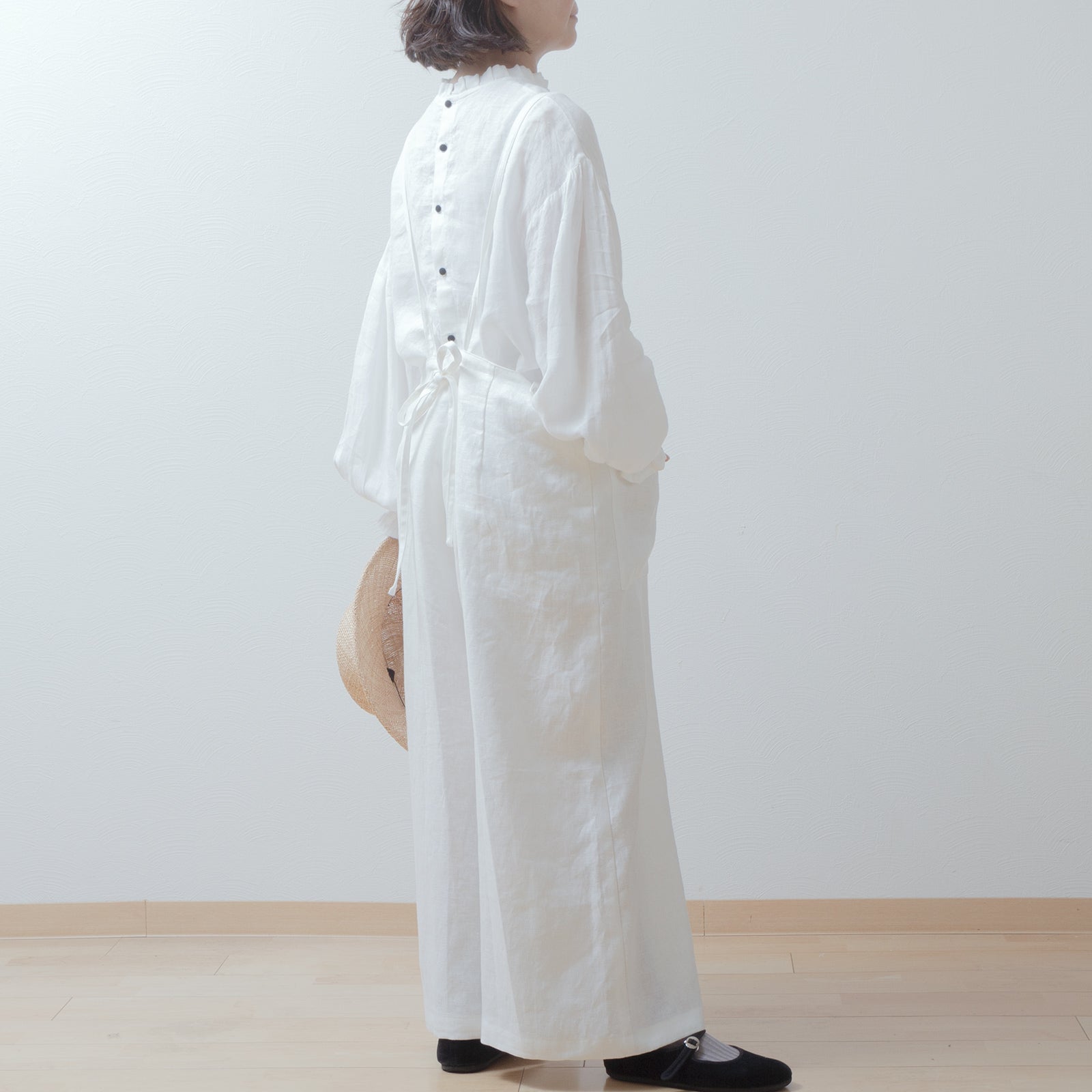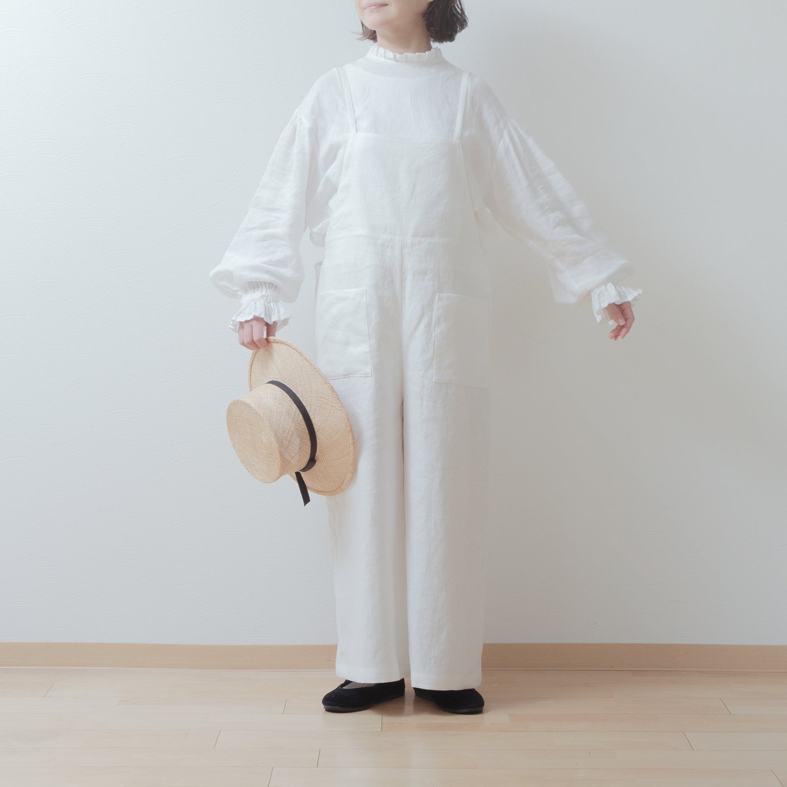 ゆるりと大人かわいいサロペットワイドパンツ-リネン/オフホワイト