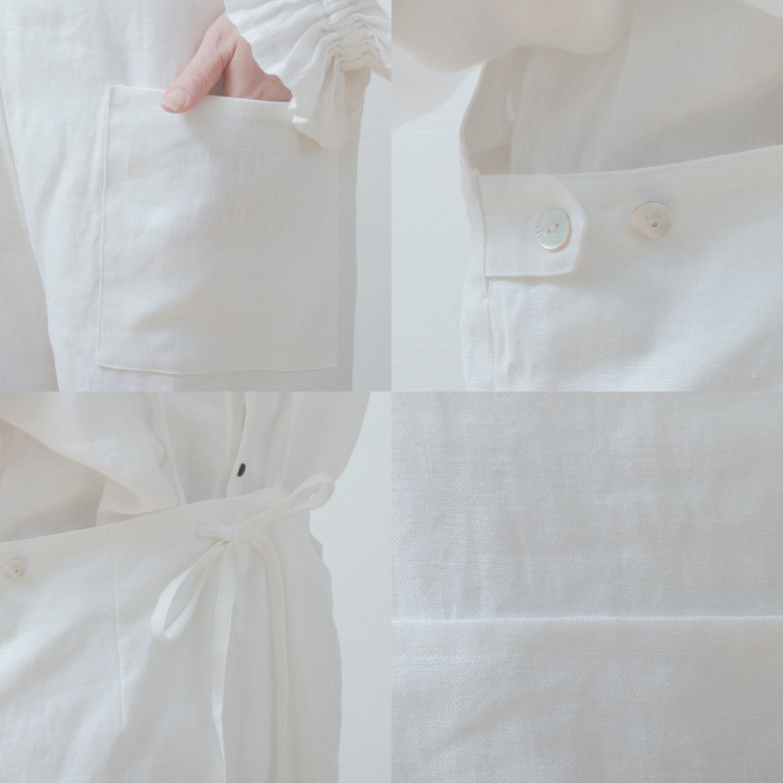 太めの糸でざっくり織り上げられたやや厚手のツイルリネンは、カジュアルすぎず大人クリーンな印象に