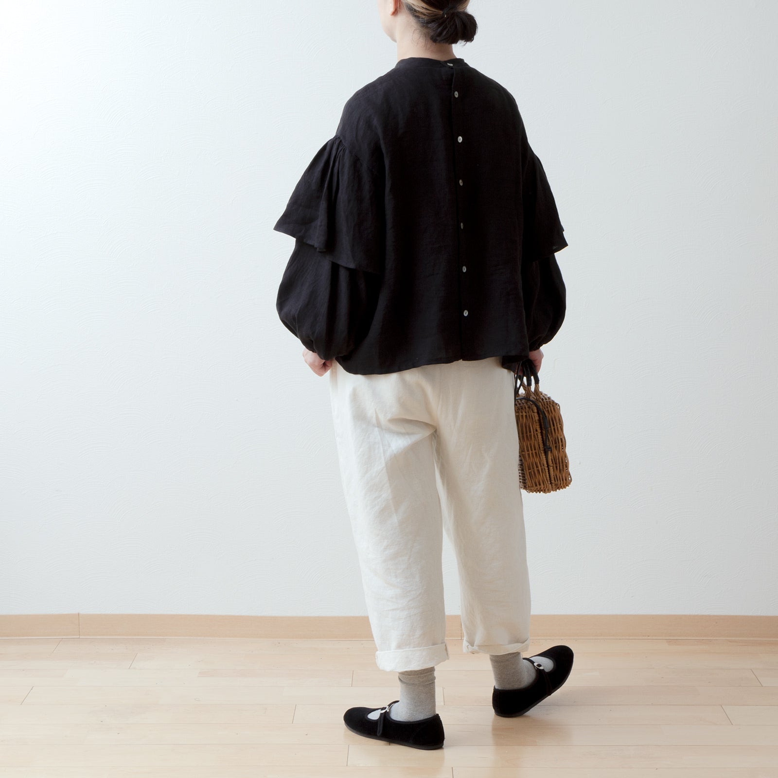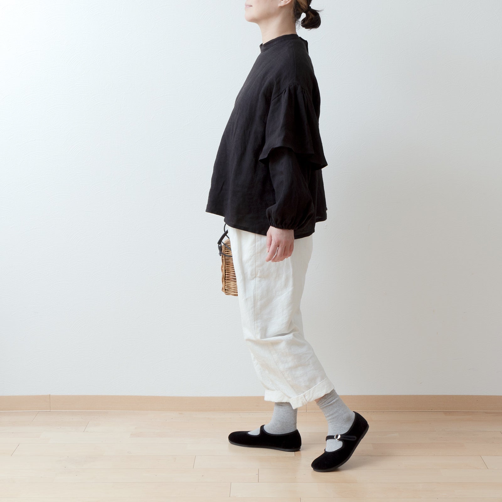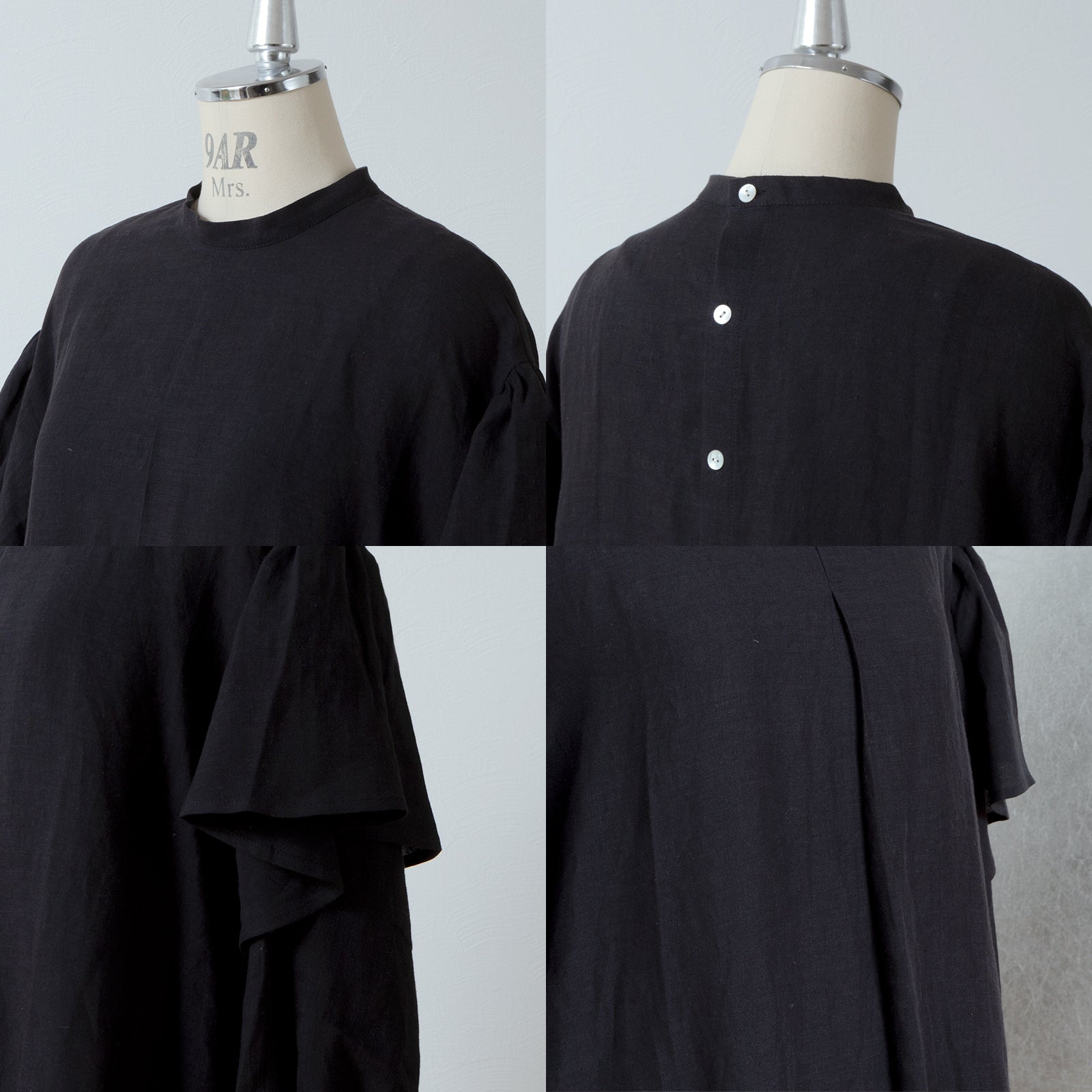 ダブルスリーブリネンブラウス/ブラック