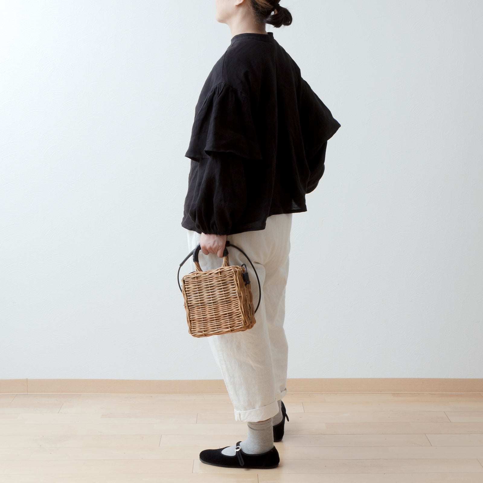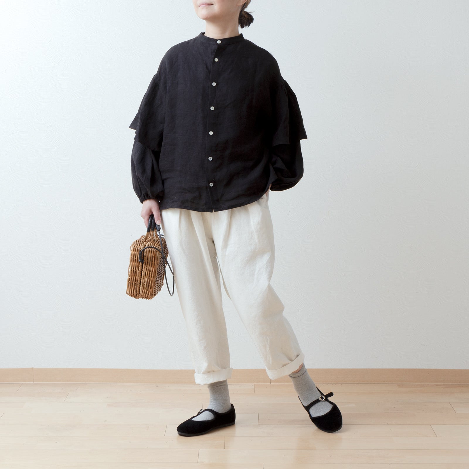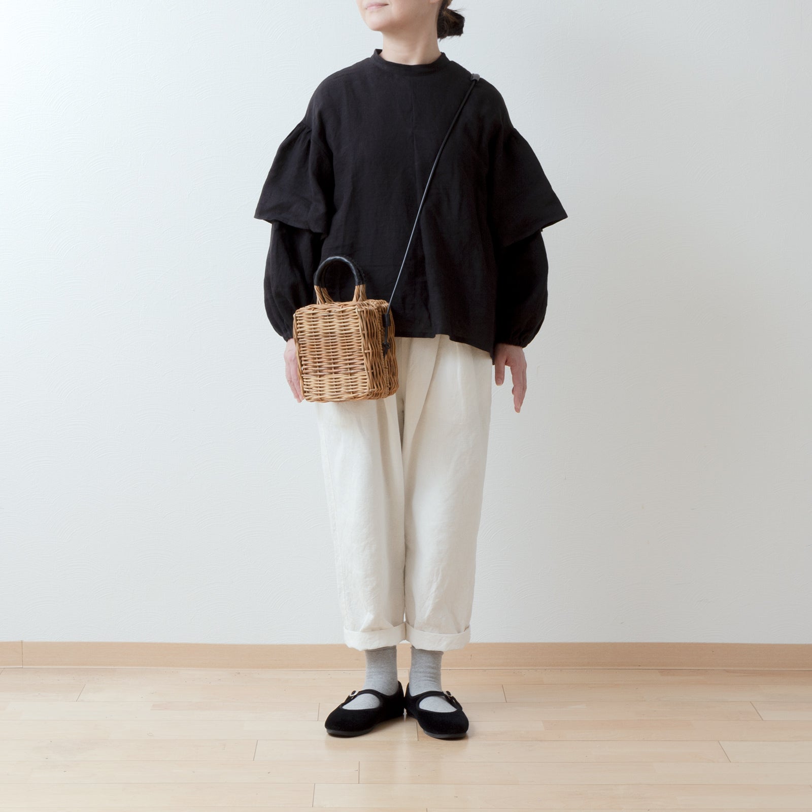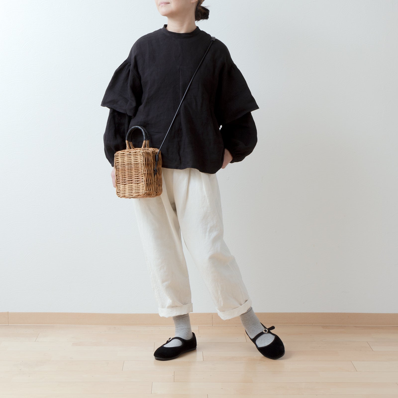 ダブルスリーブリネンブラウス/ブラック