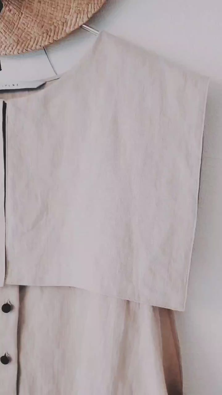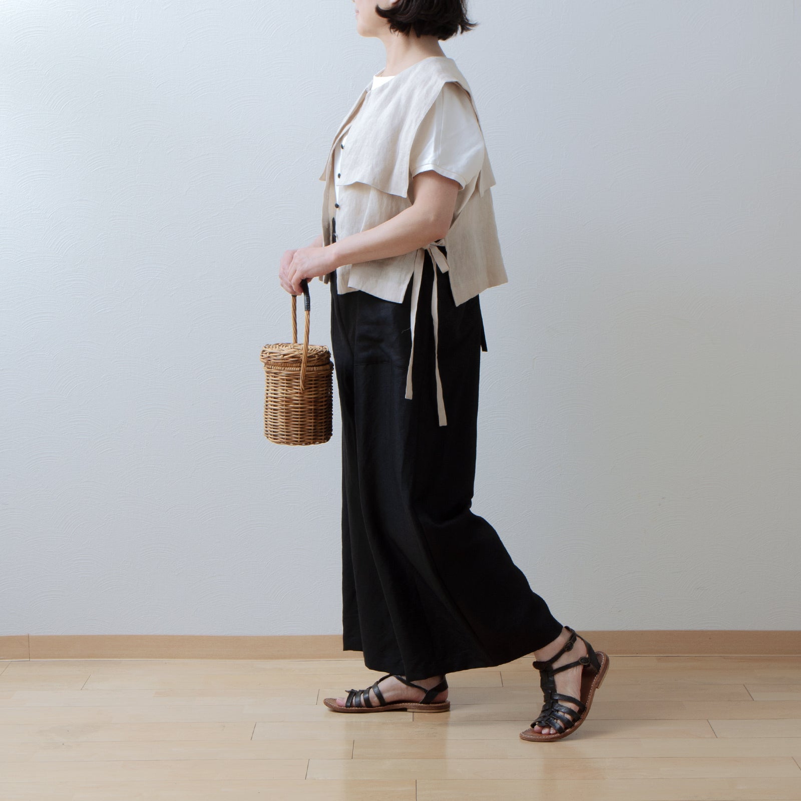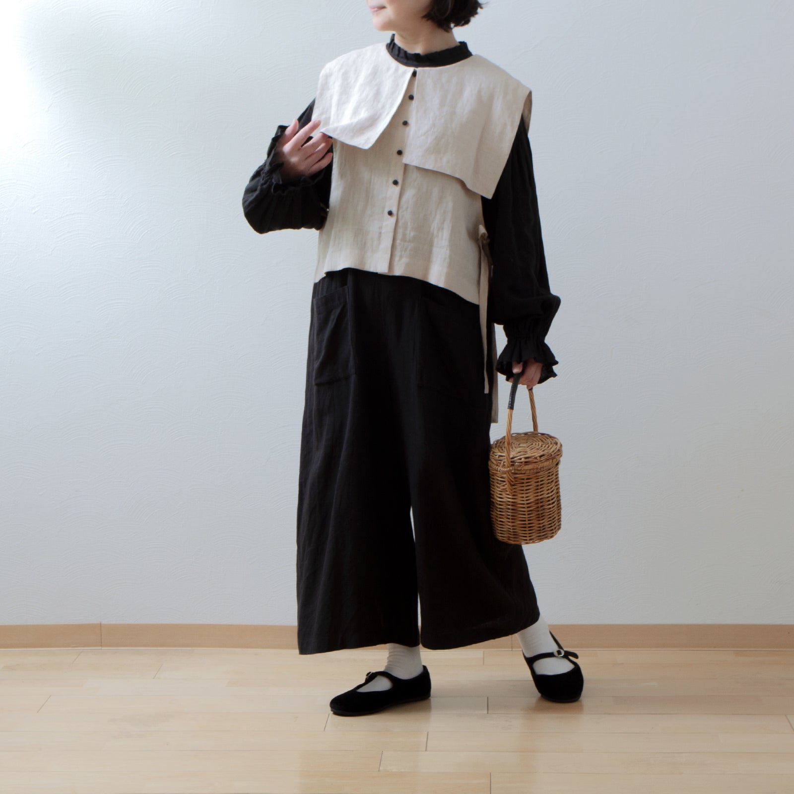 60番手の細糸の透け感があるリネンなので、清涼感と軽やかさがあり、暑さ残る季節に心地いい着心地です。