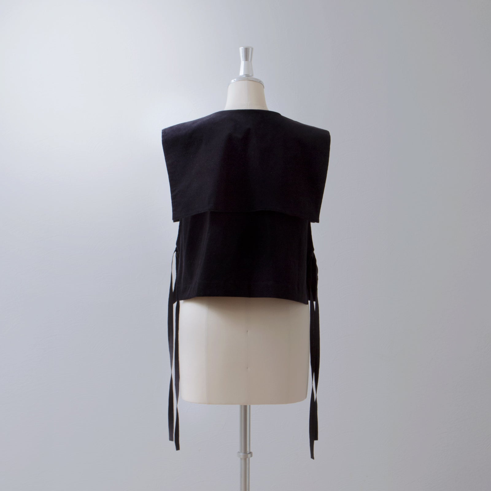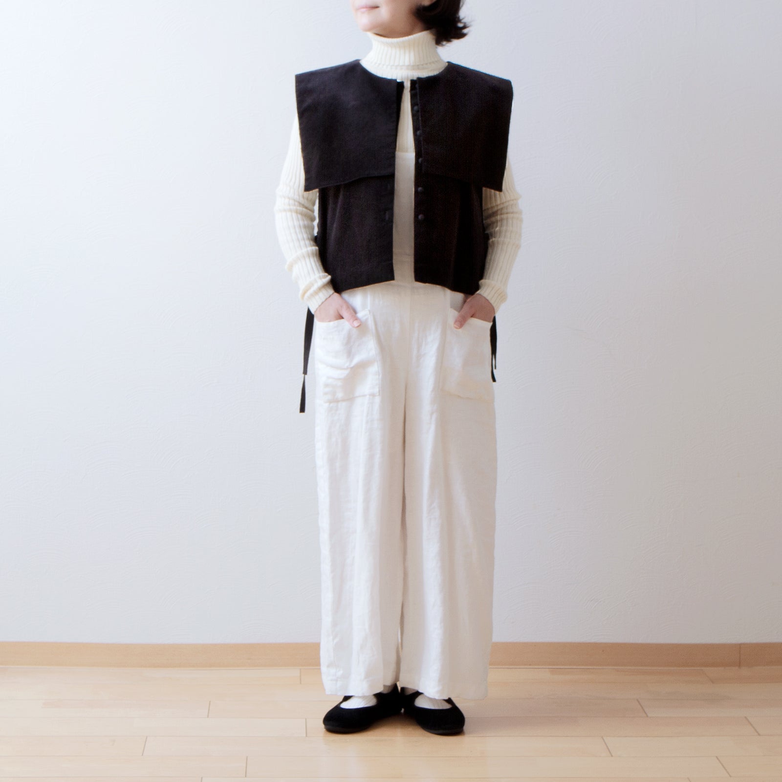 ・カシュクールサロペットワイドパンツ-リネン/ブラック