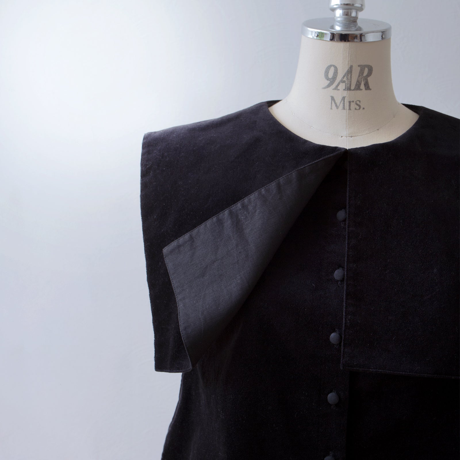 大きめの衿は子供っぽくなりがちですが、スクエア型なので大人シックに着こなせるデザイン