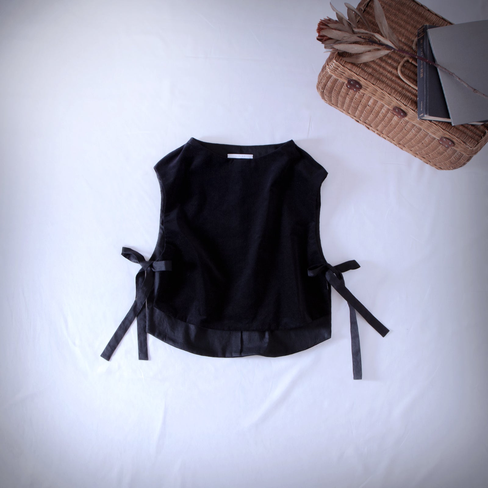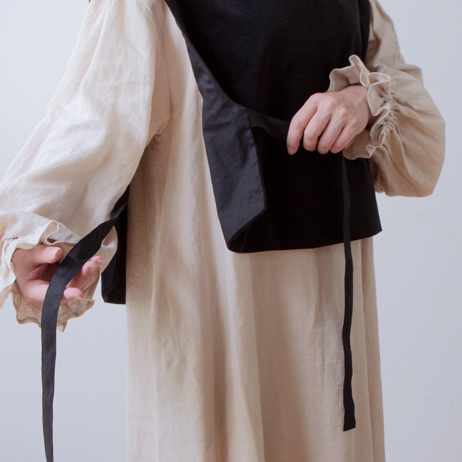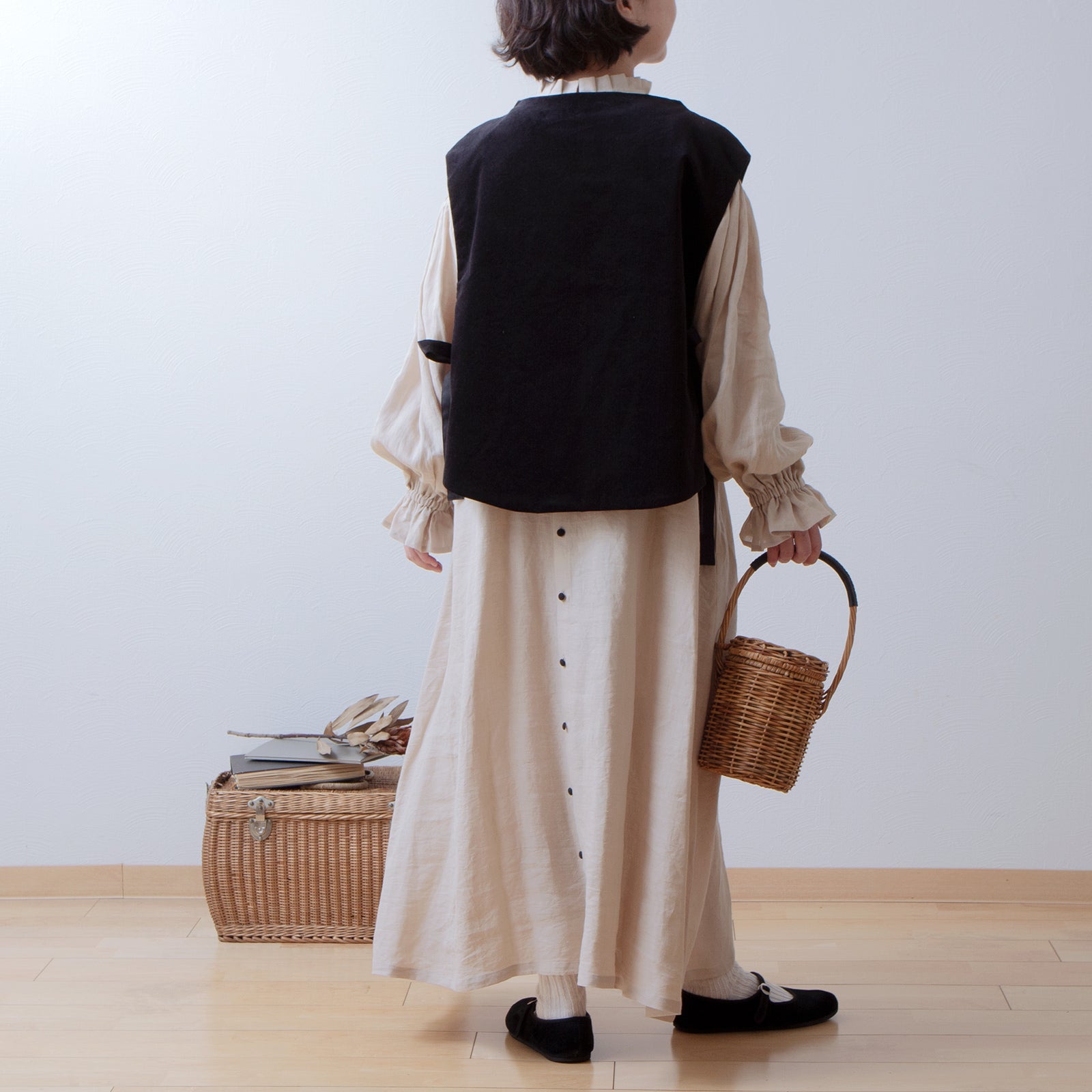同じリネンコットン素材のサイドリボンテープが、ガーリーな雰囲気でアクセントにも◎