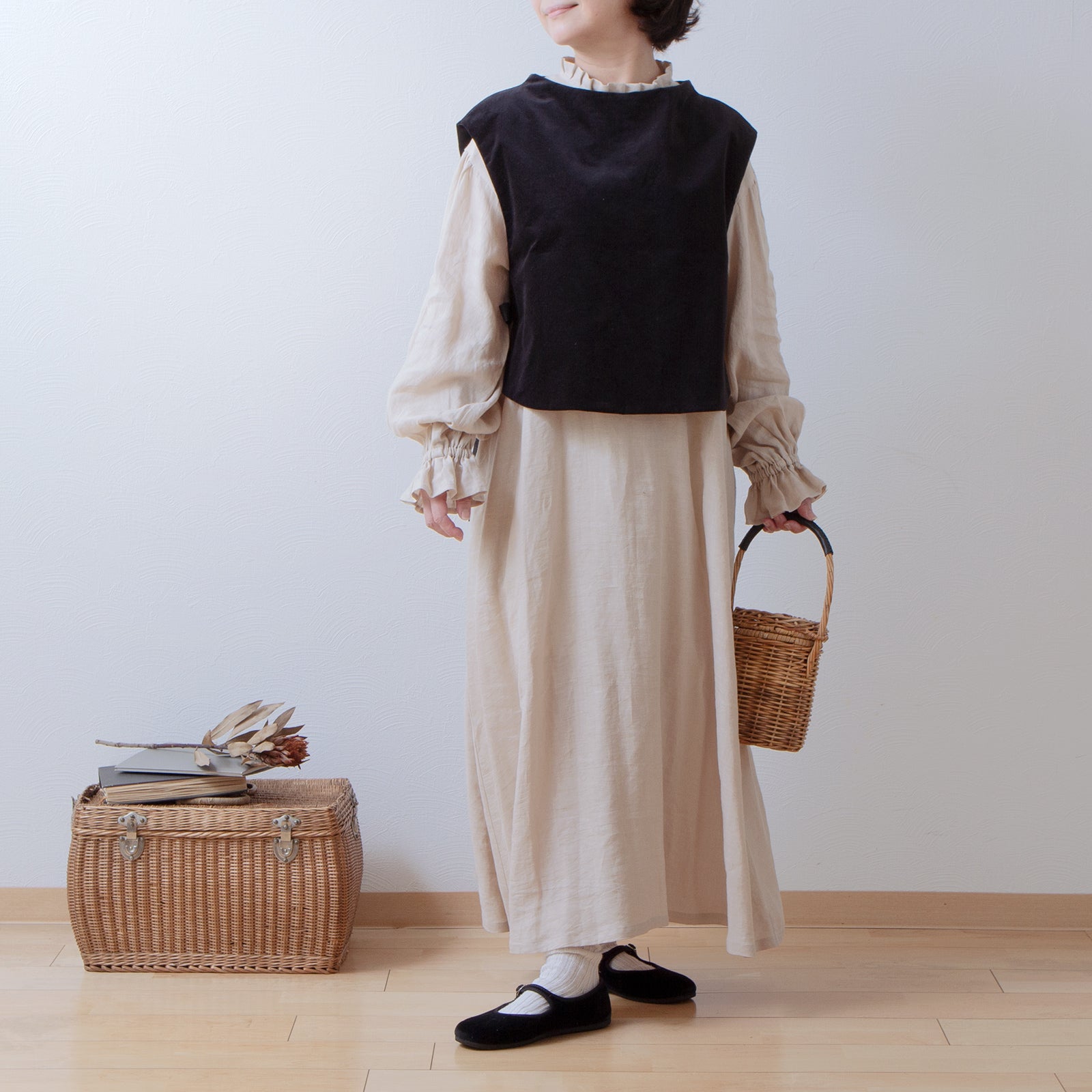 タックフリル衿ロングギャザースリーブワンピース/ベージュ