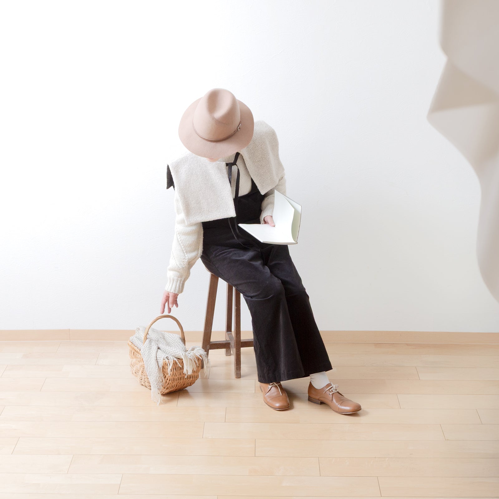 這款布料採用人字形編織,由來自備州(愛知縣西部)的再生羊毛“Kesichi”製成。它沒有羊毛的刺癢感,經過起毛和水洗處理,擁有蓬鬆的質感。