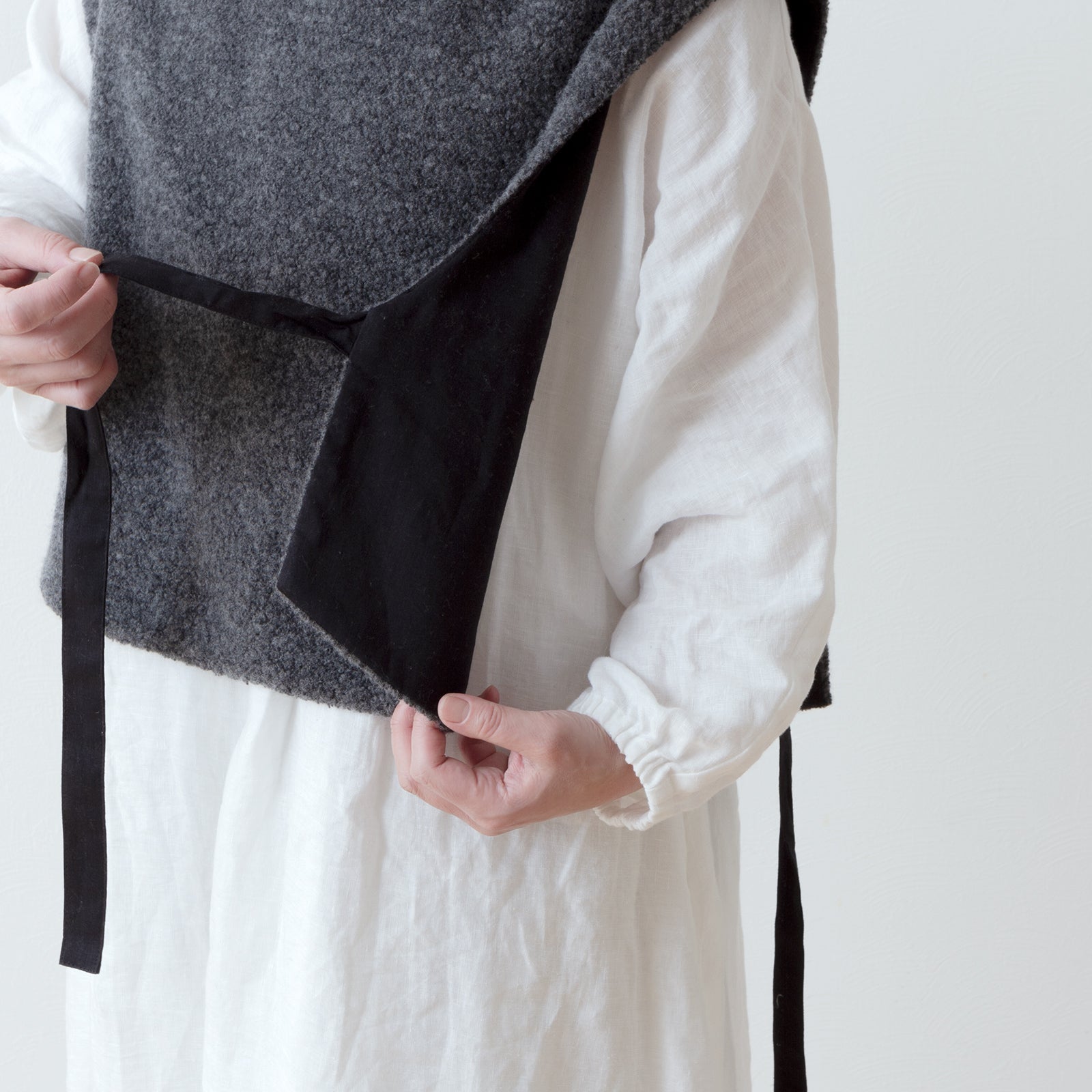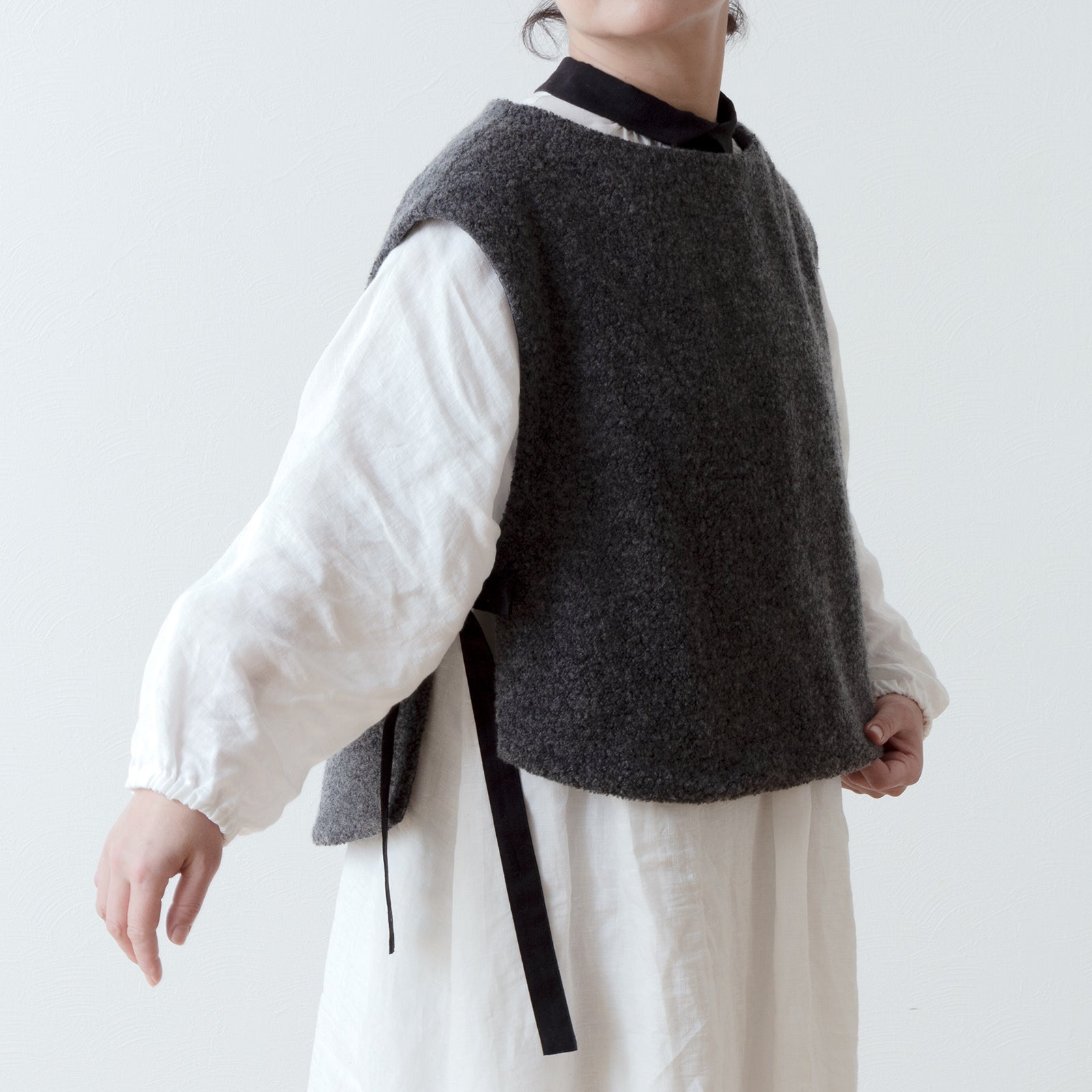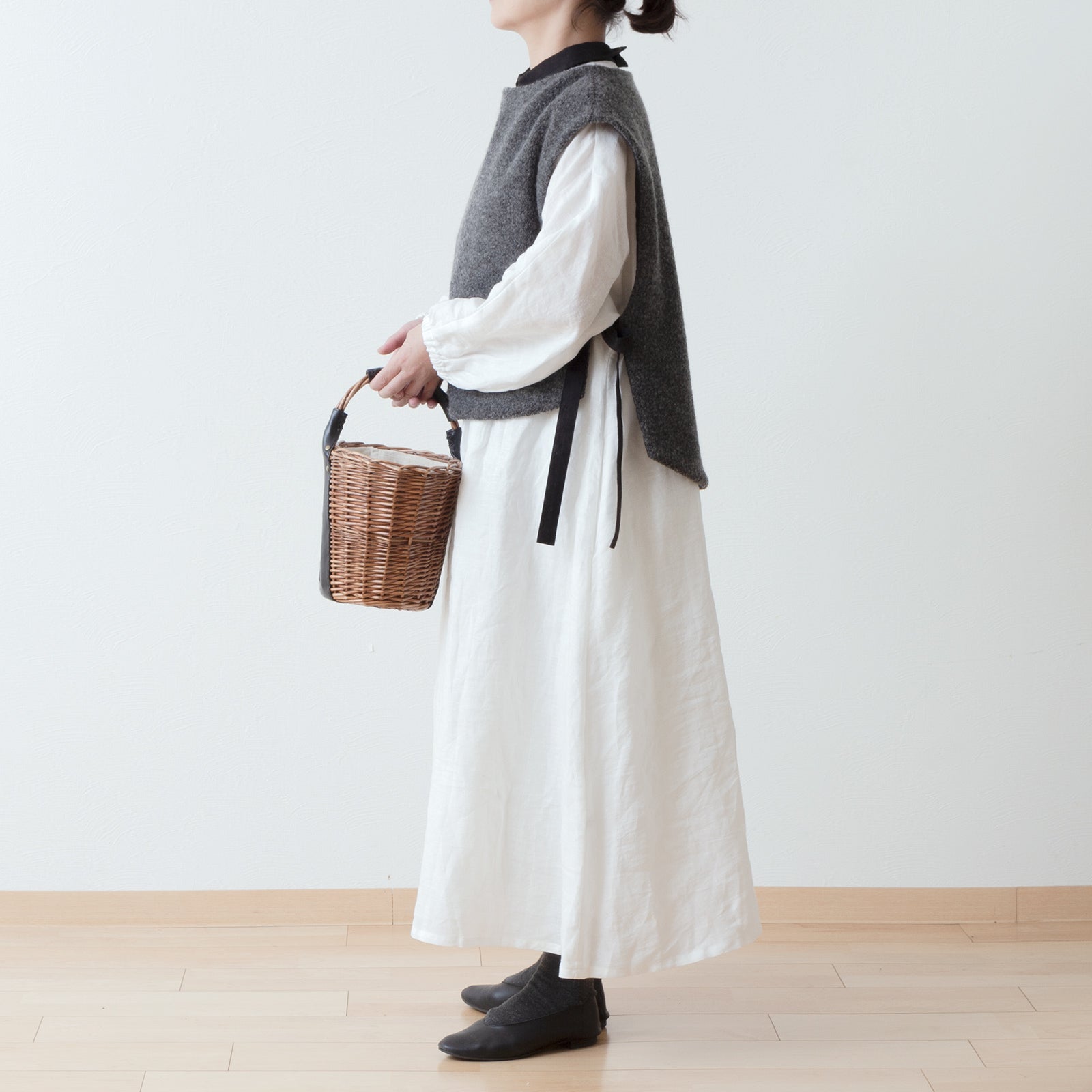 側面的絲帶採用相同的亞麻棉材料製成,增添了少女氣息,突出了服裝的特色。