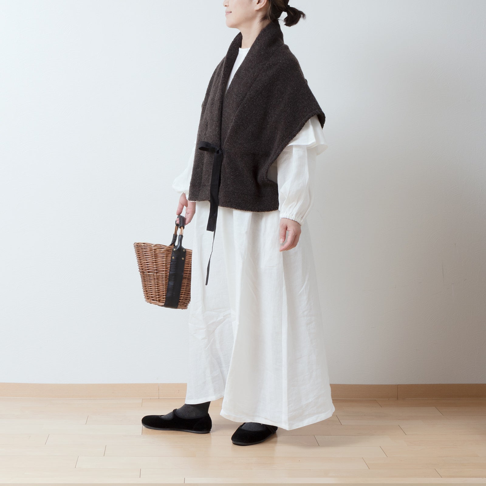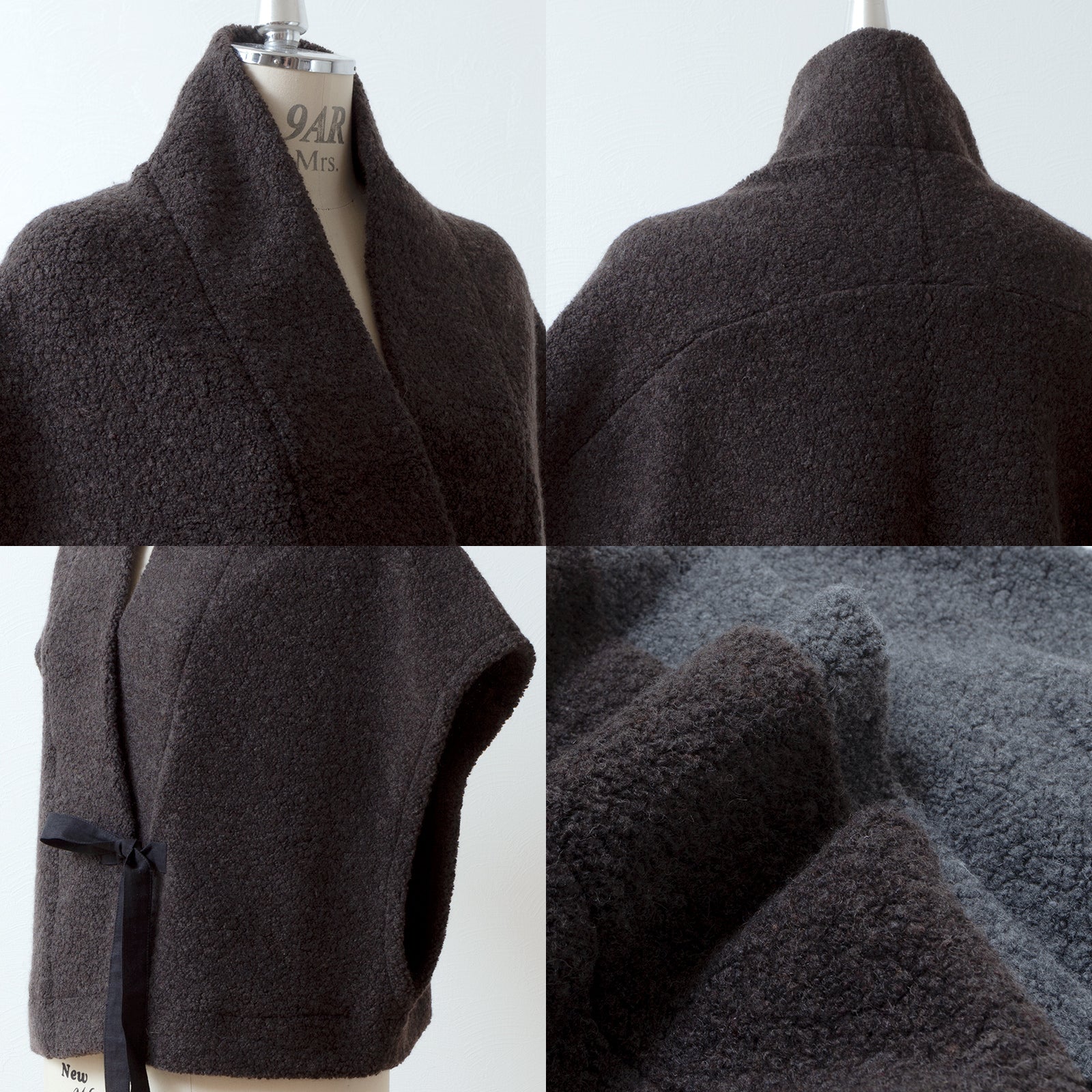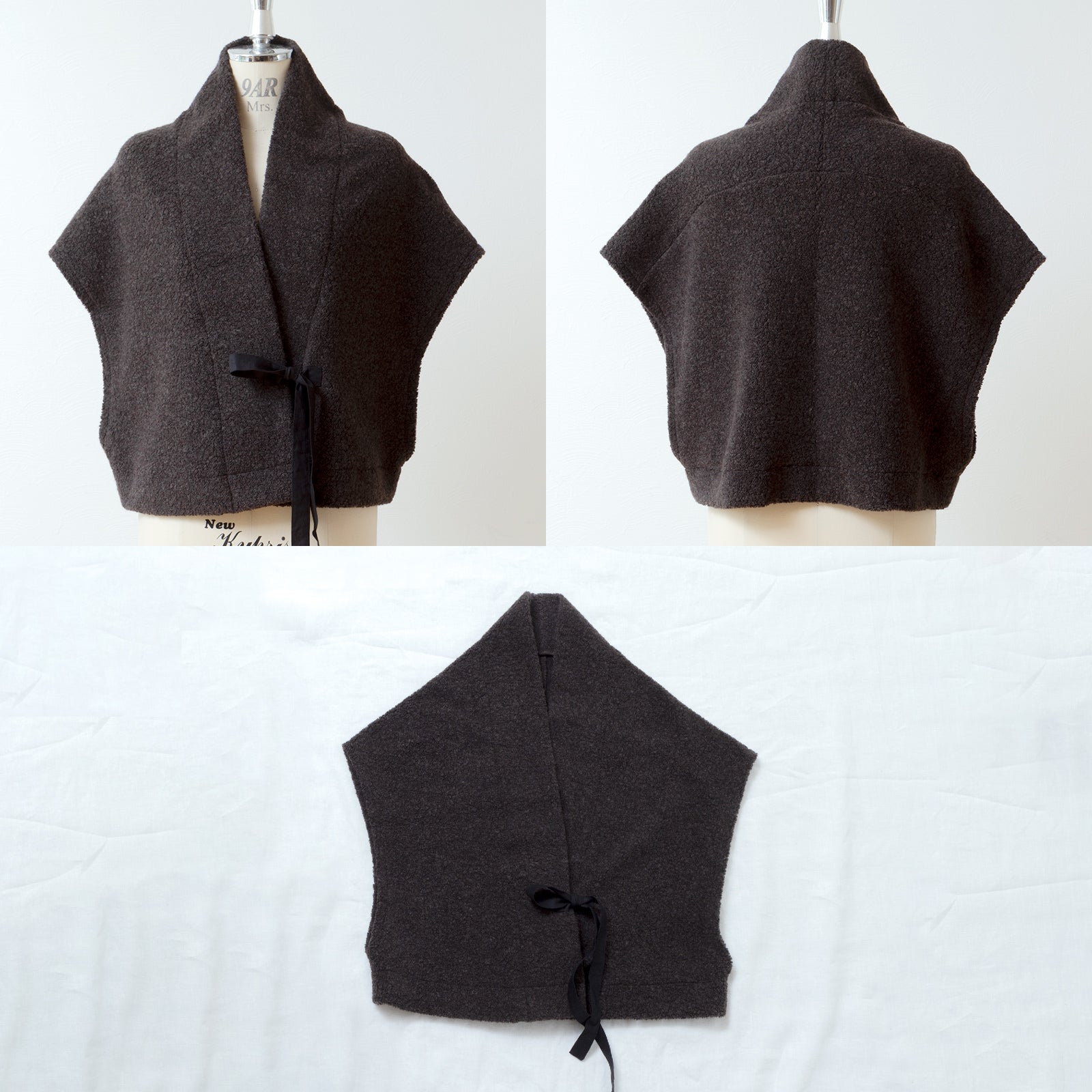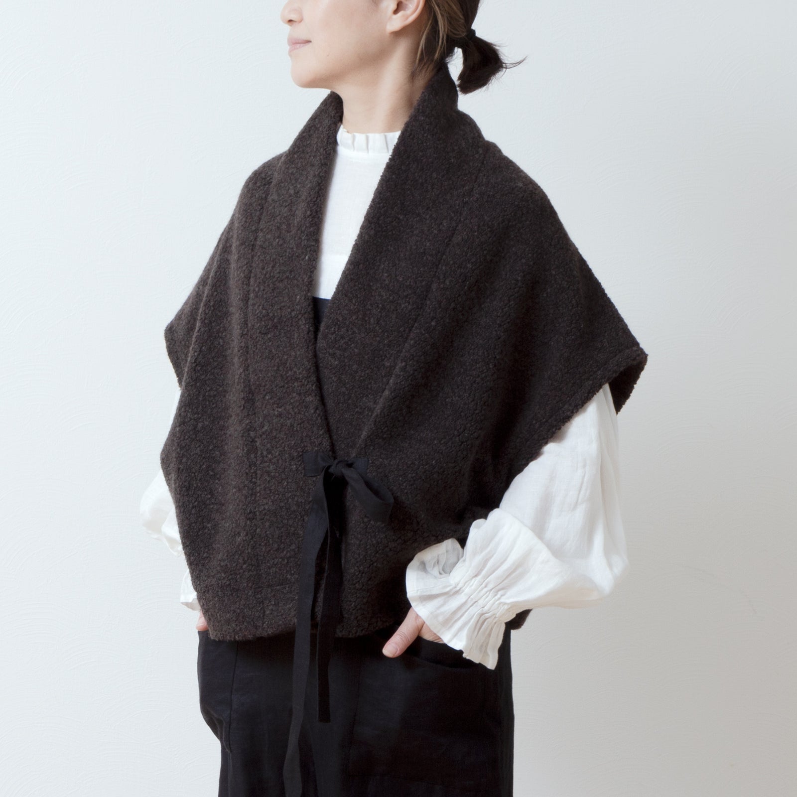 高品質羊毛圍巾披肩背心配緞帶/深棕色