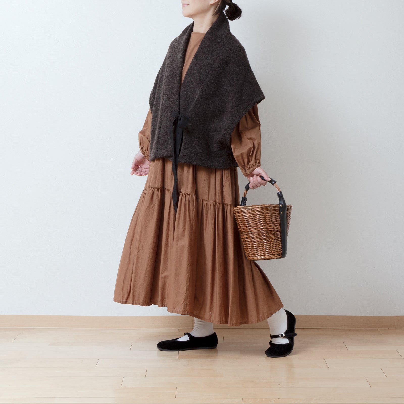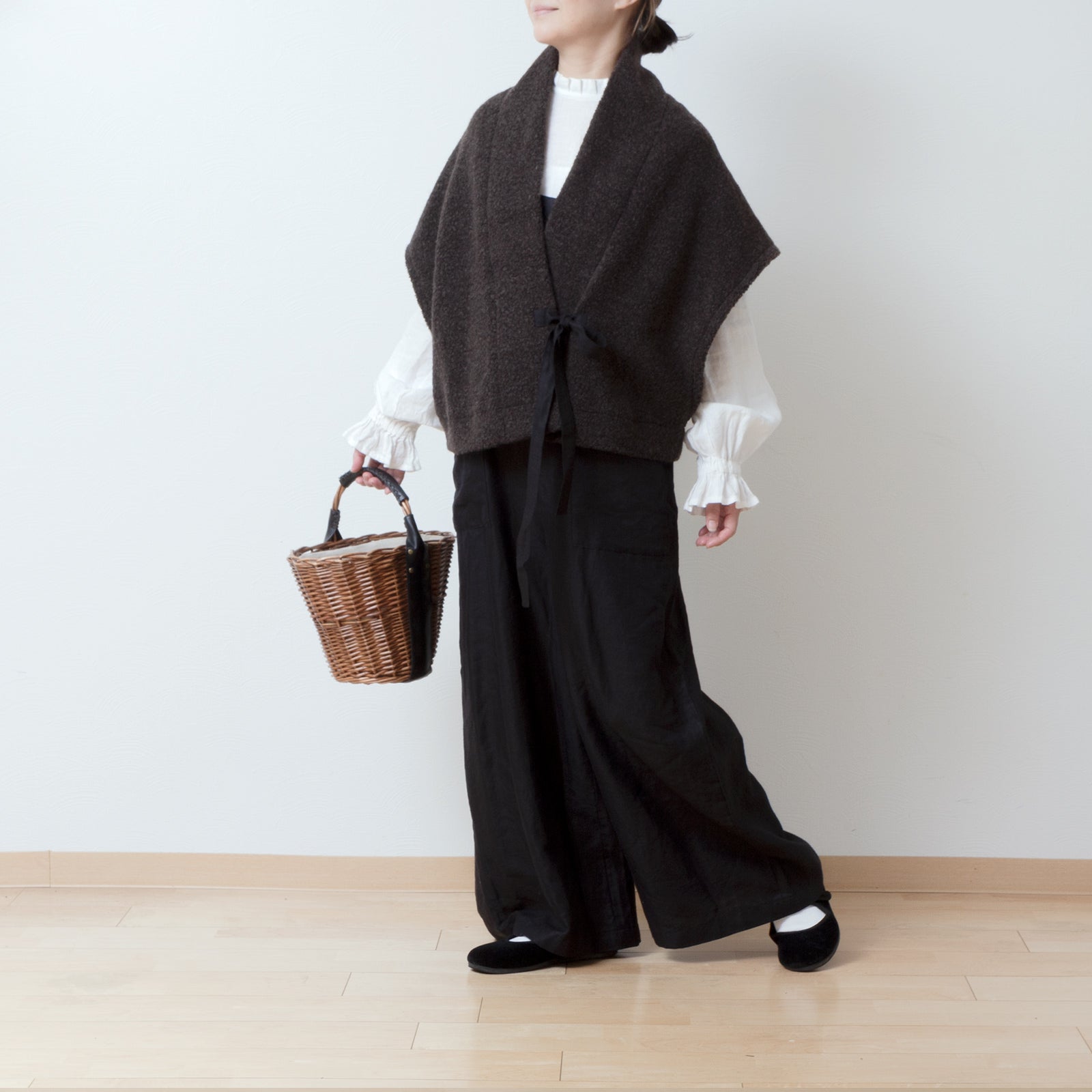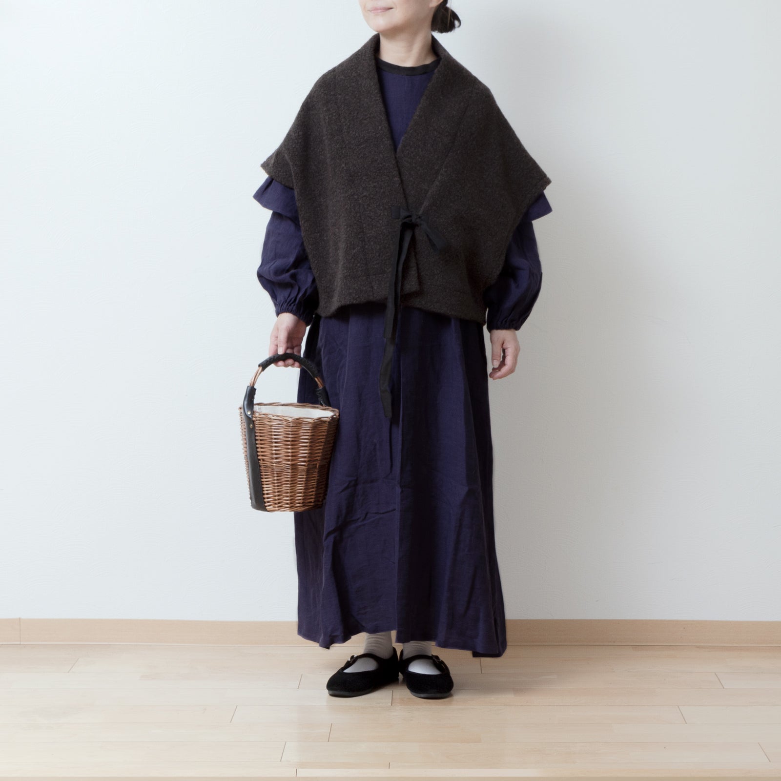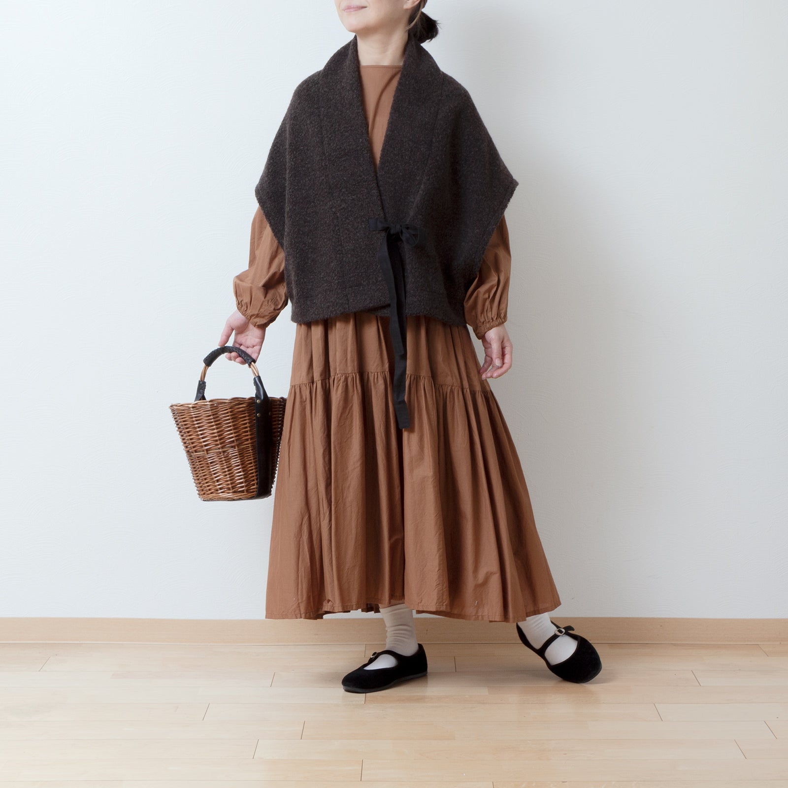 高品質羊毛圍巾披肩背心配緞帶/深棕色