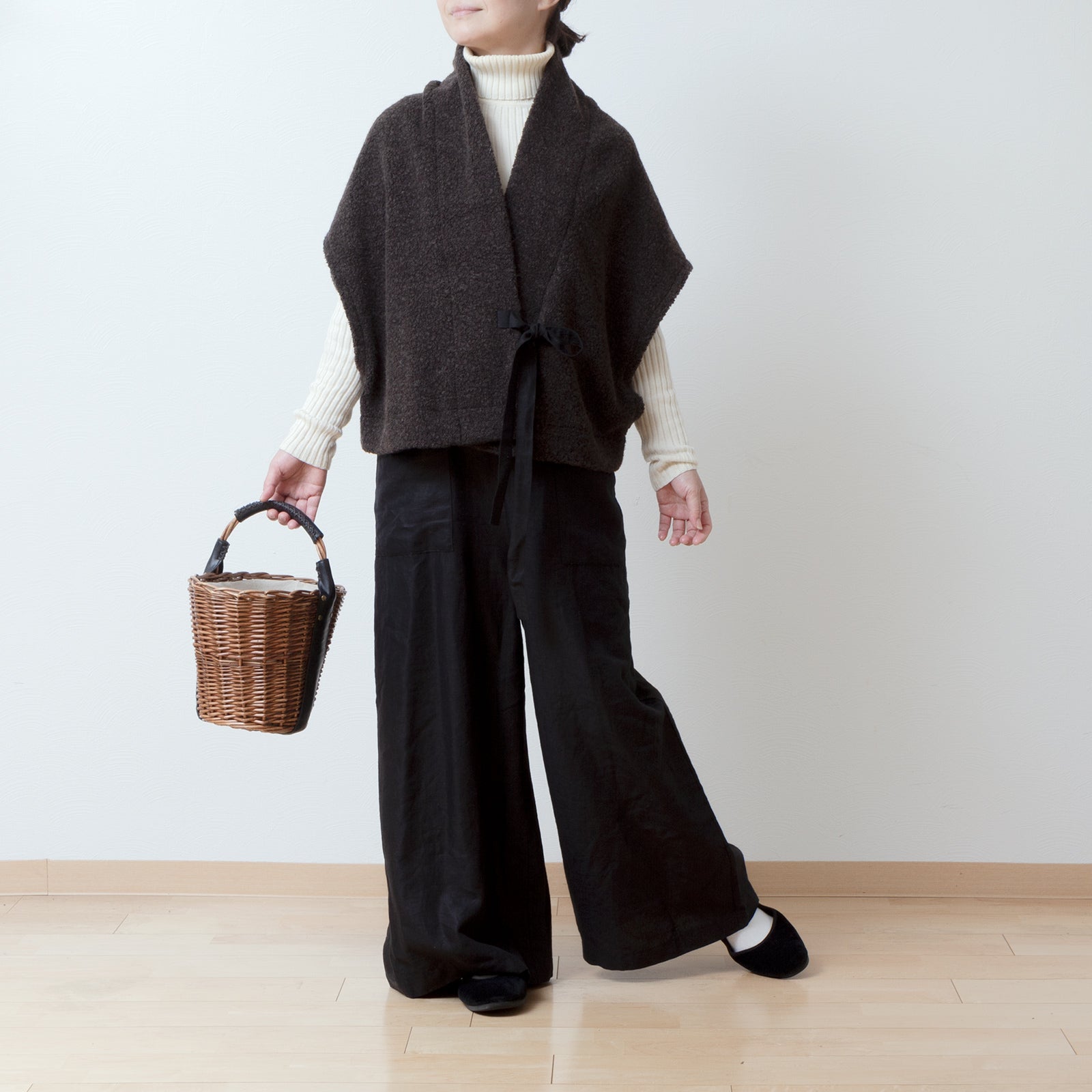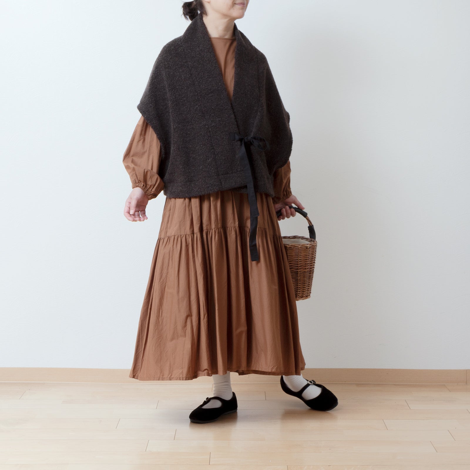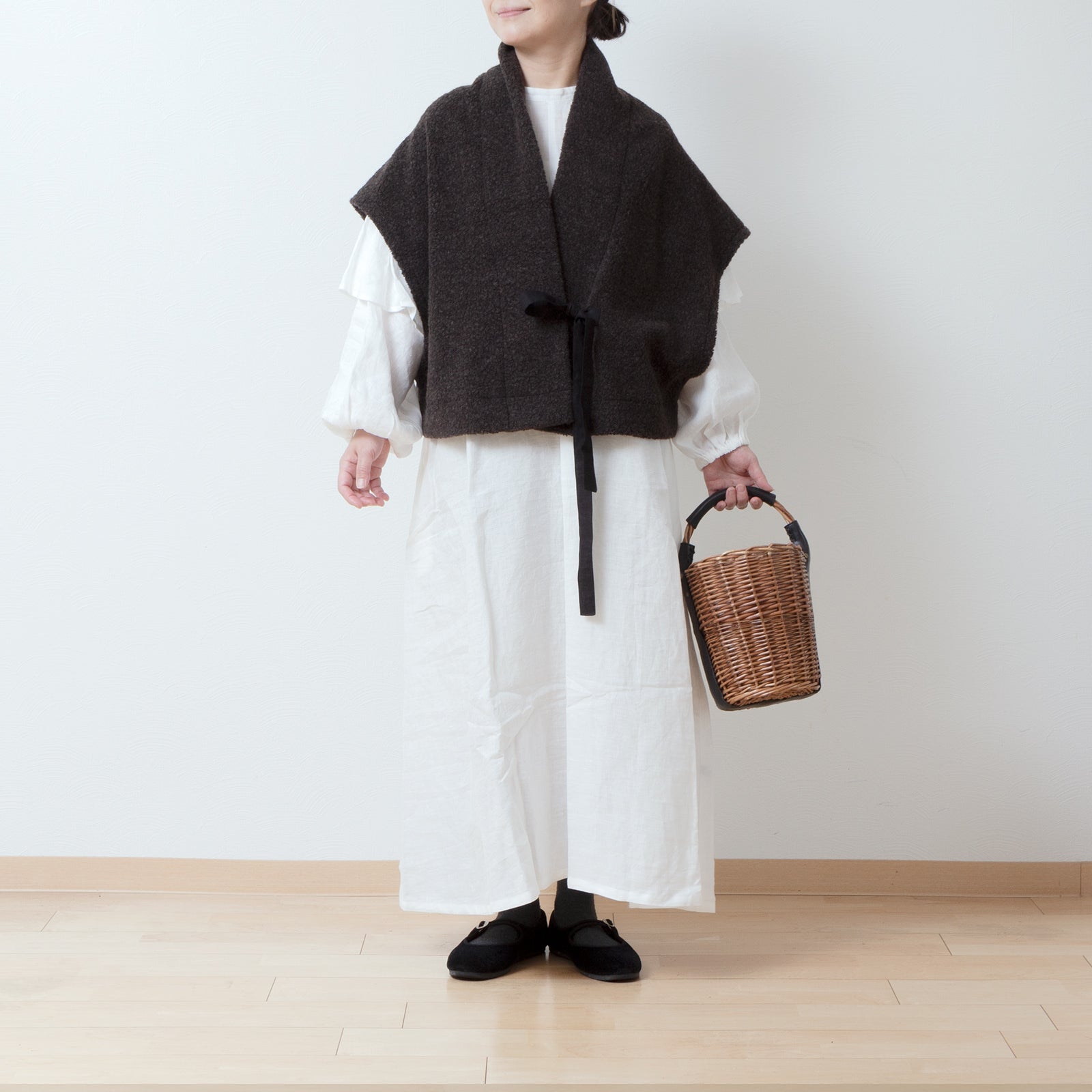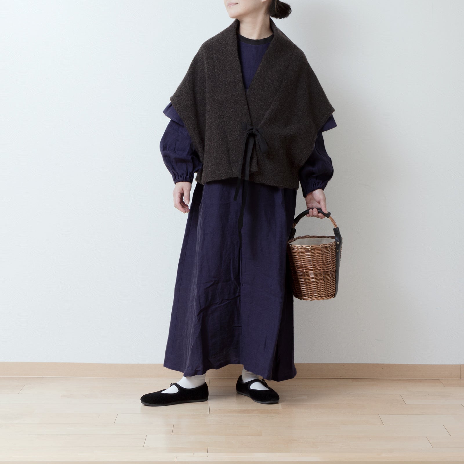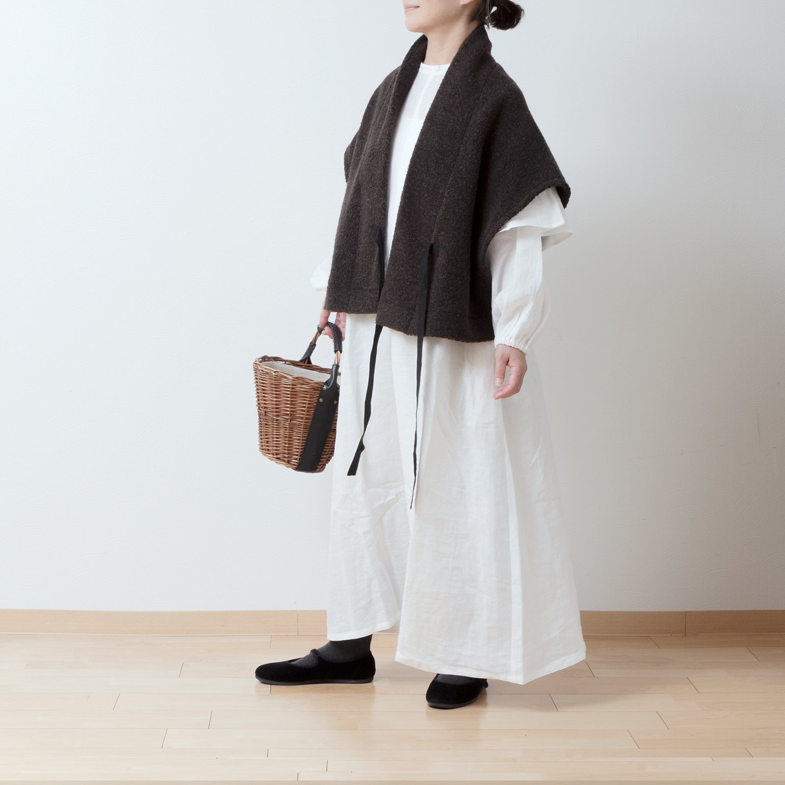 高品質羊毛圍巾披肩背心配緞帶/深棕色