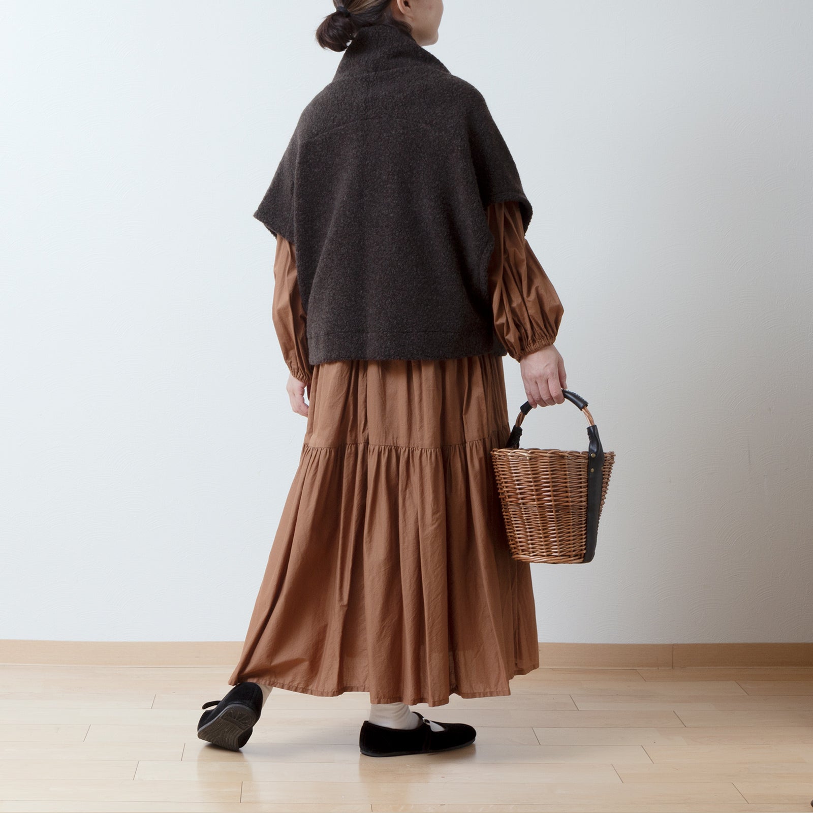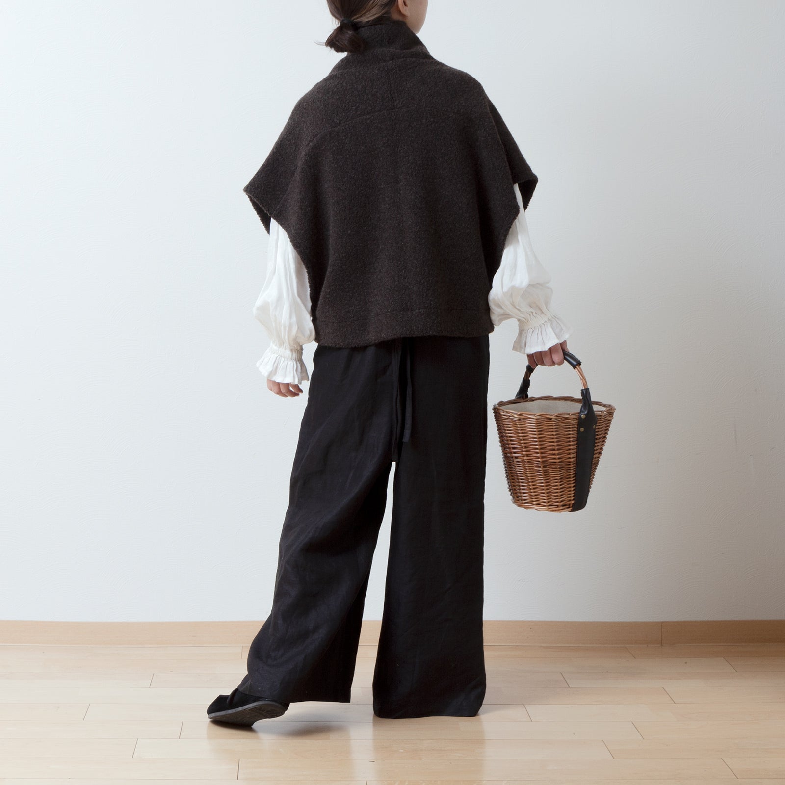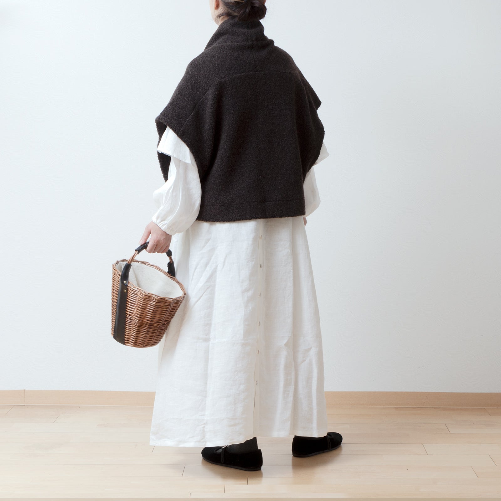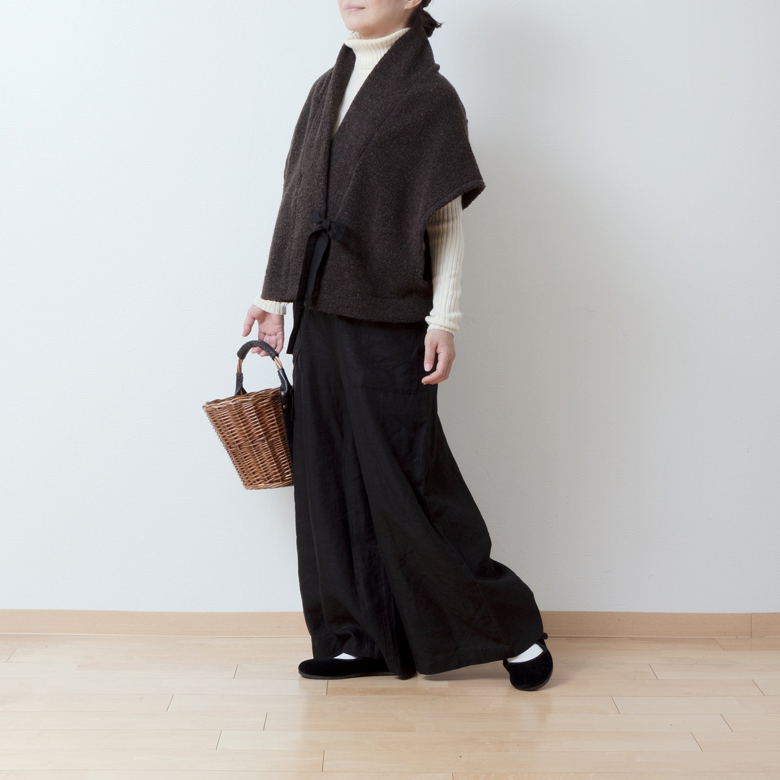 高品質羊毛圍巾披肩背心配緞帶/深棕色
