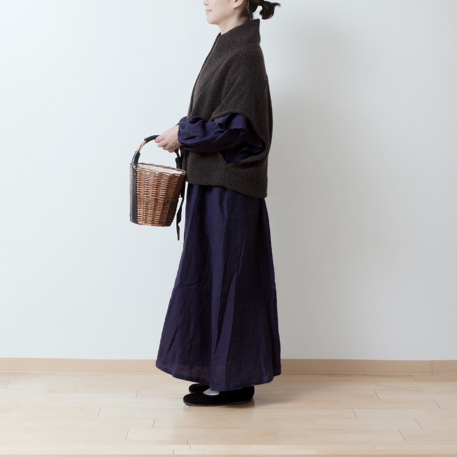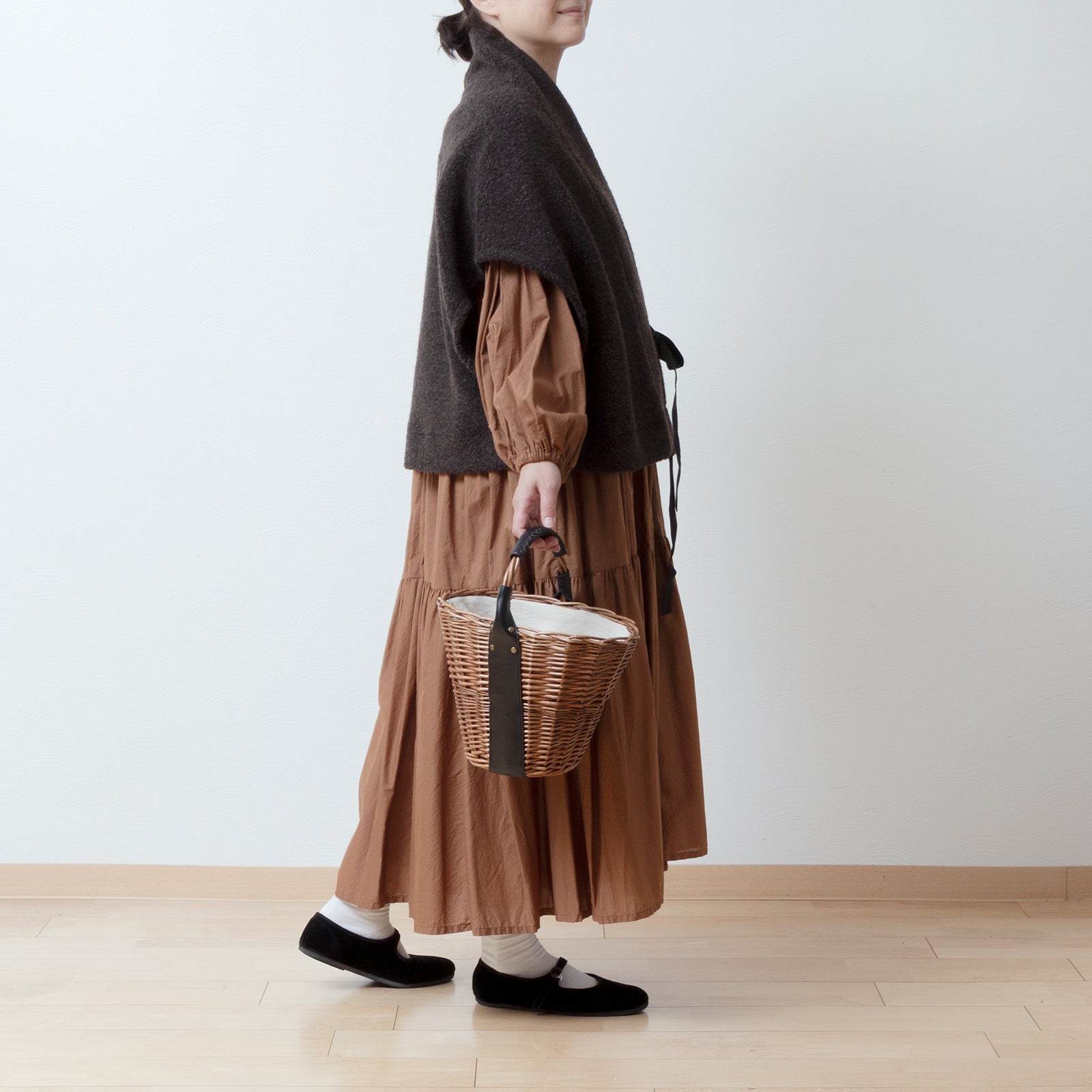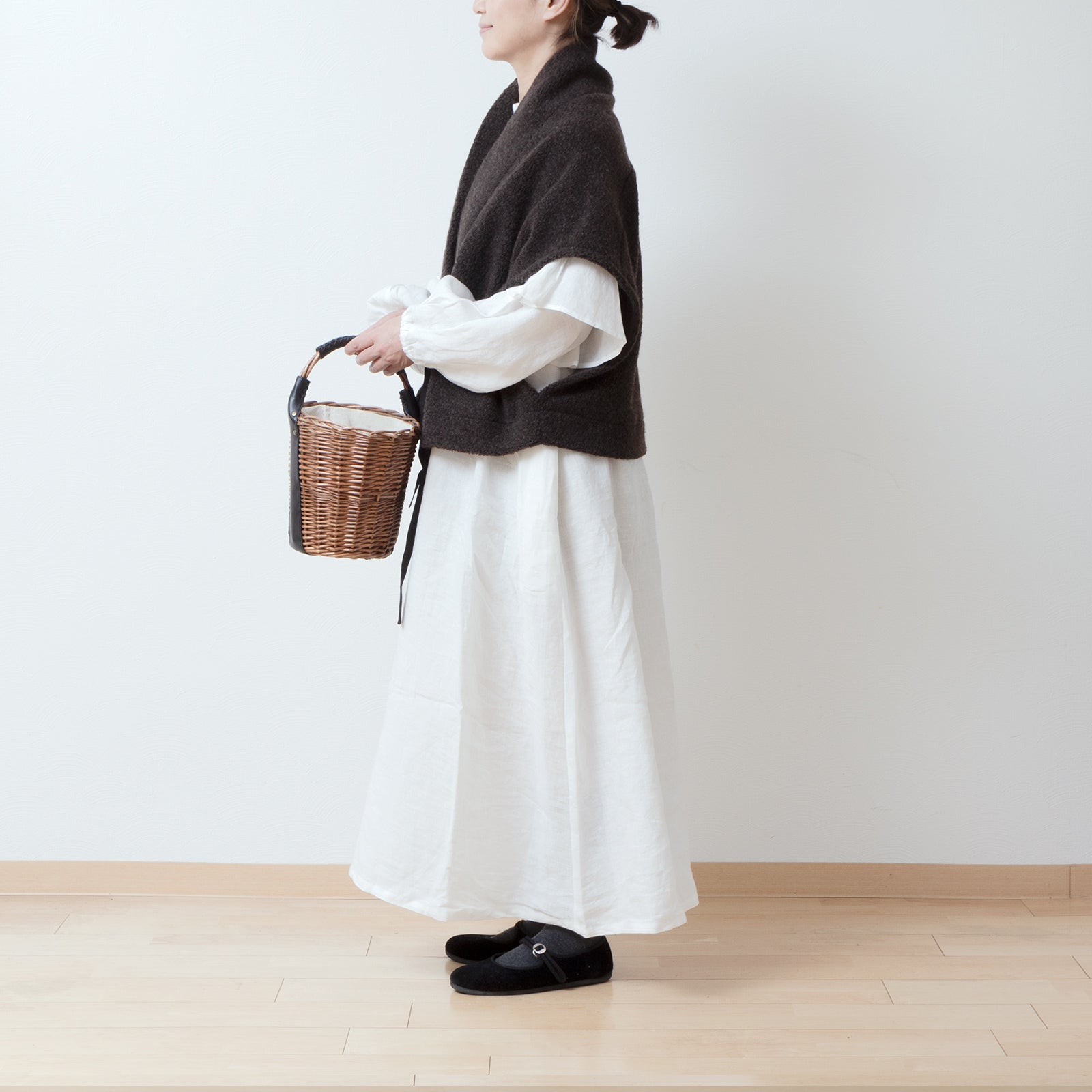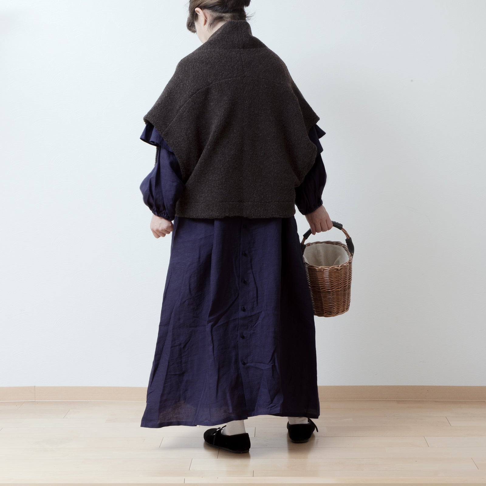 高品質羊毛圍巾披肩背心配緞帶/深棕色