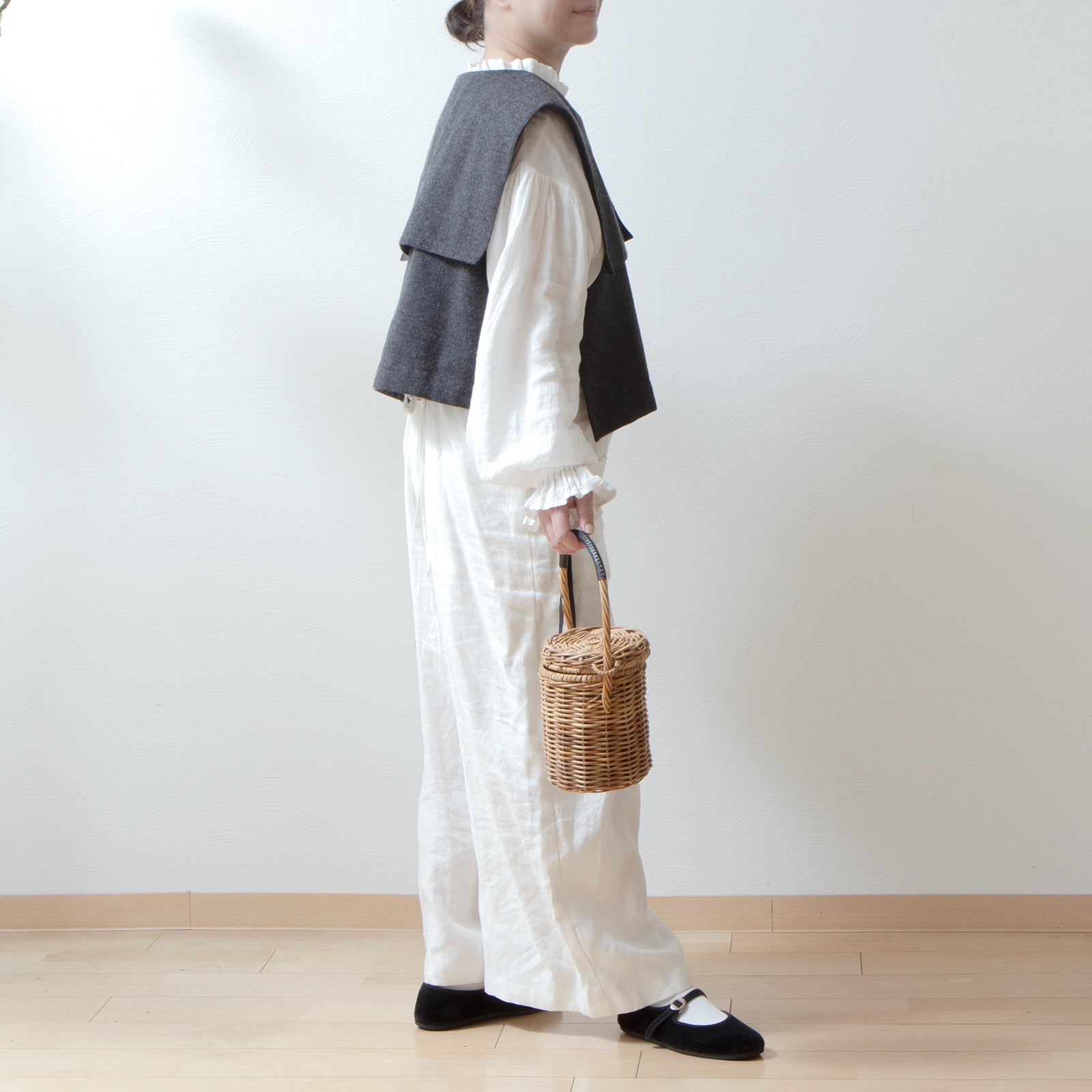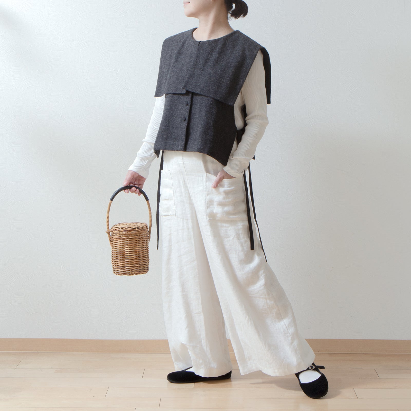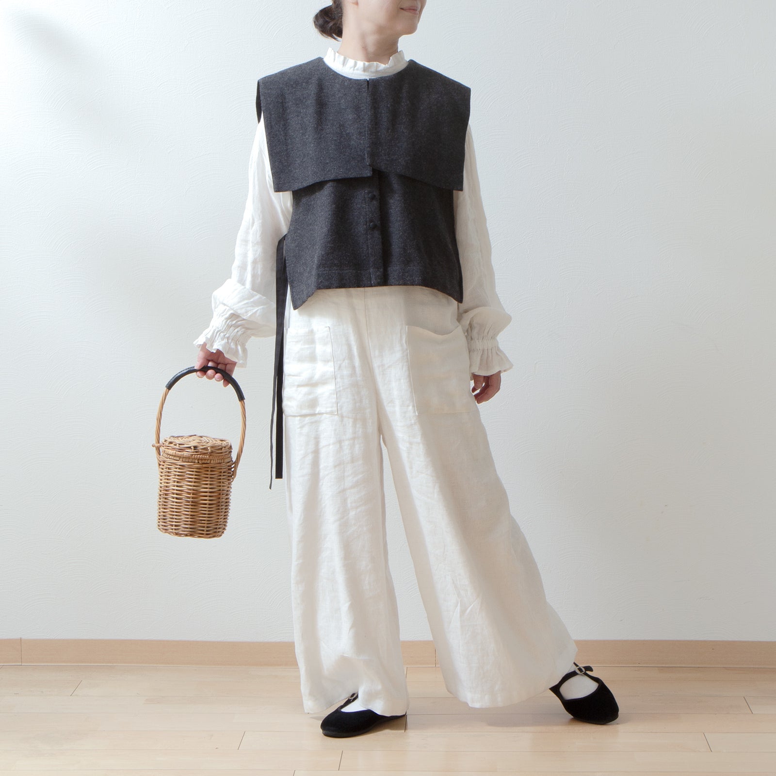 ・舒適可愛的闊腿褲 - 亞麻/米白色