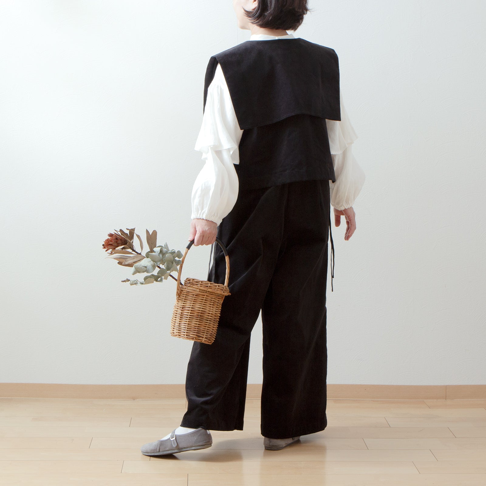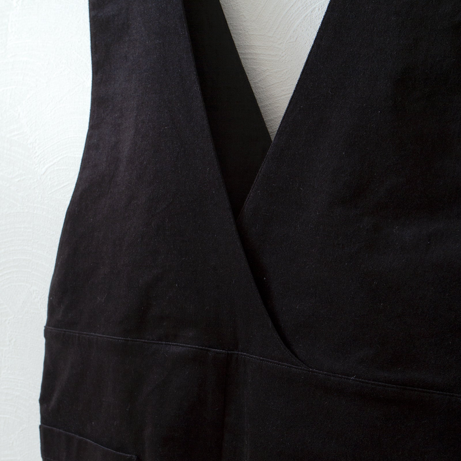 這款布料採用人字形編織,由來自備州(愛知縣西部)的再生羊毛“Kesichi”製成。它沒有羊毛的刺癢感,經過起毛和水洗處理,擁有蓬鬆的質感。