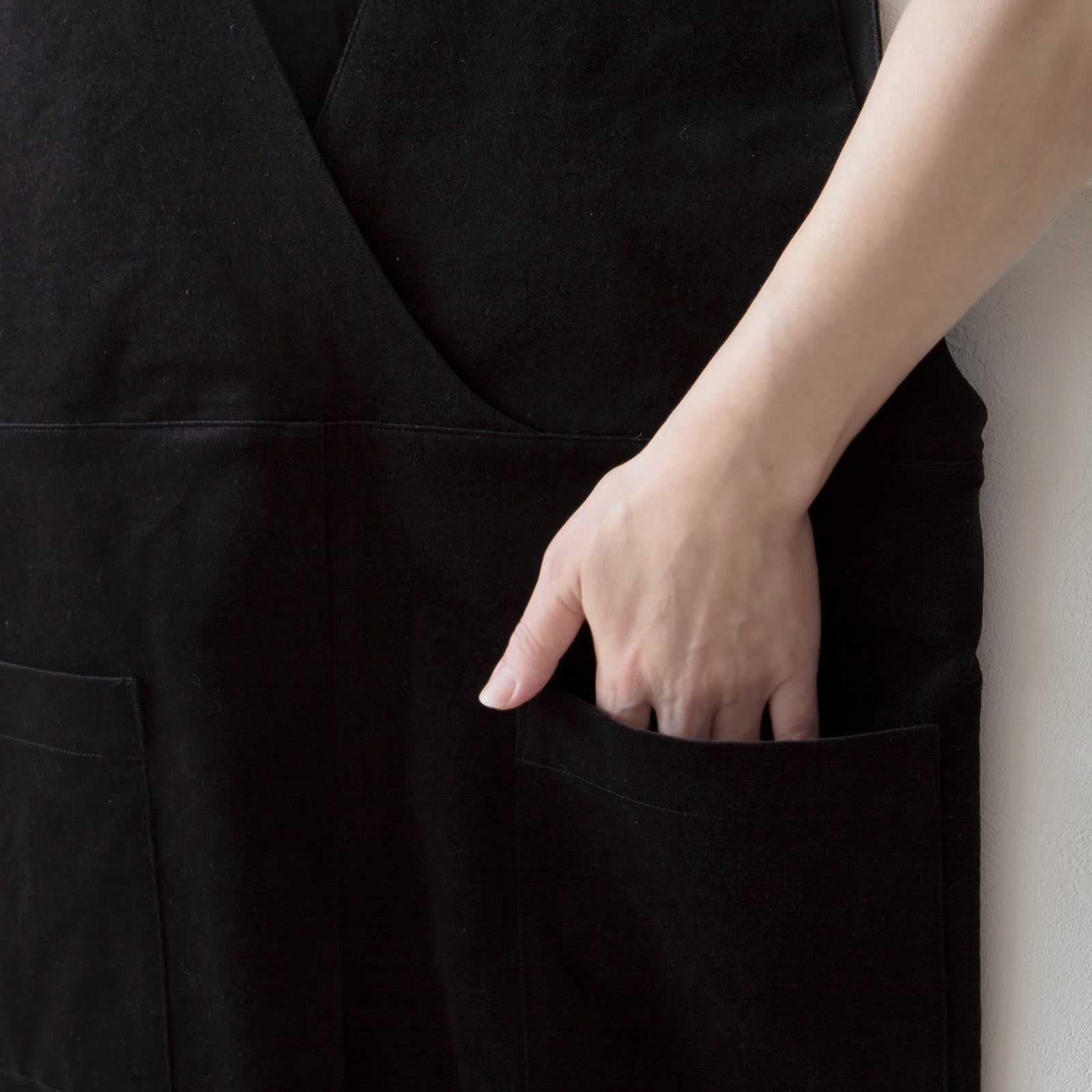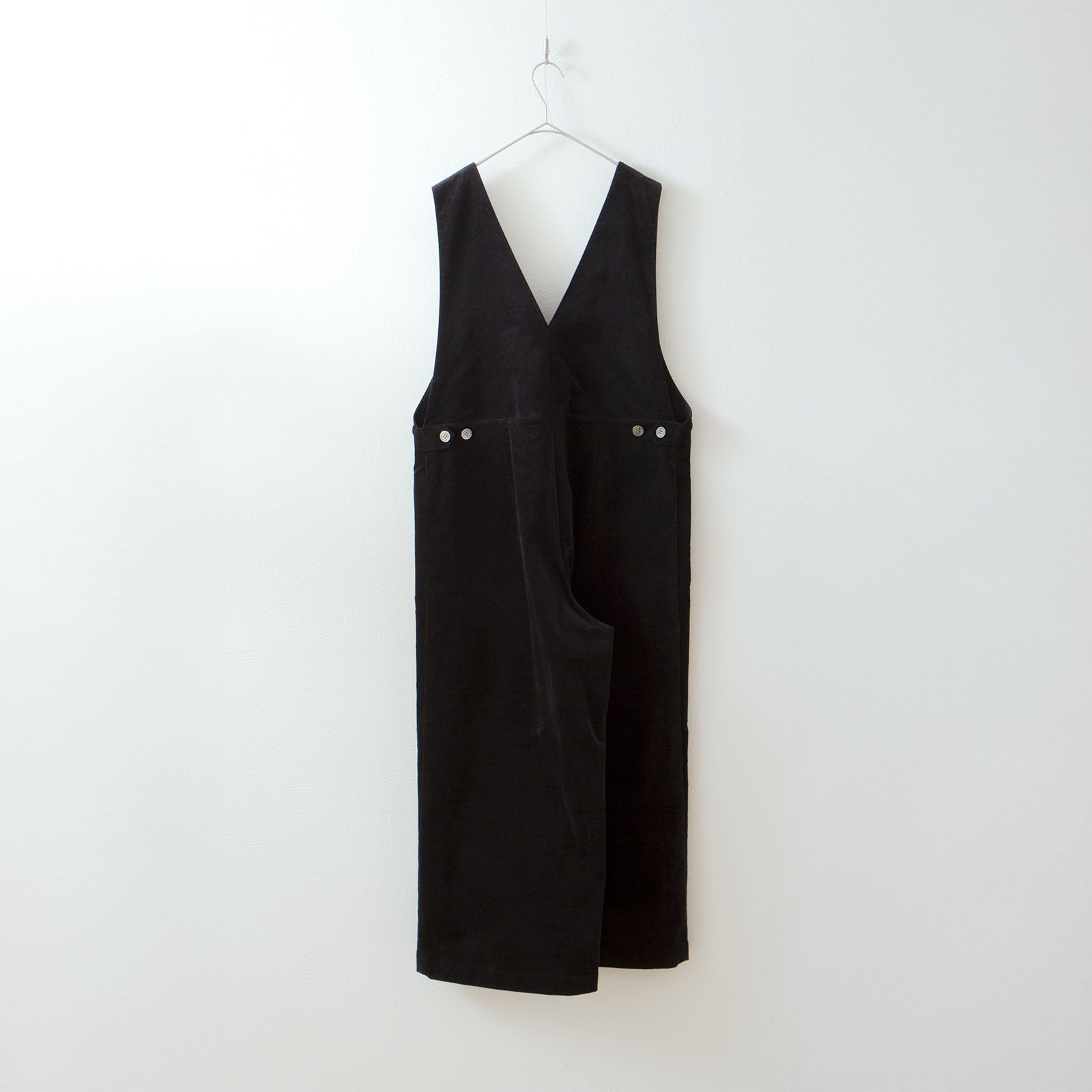 前身採用環繞式設計,後身採用深 V 領設計,使工裝褲看起來精緻而又不會過於休閒。