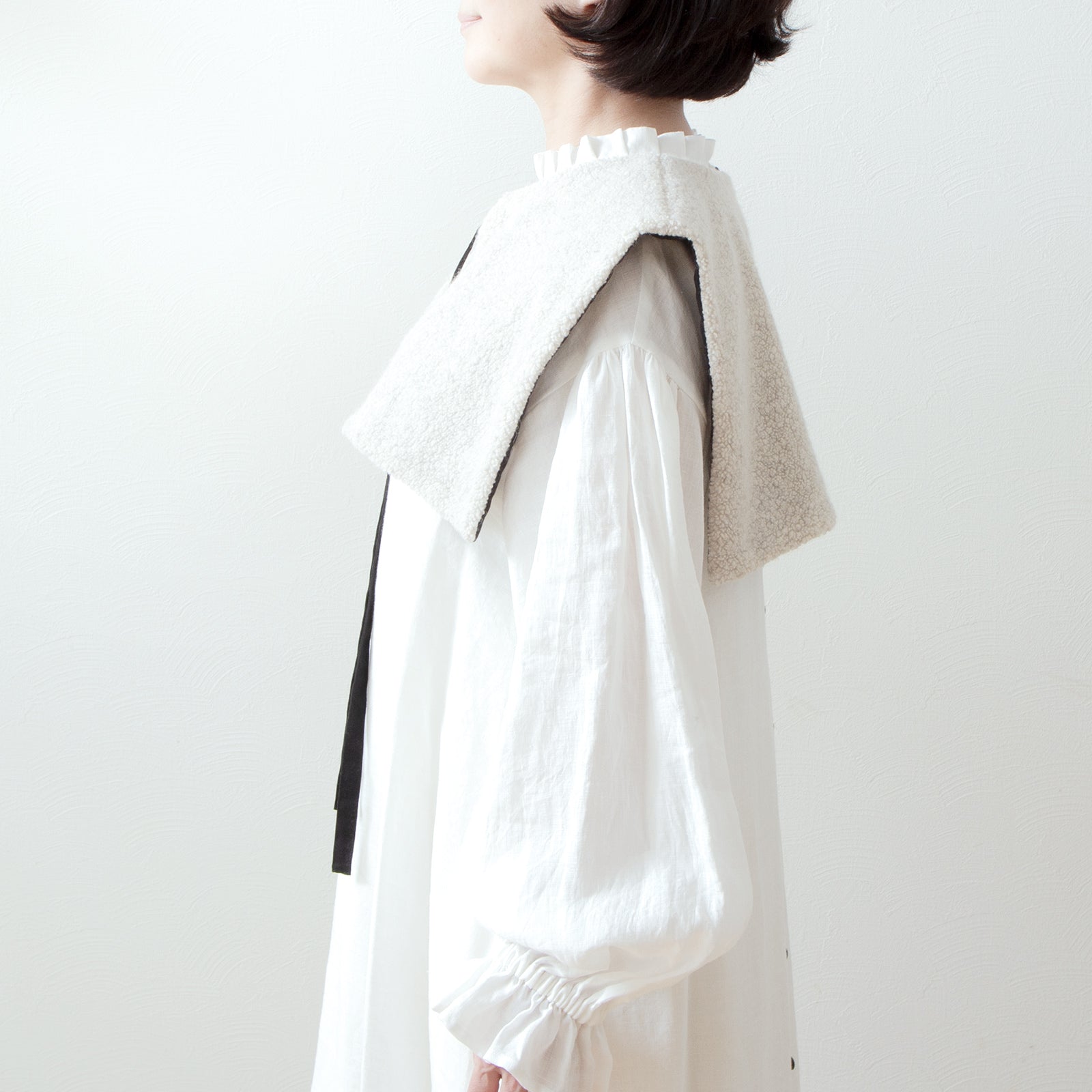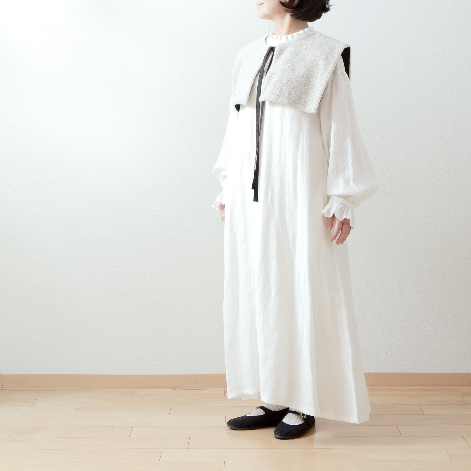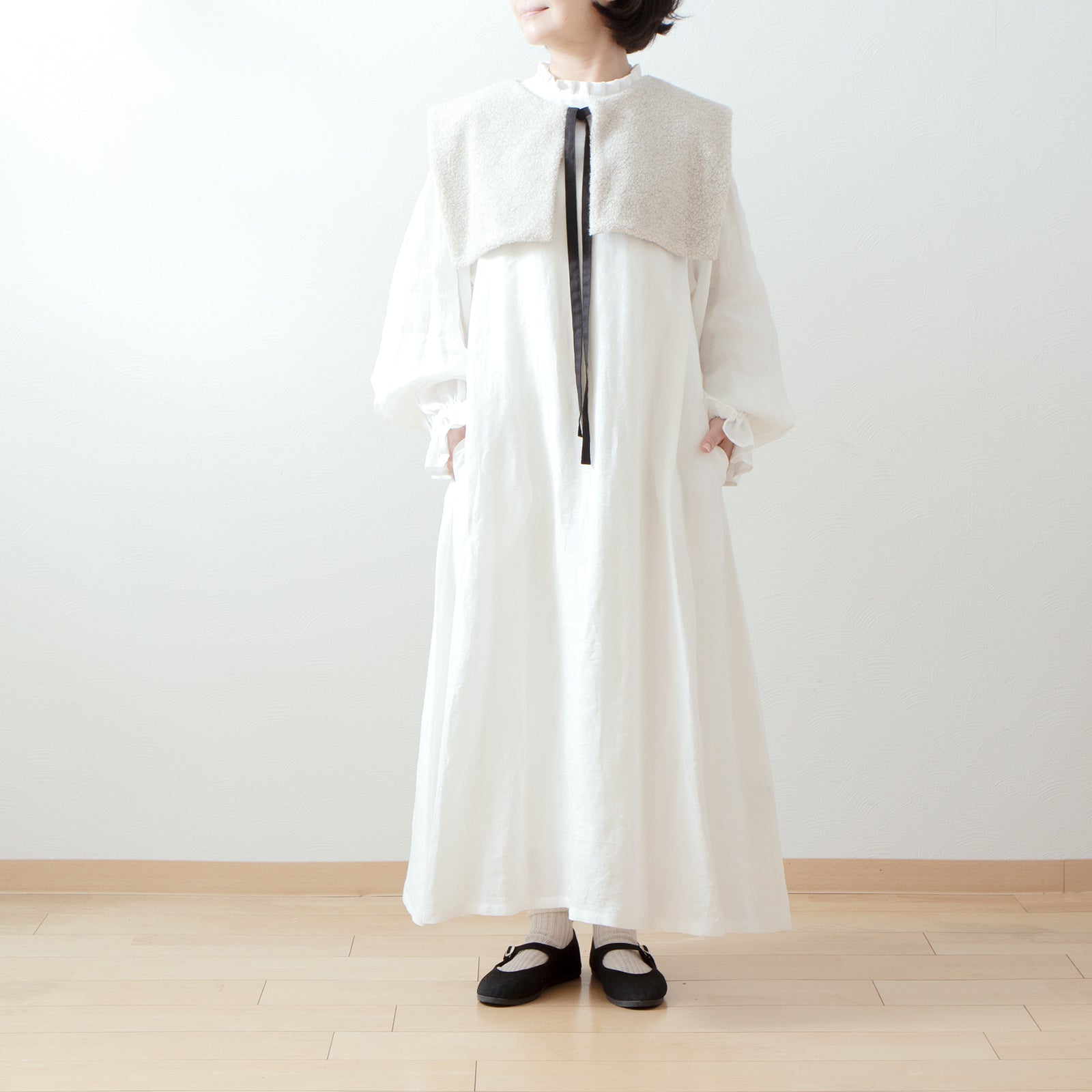 側面的絲帶採用相同的亞麻棉材料製成,增添了少女氣息,突出了服裝的特色。