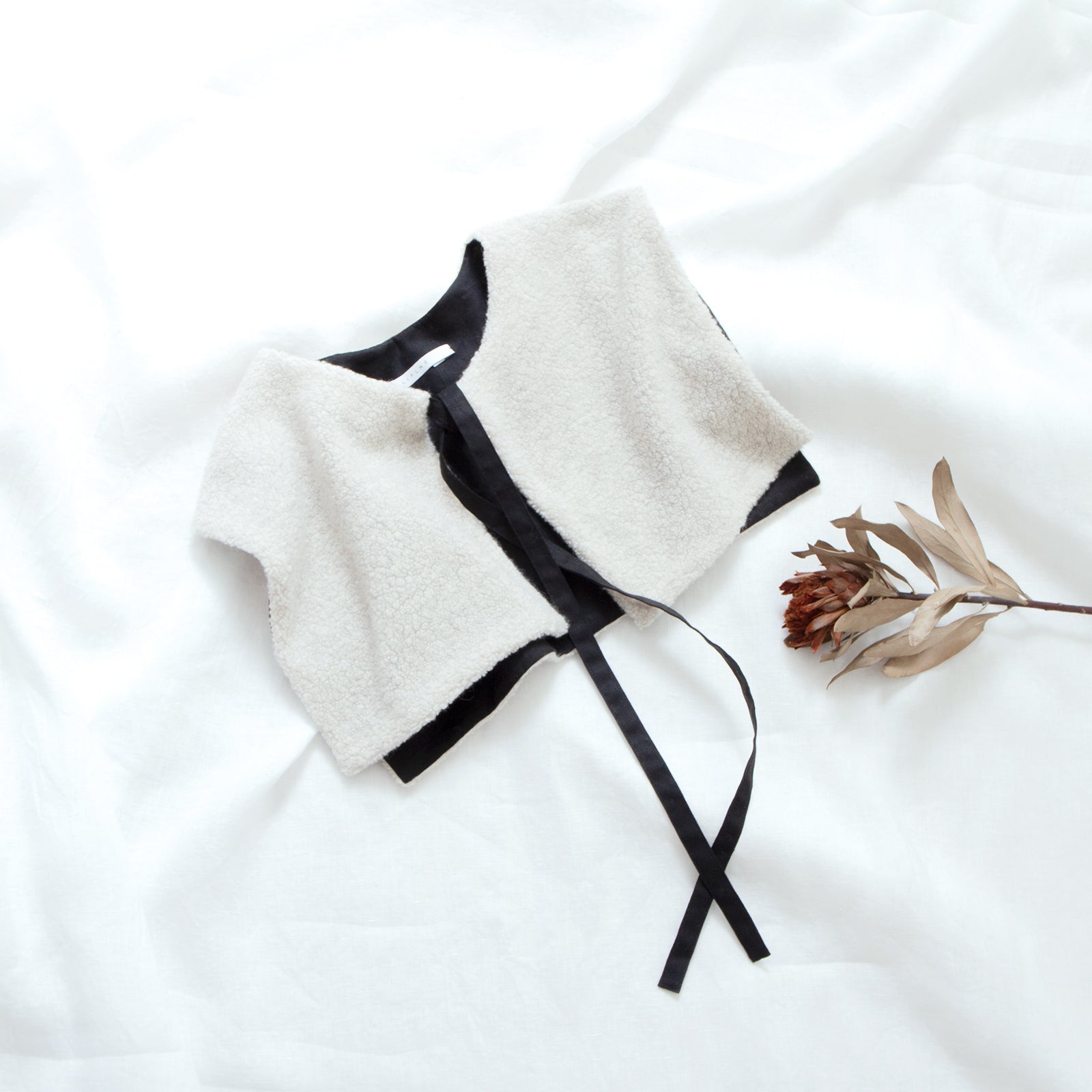 當您將褶皺荷葉邊領連身裙穿在內層時,領子和袖口就會成為華麗的點綴。