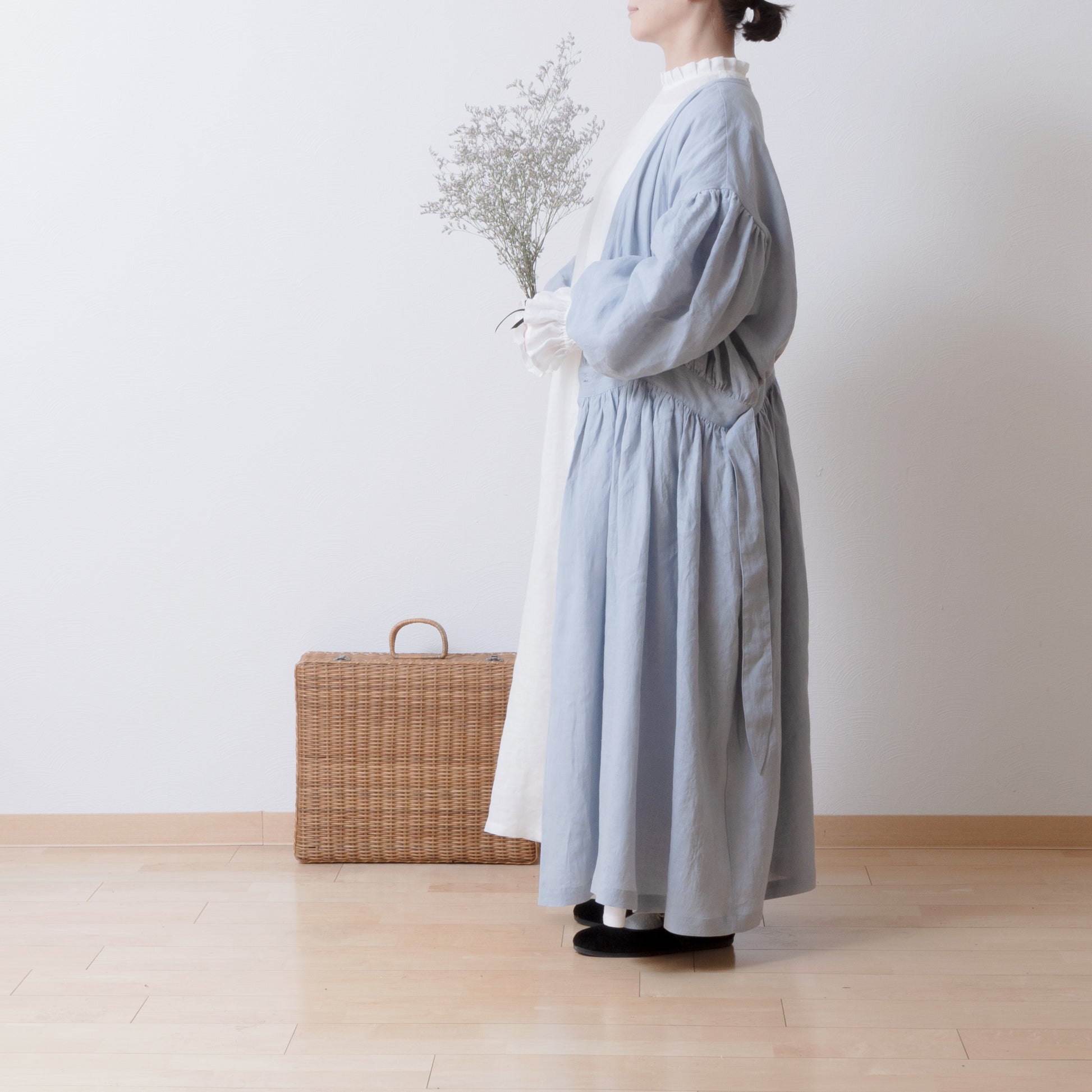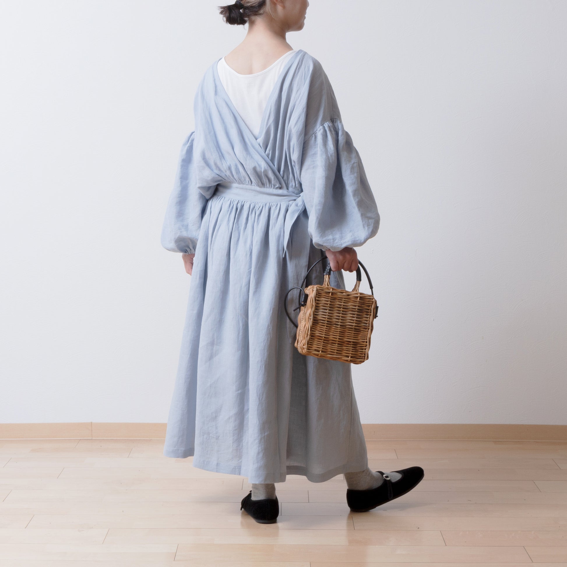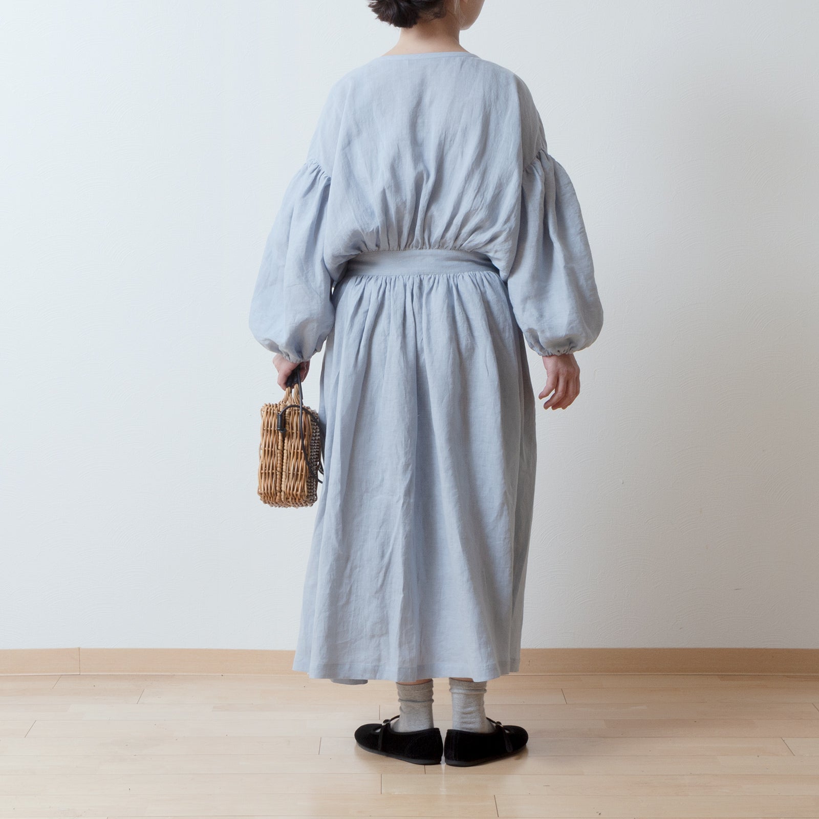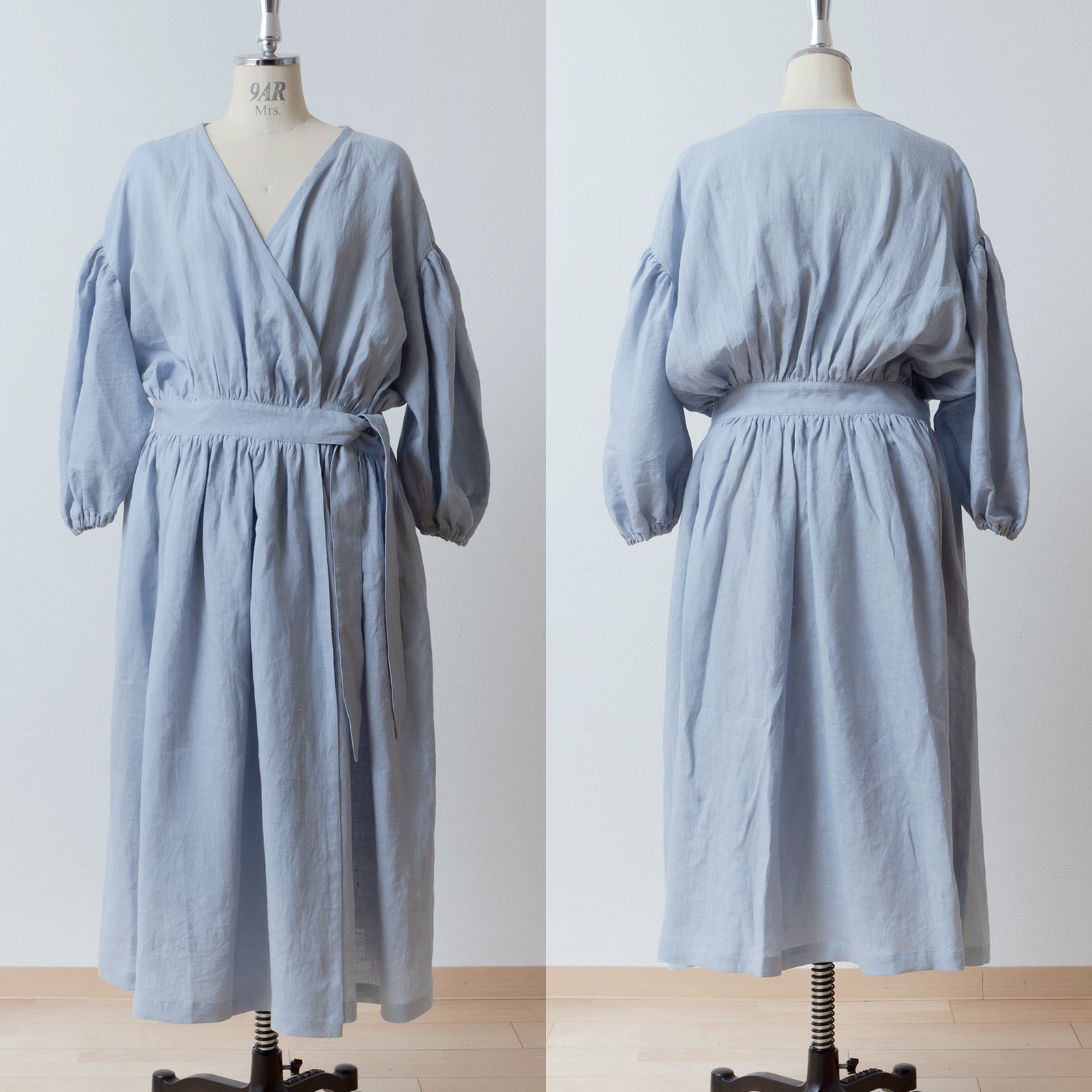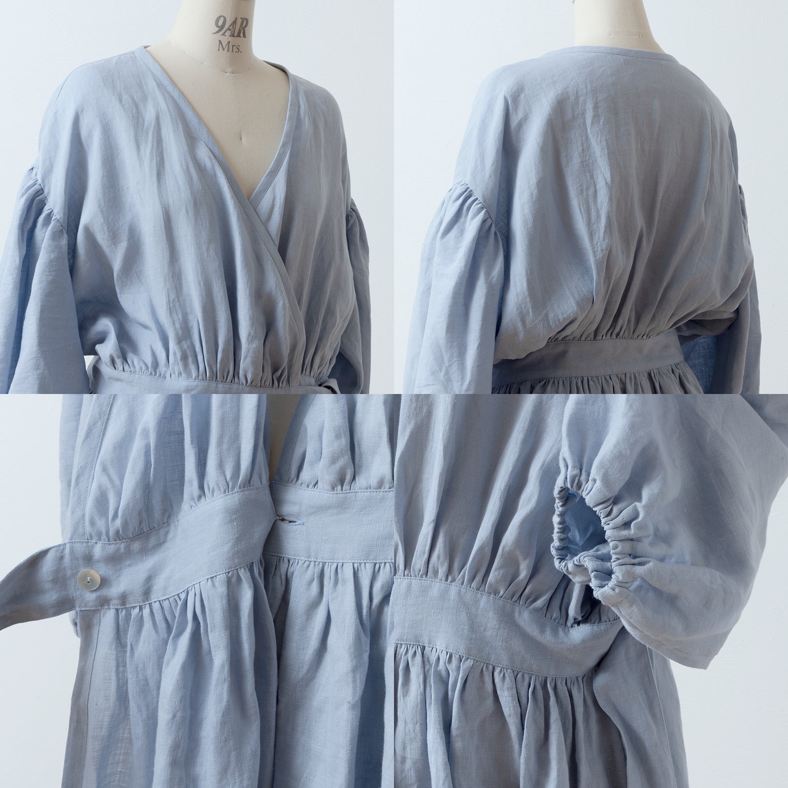 Cache-Coeur 褶皺兩用洋裝 - 法國亞麻/淡藍色