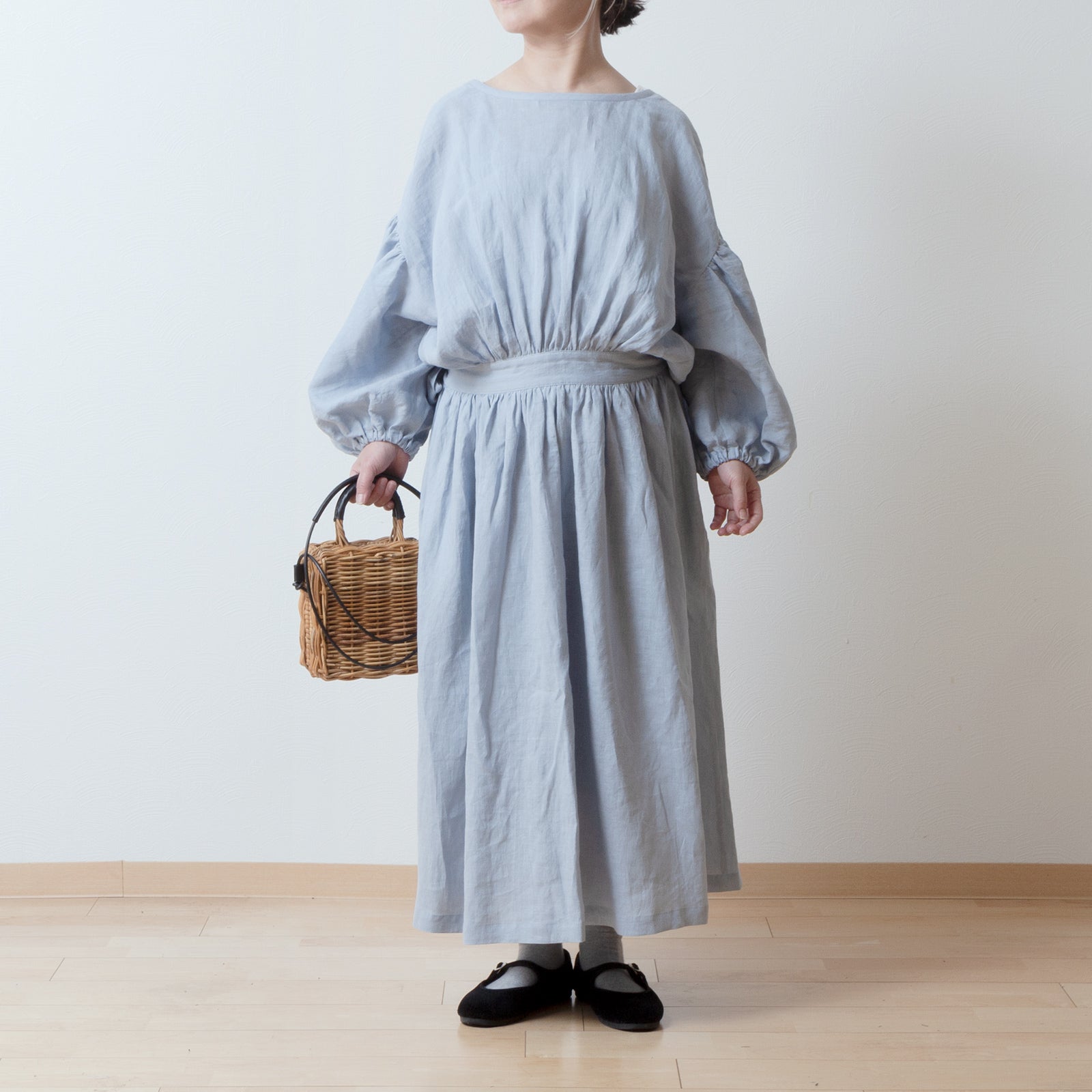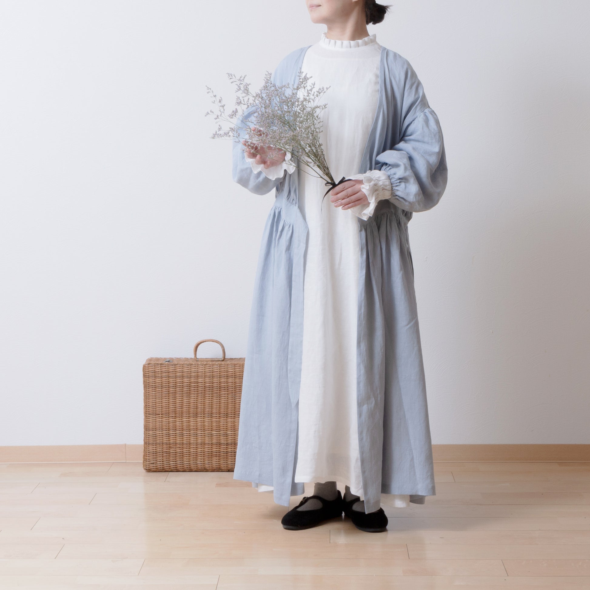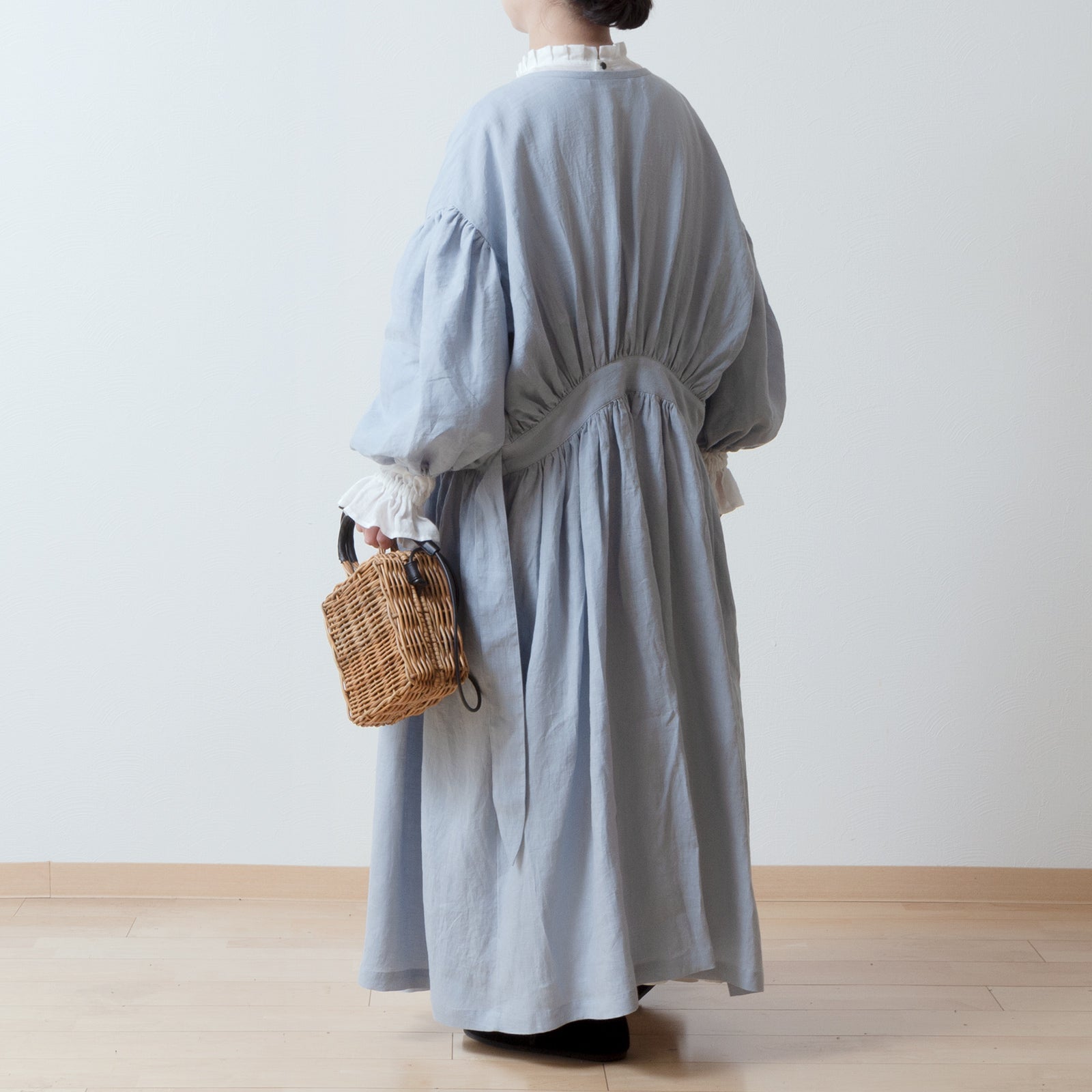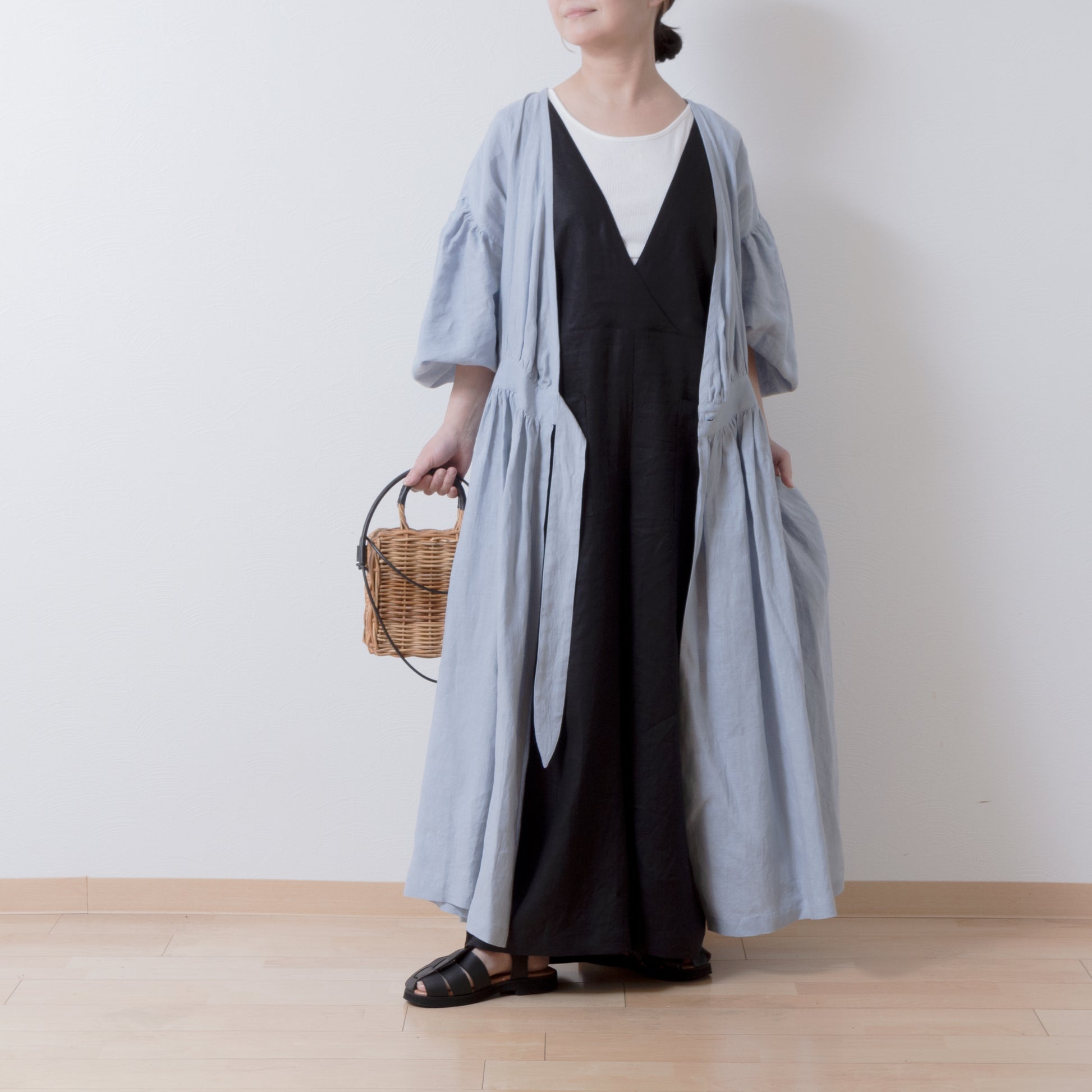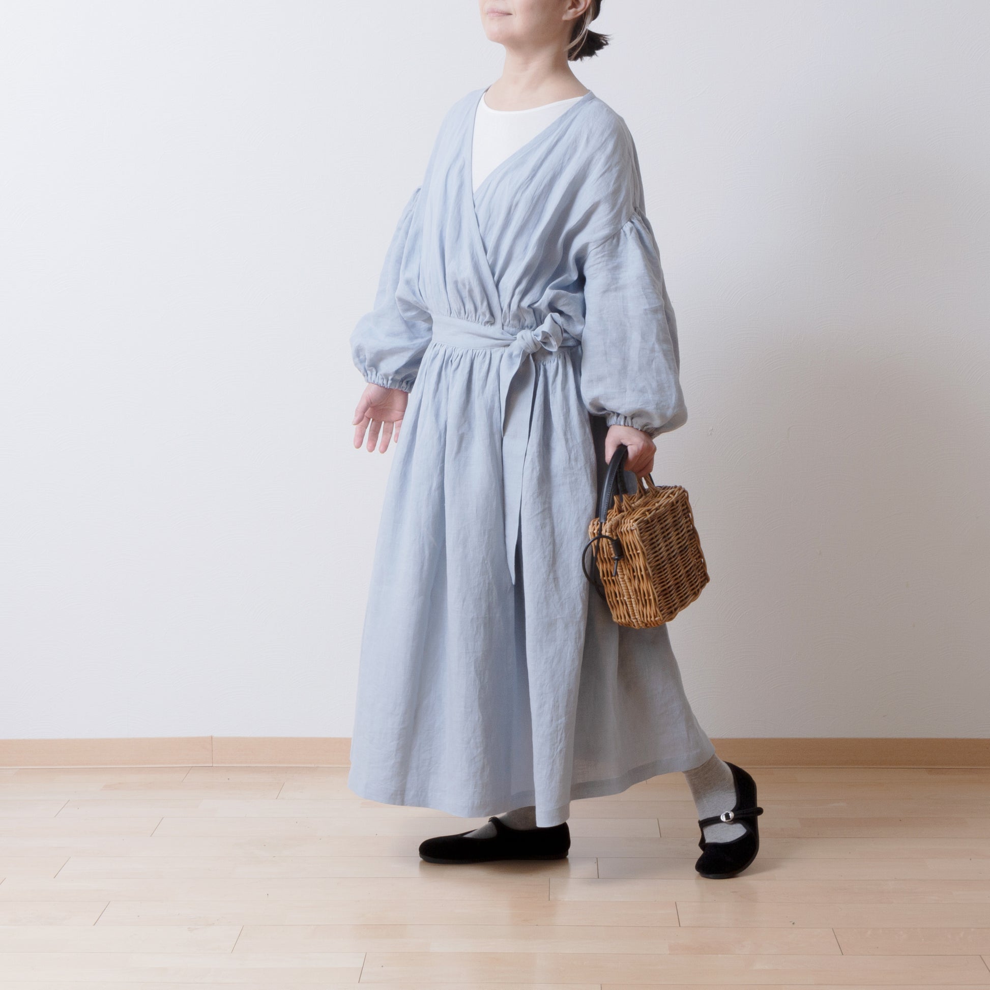 Cache-Coeur 褶皺兩用洋裝 - 法國亞麻/淡藍色