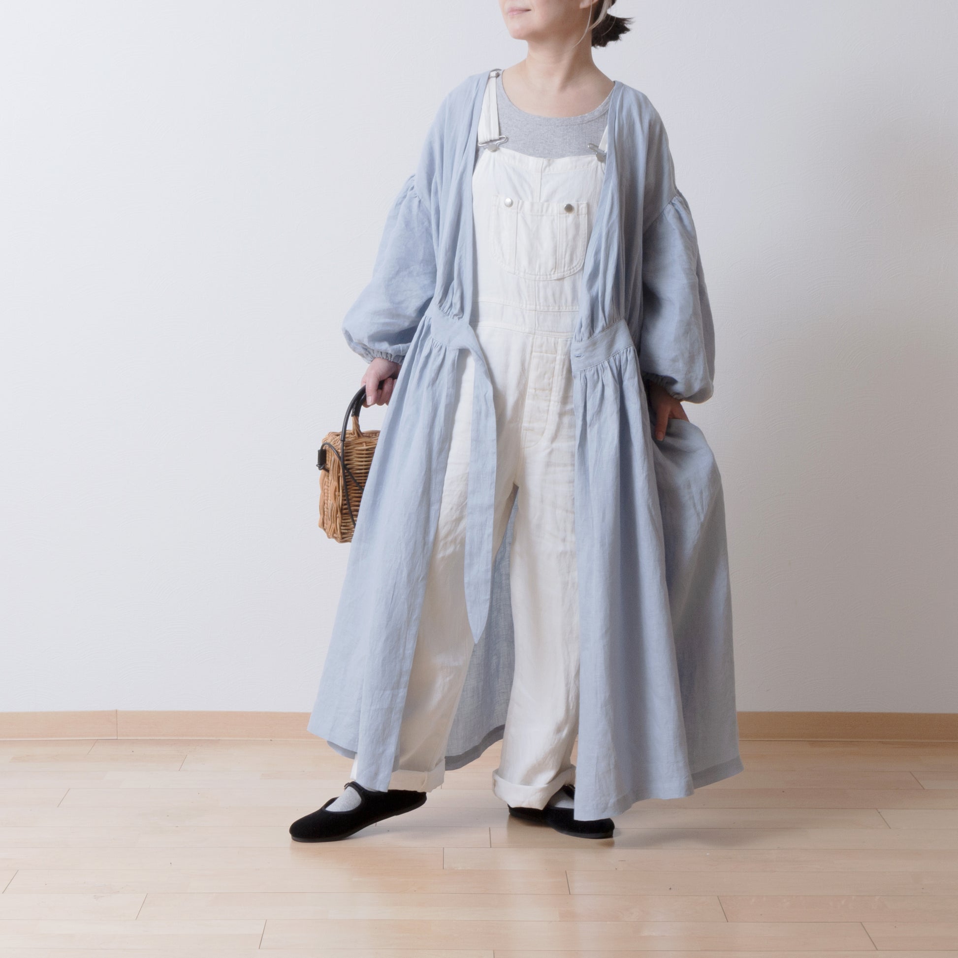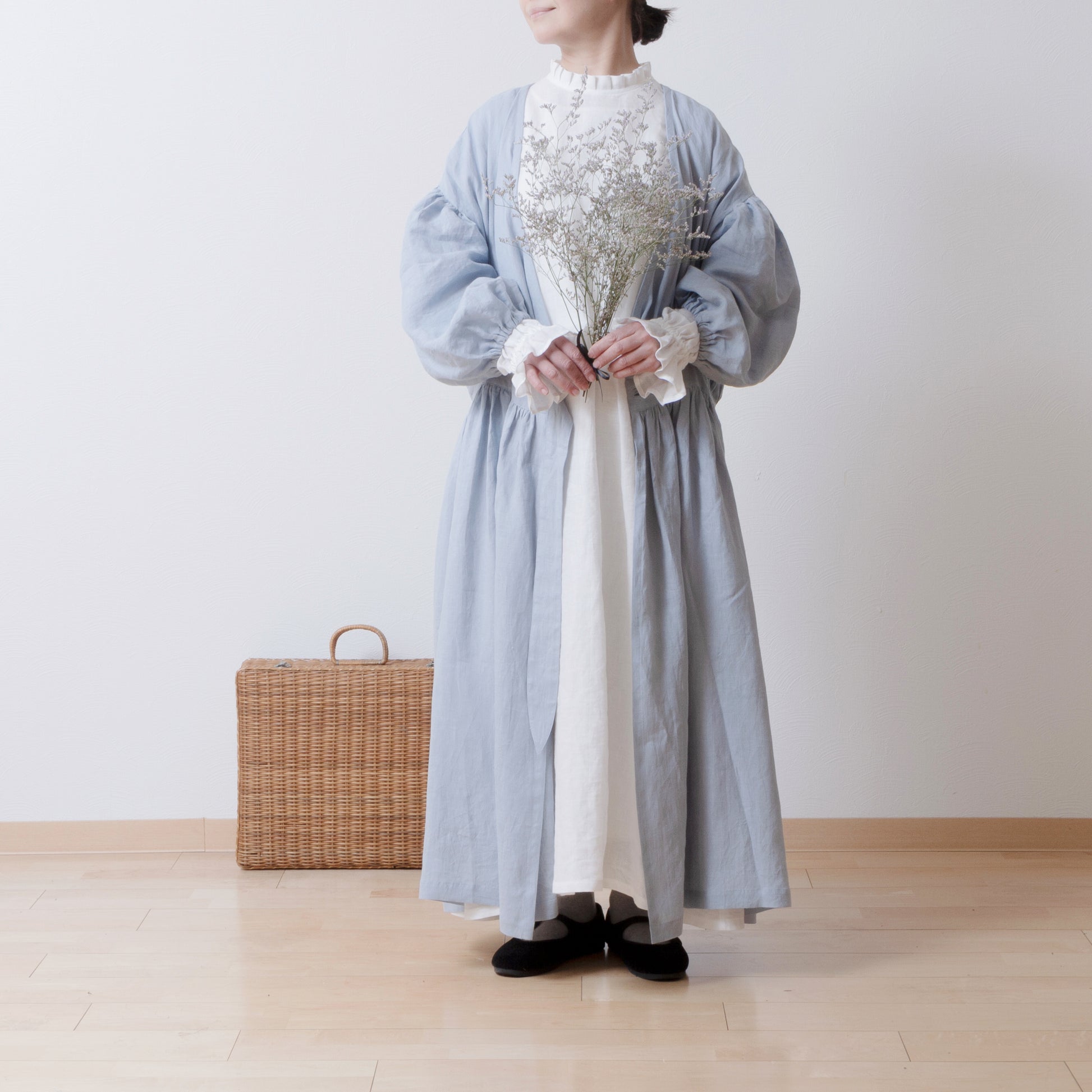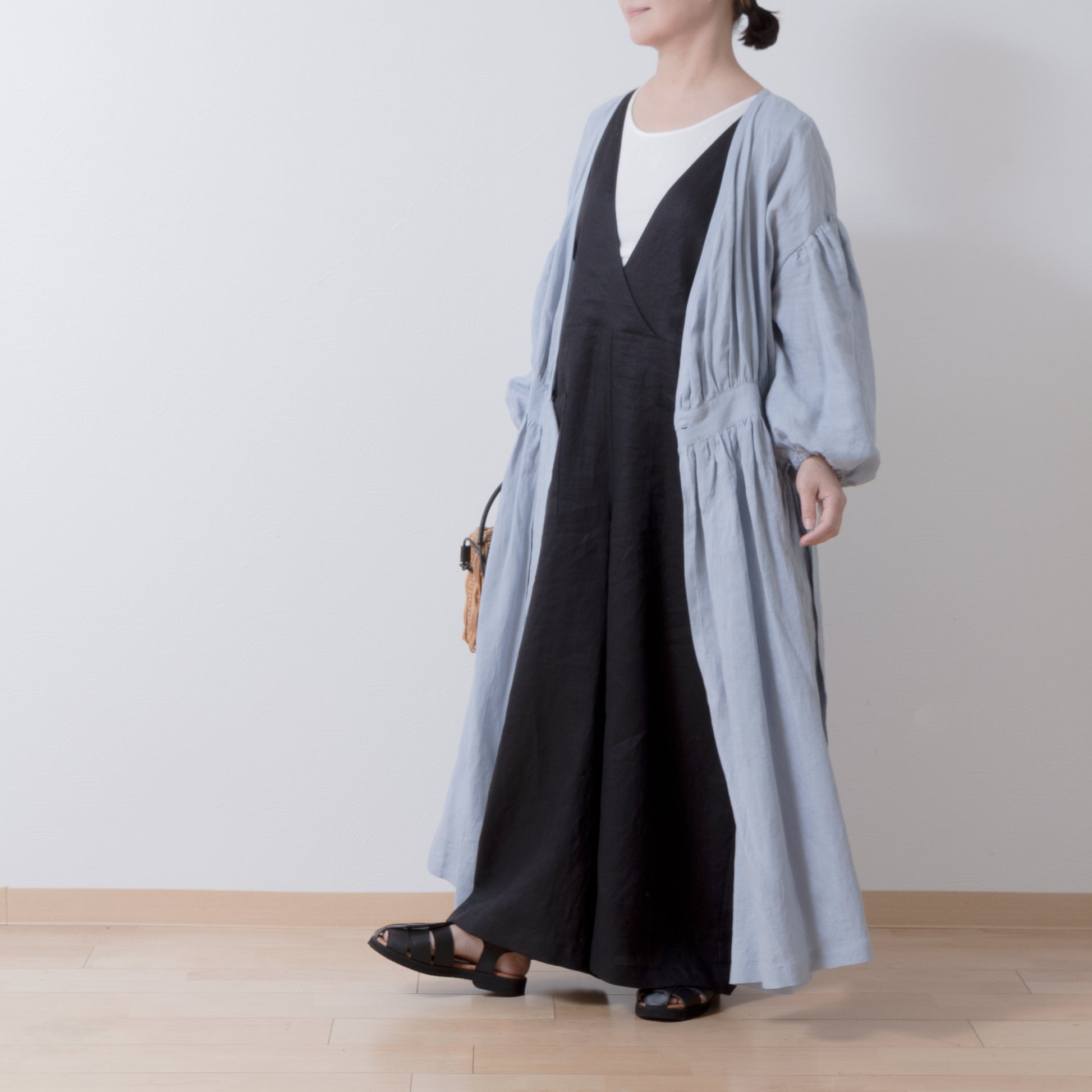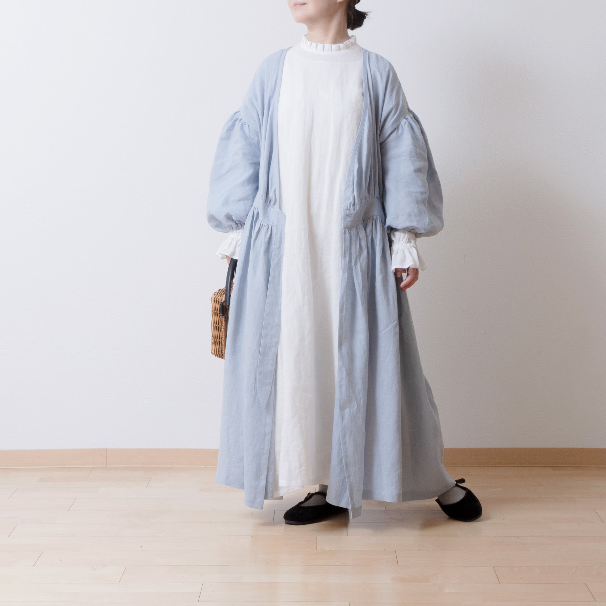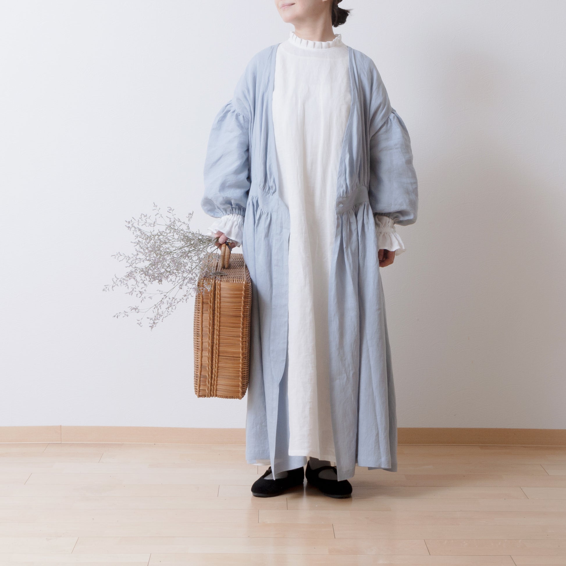 Cache-Coeur 褶皺兩用洋裝 - 法國亞麻/淡藍色