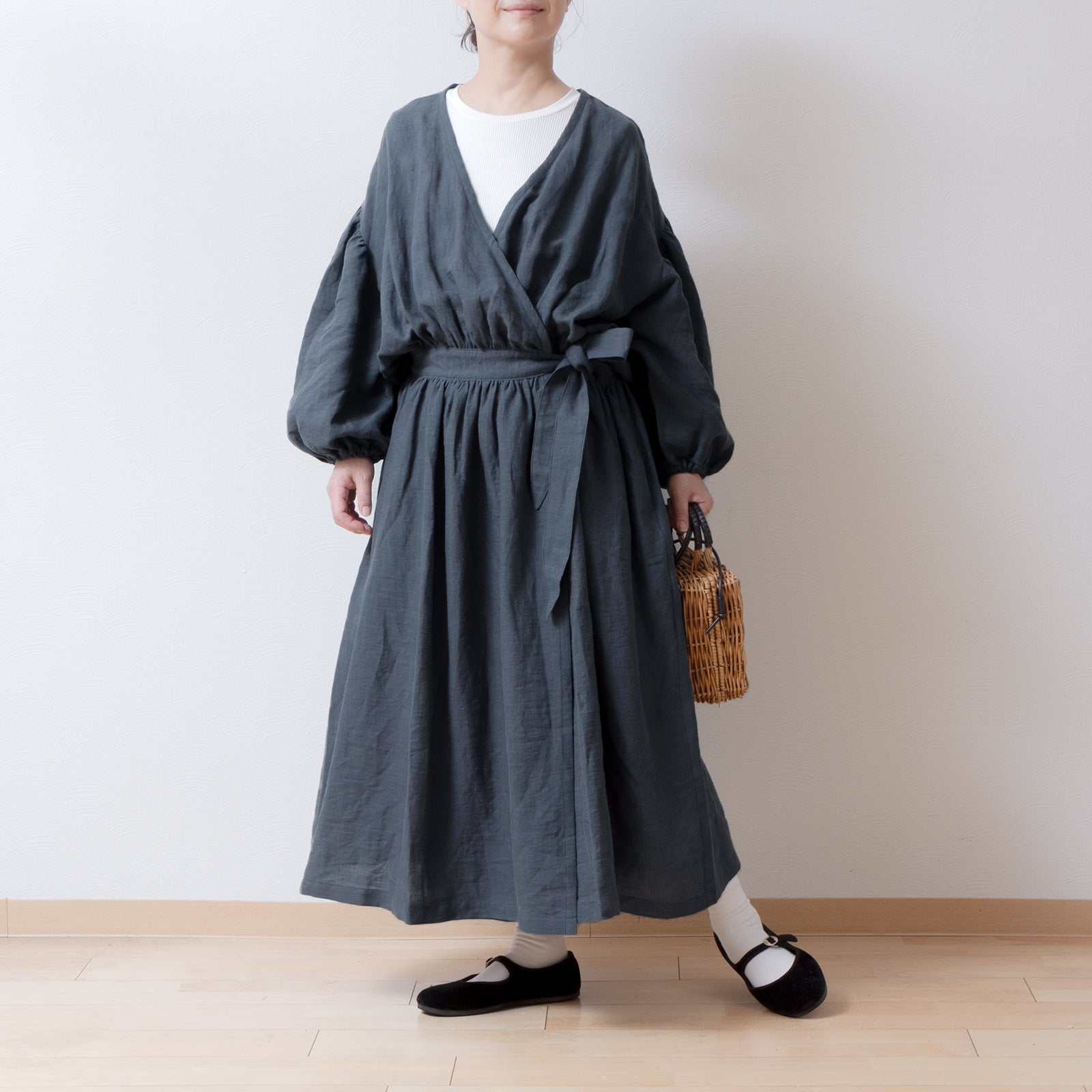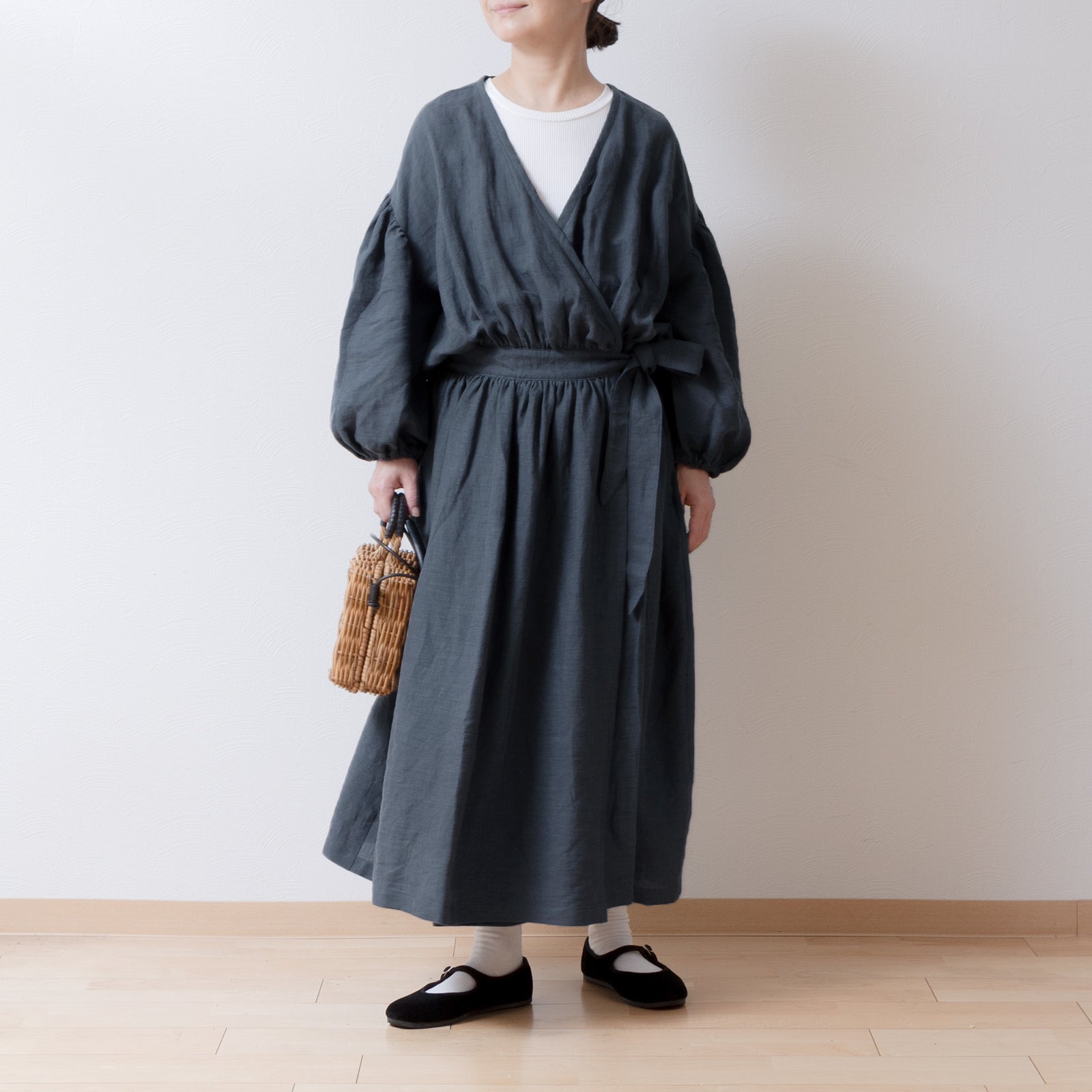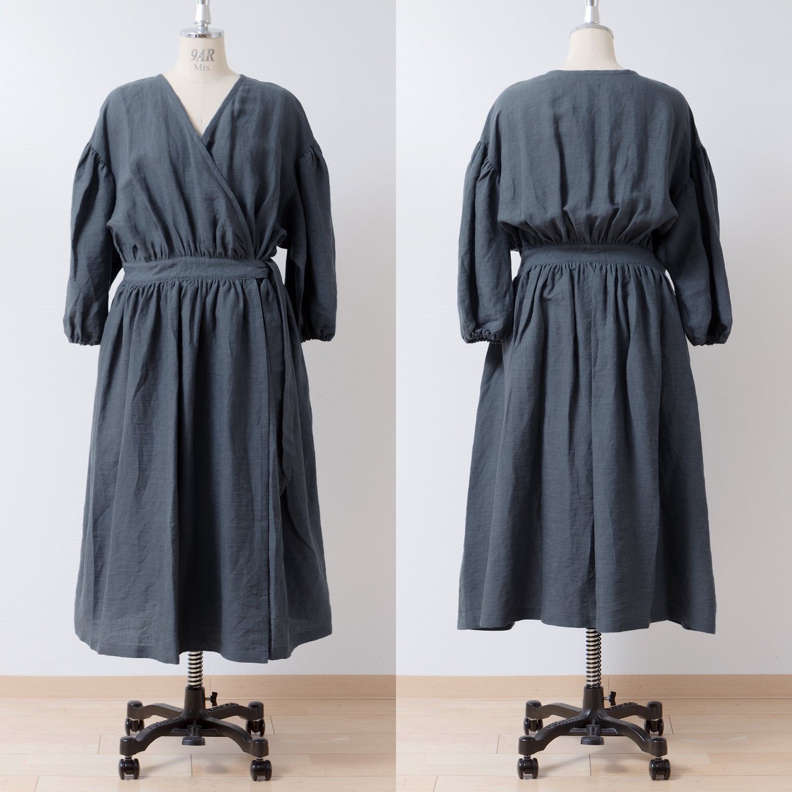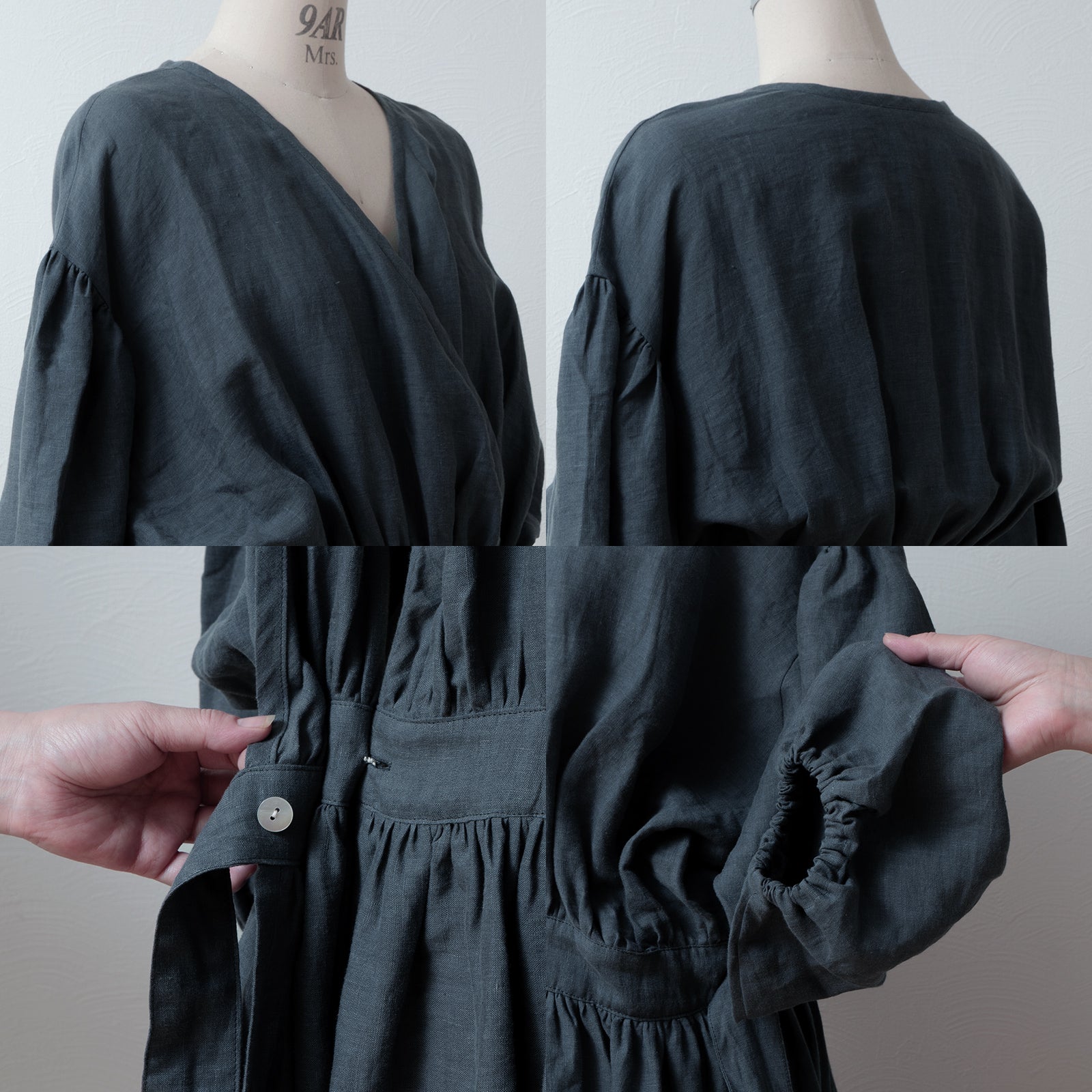 Cache-Coeur 褶皺兩用洋裝 - 法國亞麻/灰色