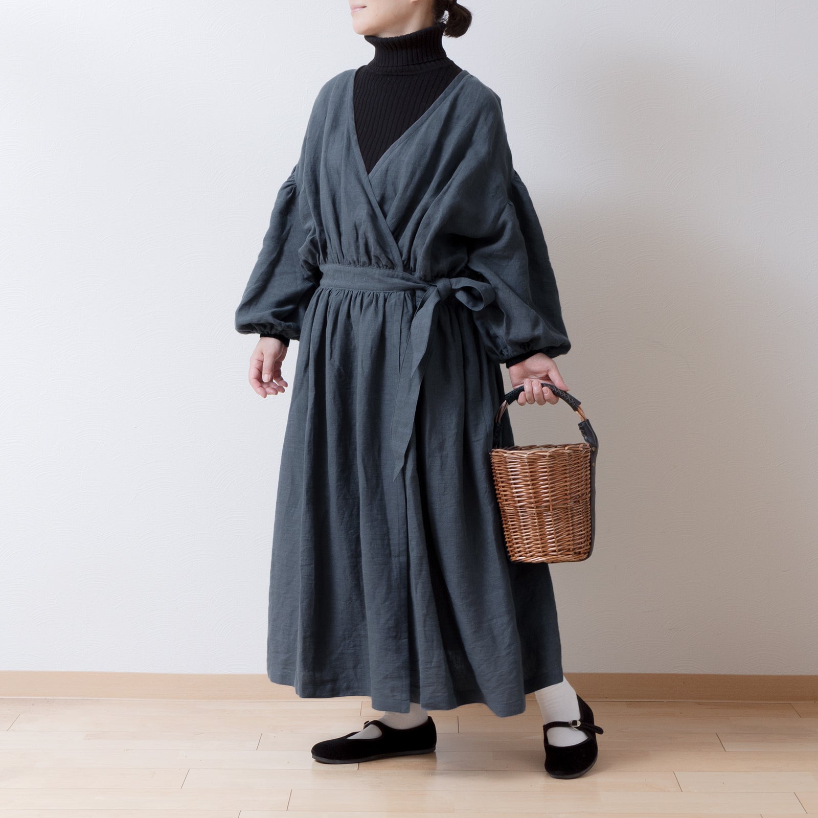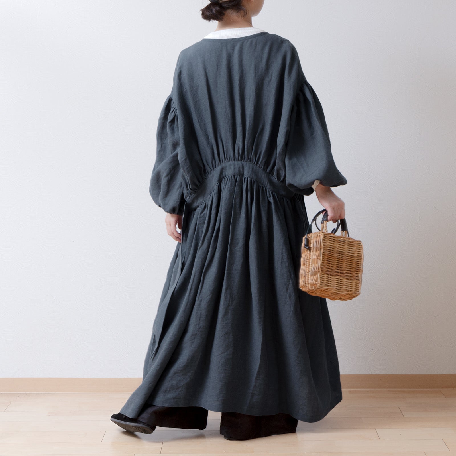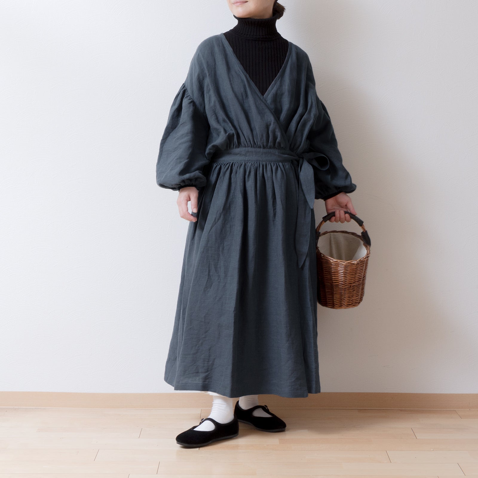 Cache-Coeur 褶皺兩用洋裝 - 法國亞麻/灰色