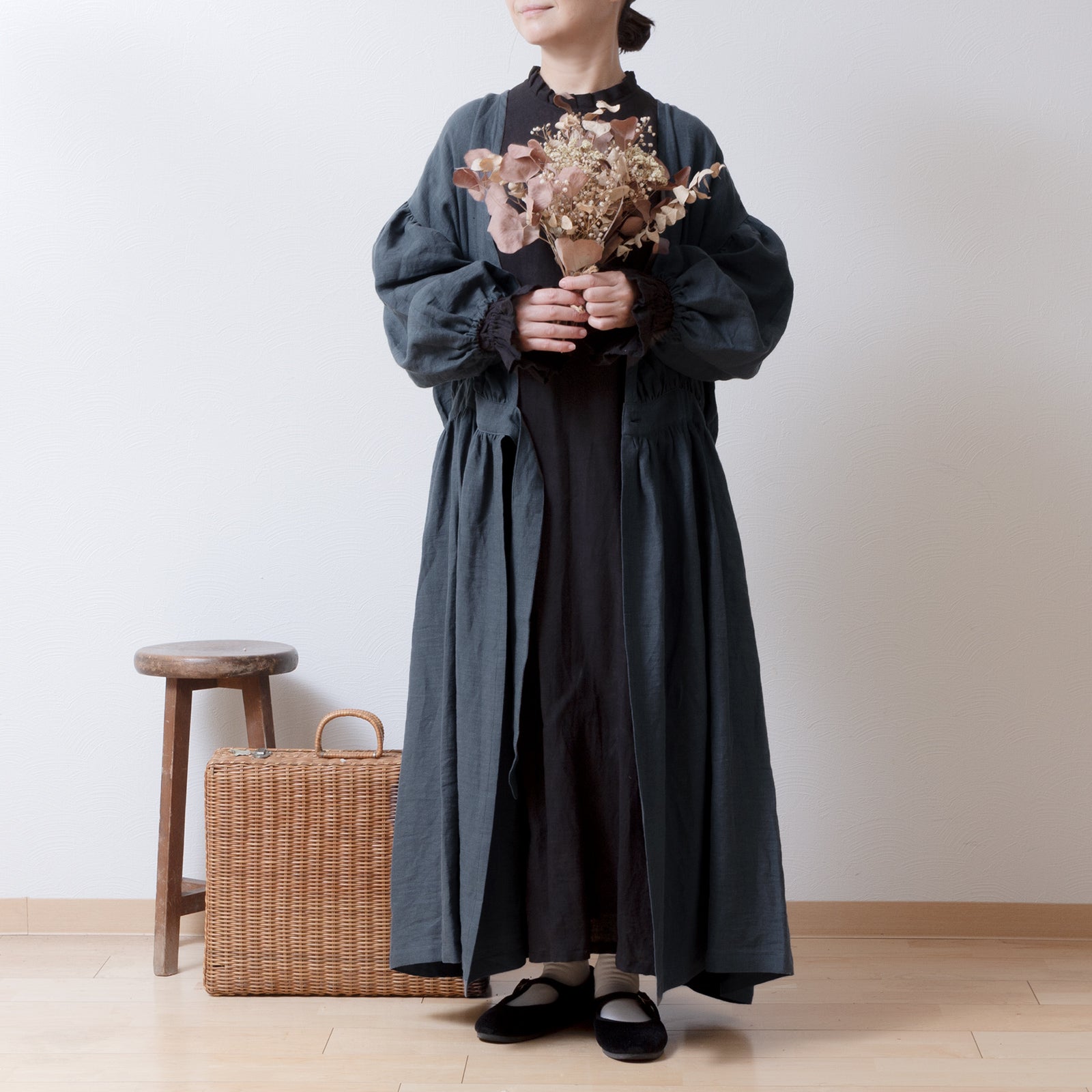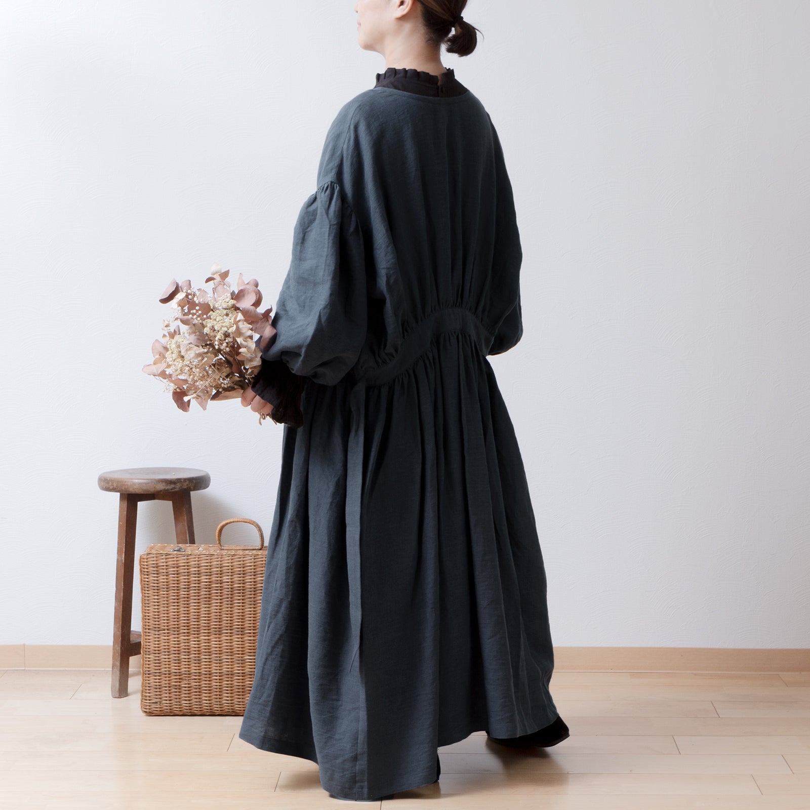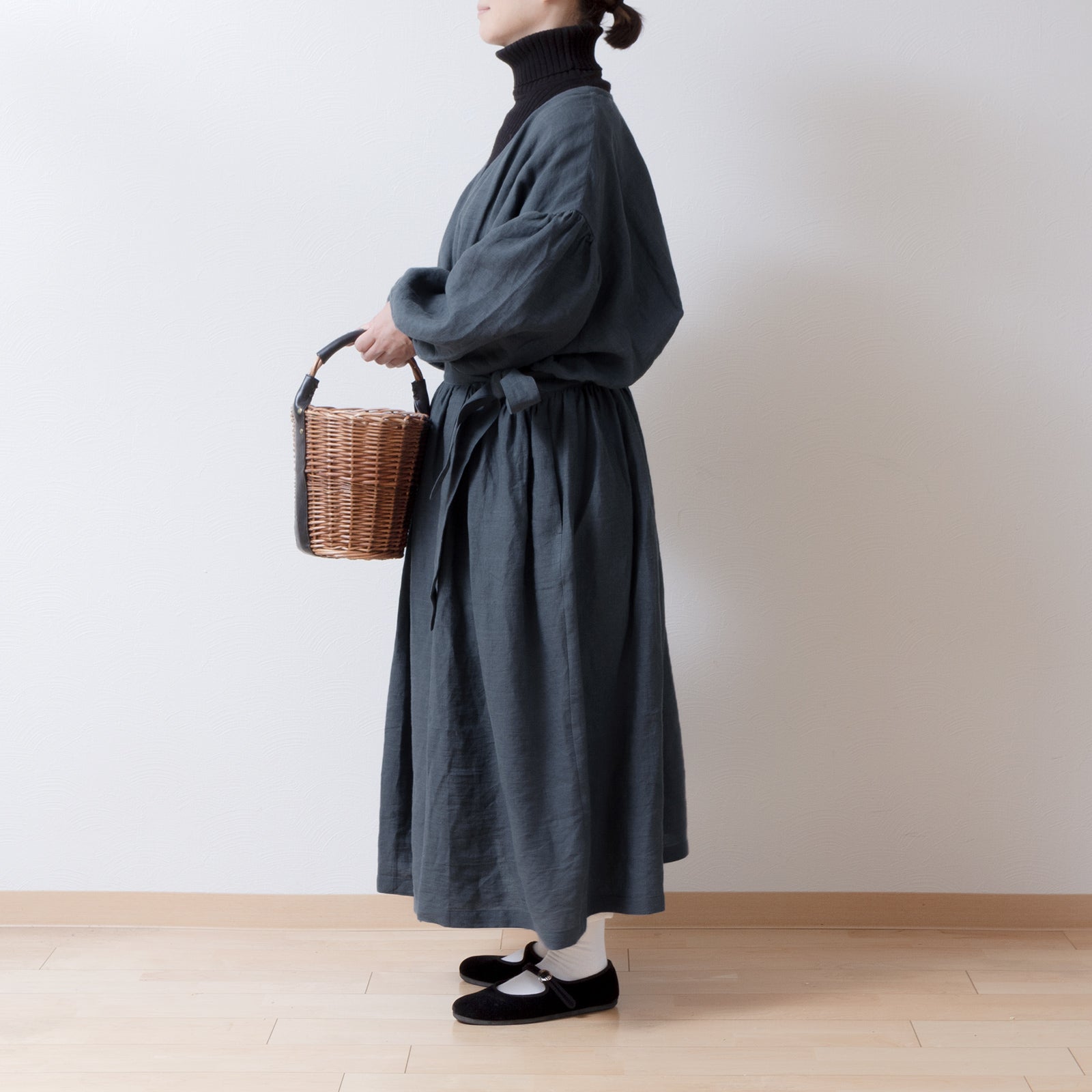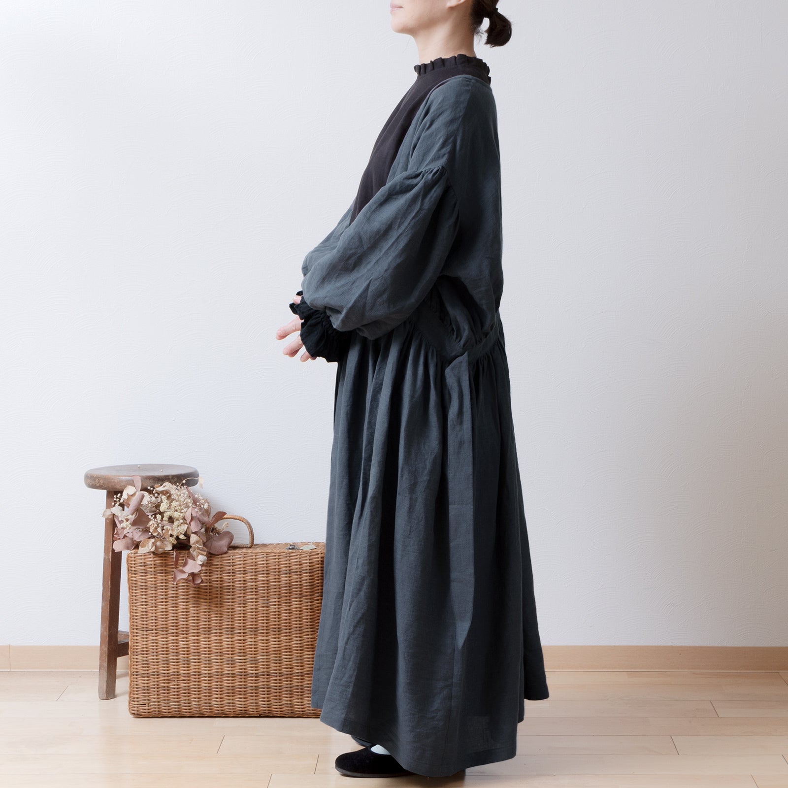 Cache-Coeur 褶皺兩用洋裝 - 法國亞麻/灰色