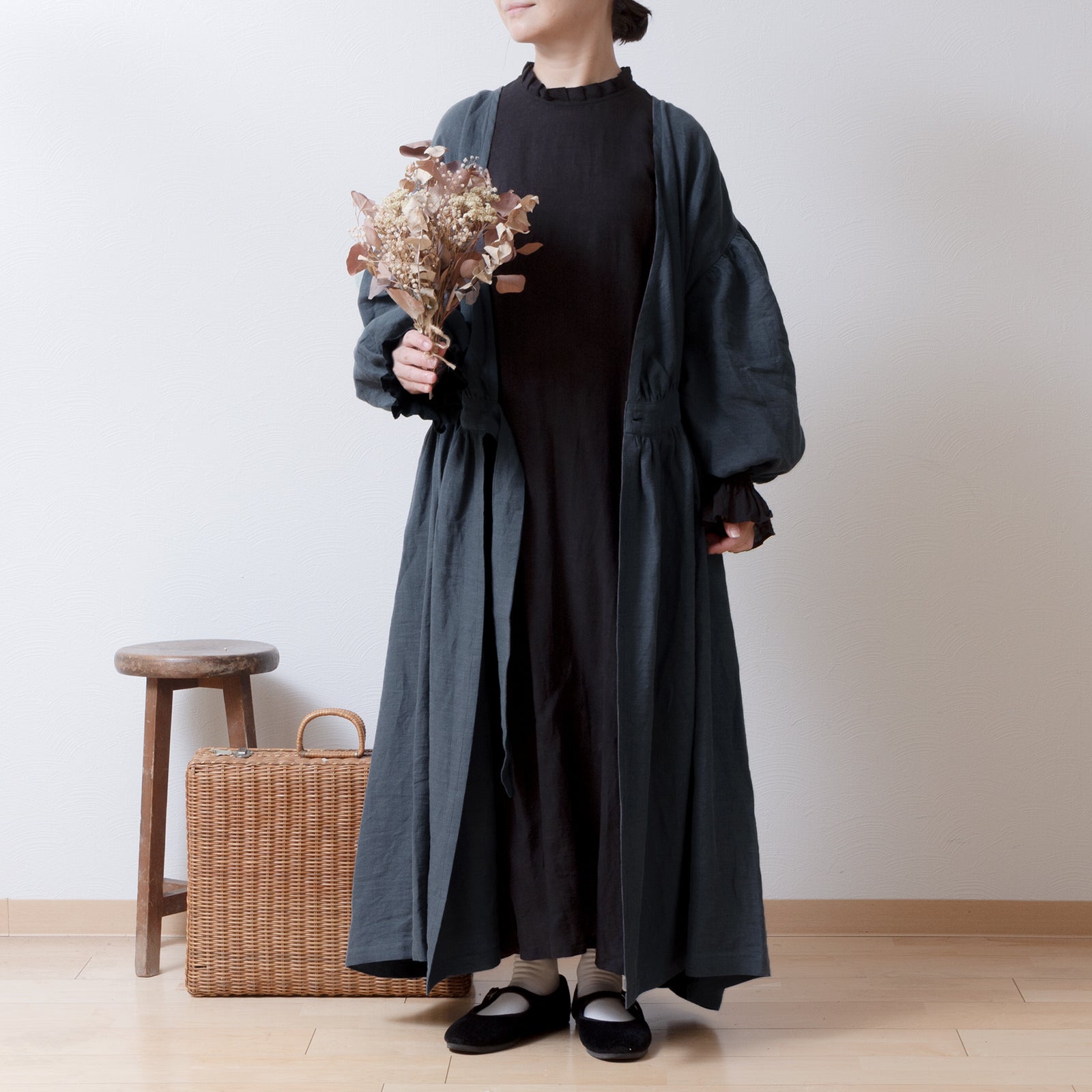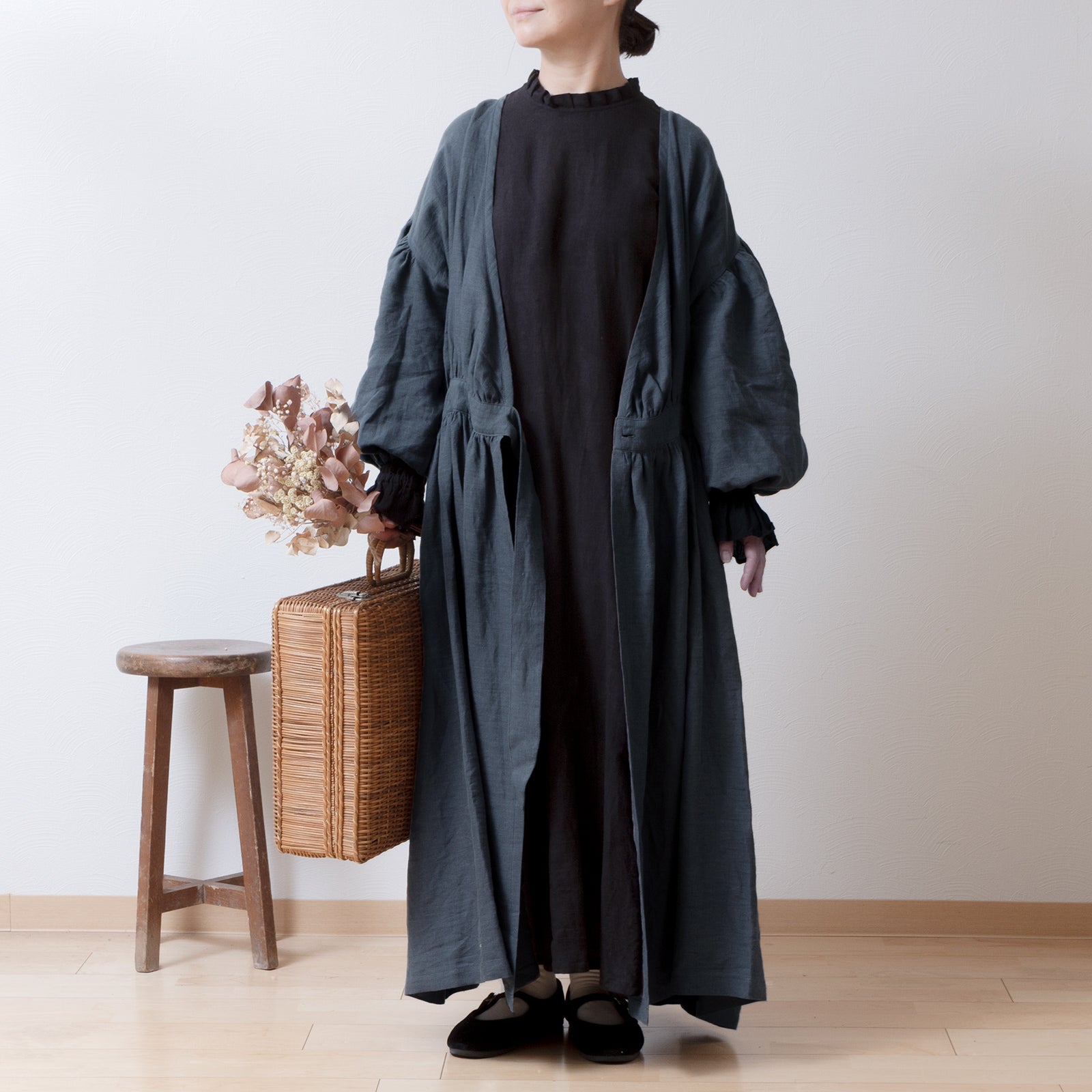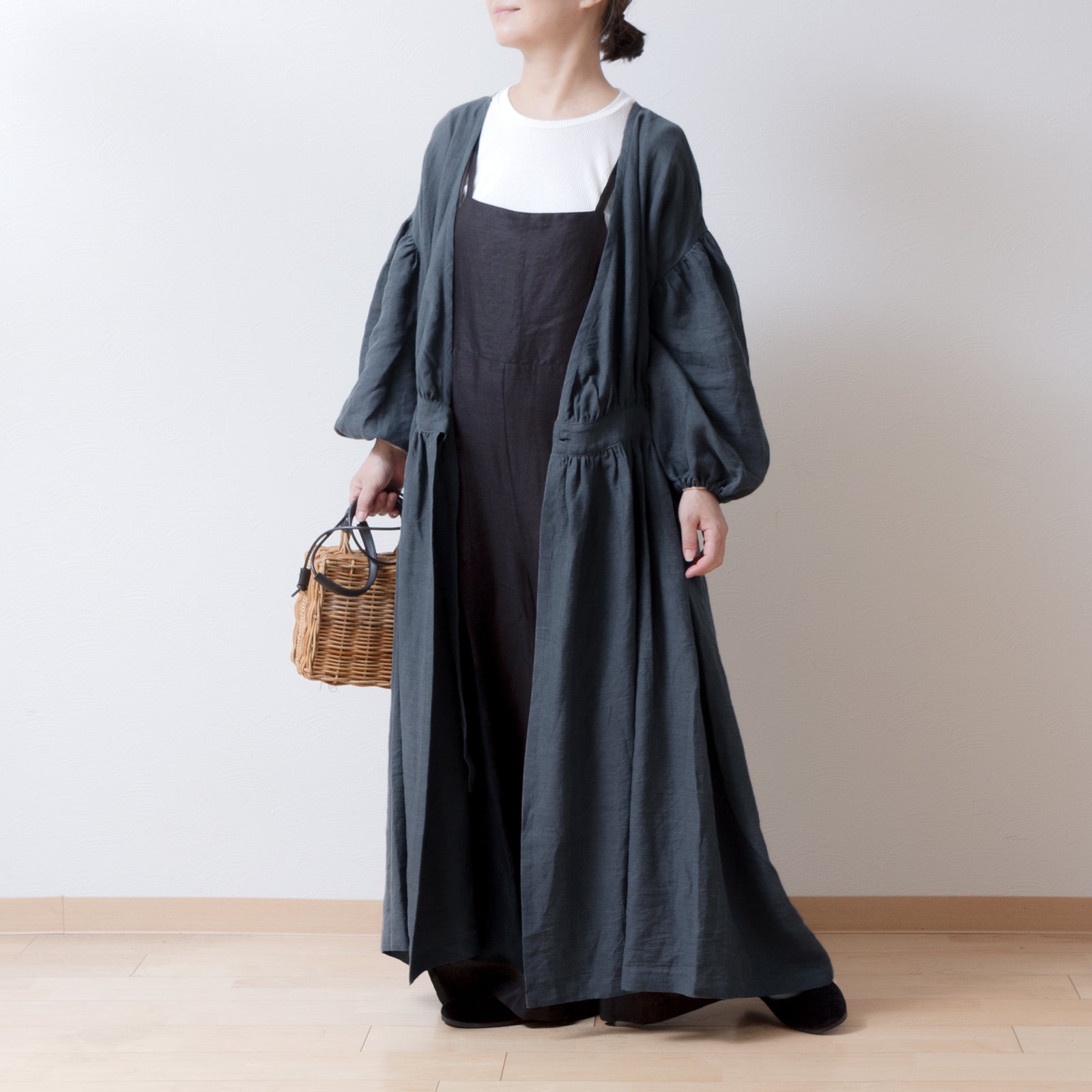 亞麻材質的灰色使這件連身裙成為一件很酷的連身裙,您可以在秋天享受它的顏色。