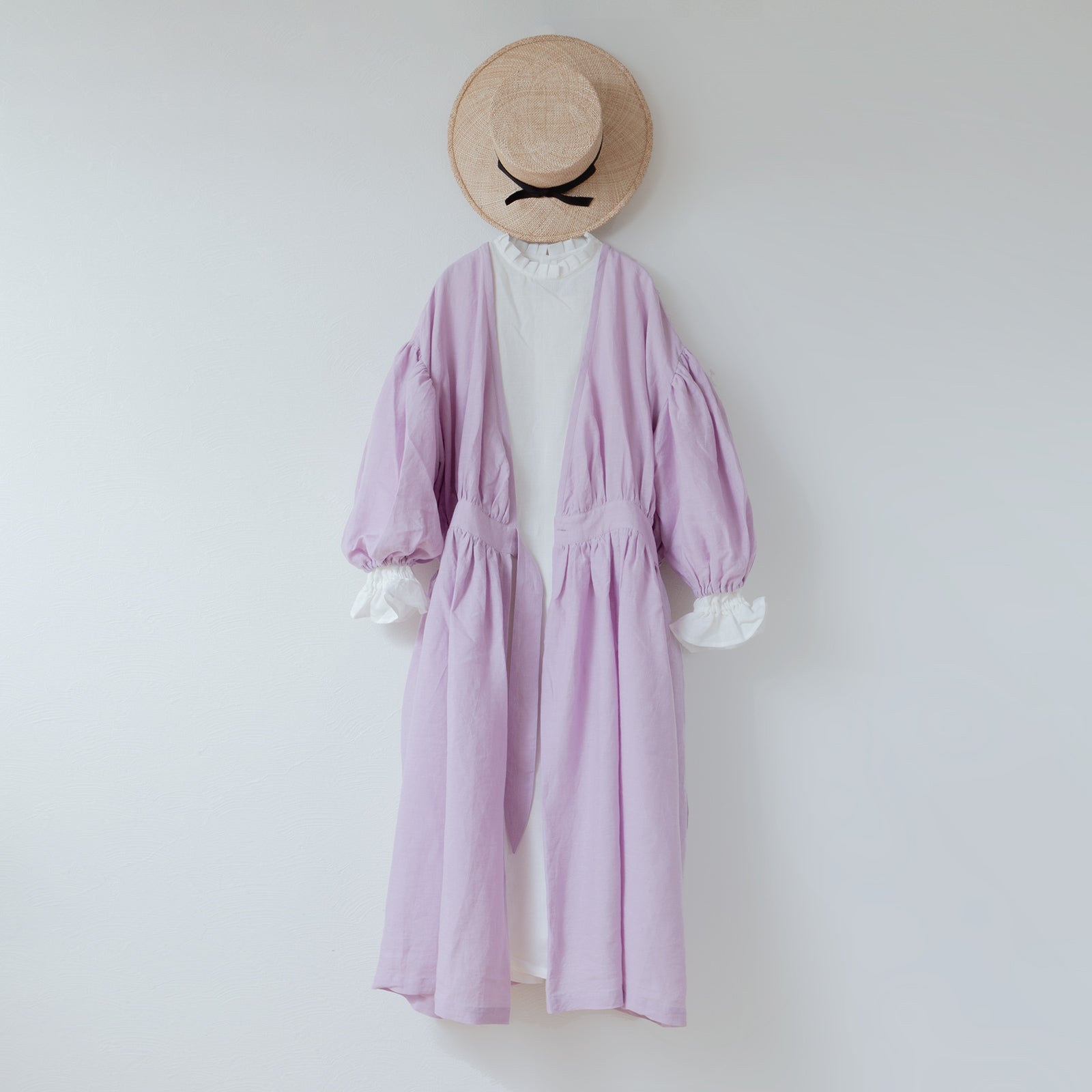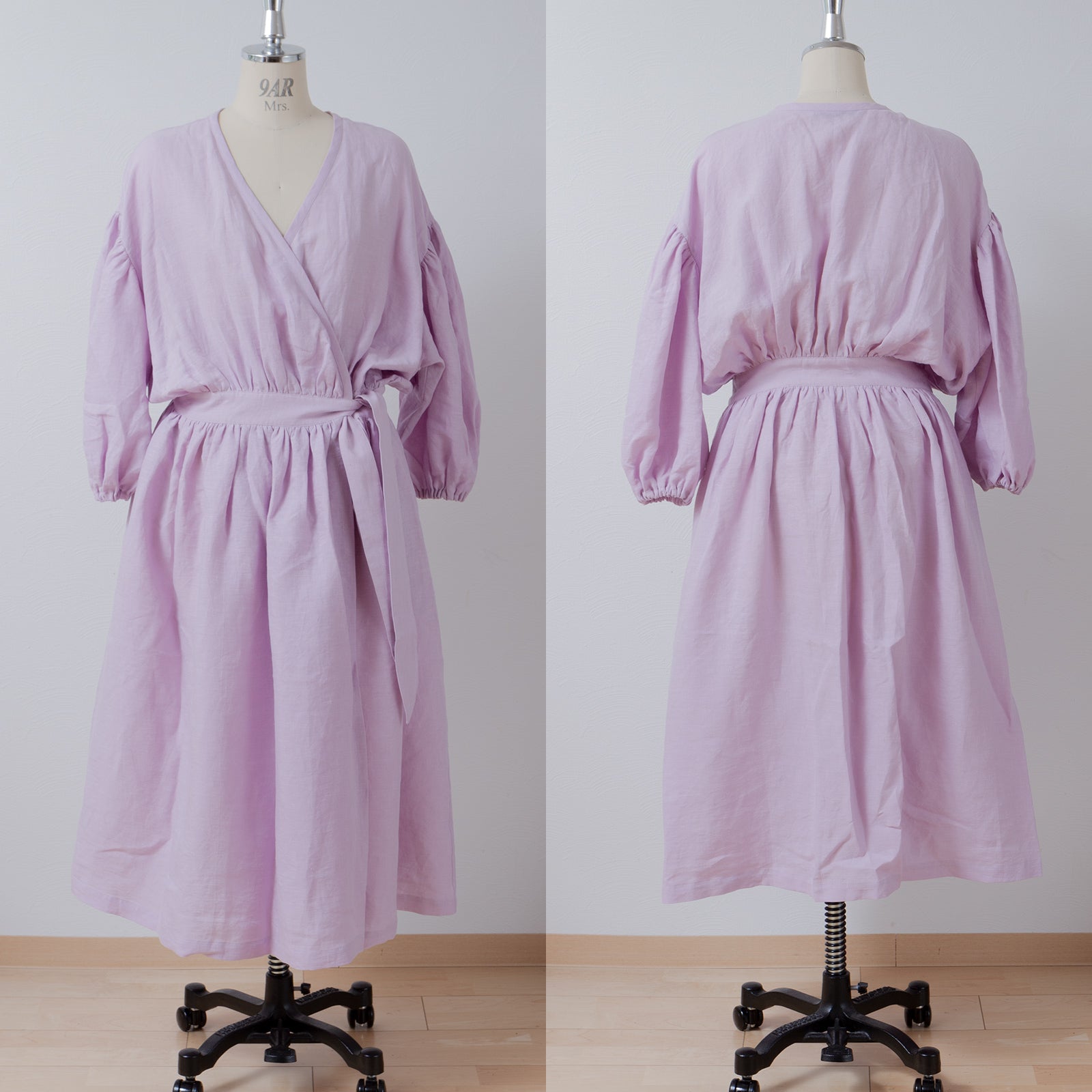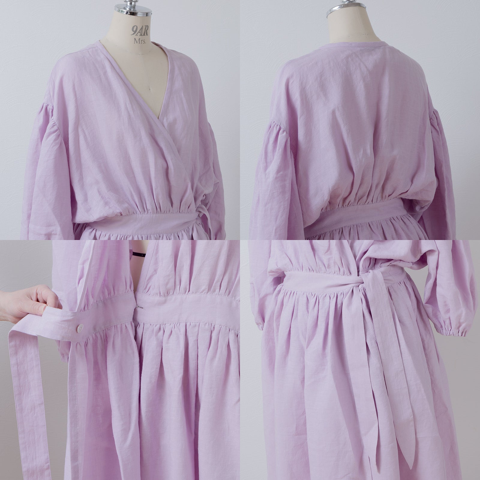 前部包裹、側部絲帶腰帶以及寬大的褶皺設計營造出成熟可愛的外觀。