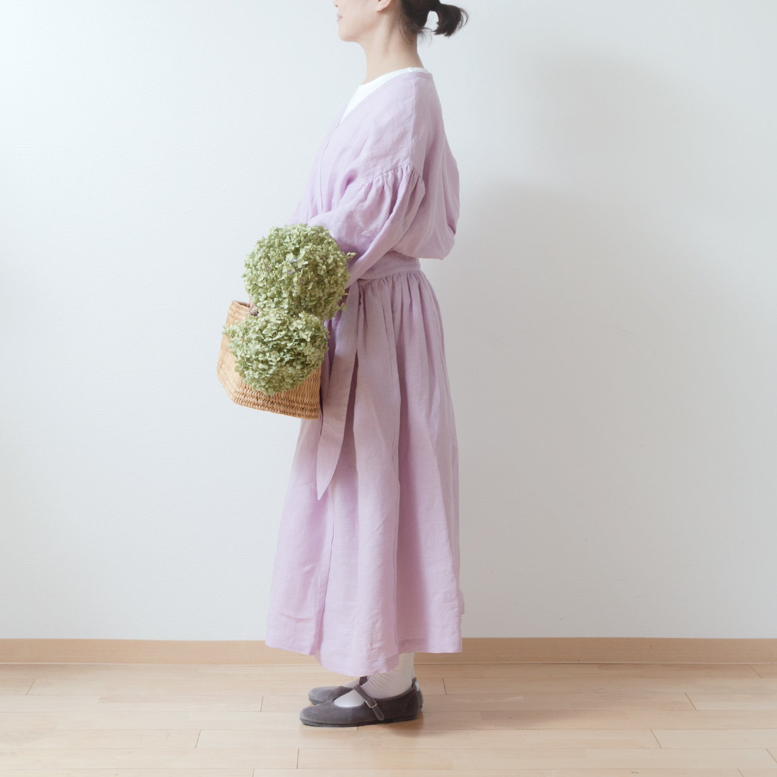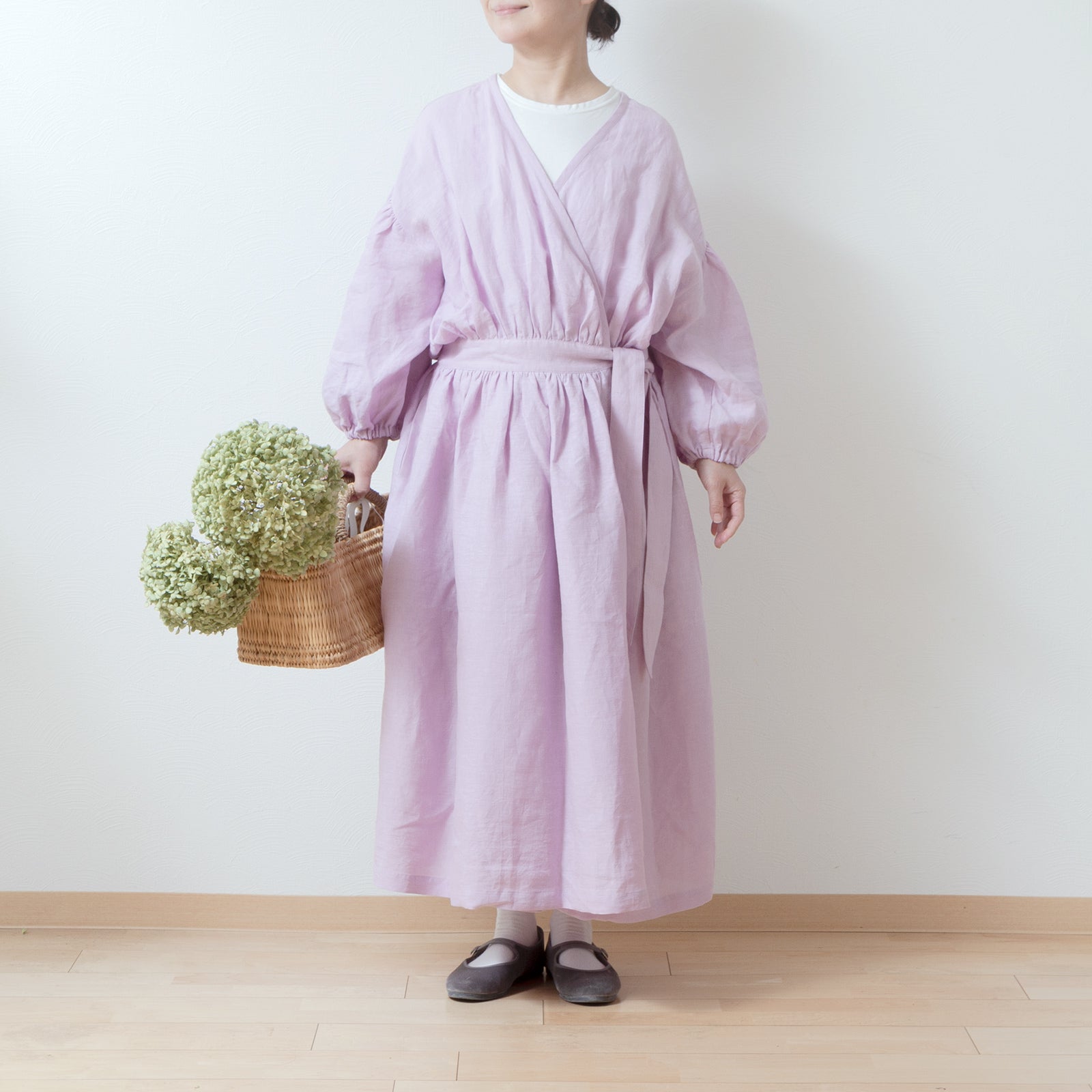 Cache-Coeur 褶皺兩用洋裝 - 法國亞麻/粉紅色