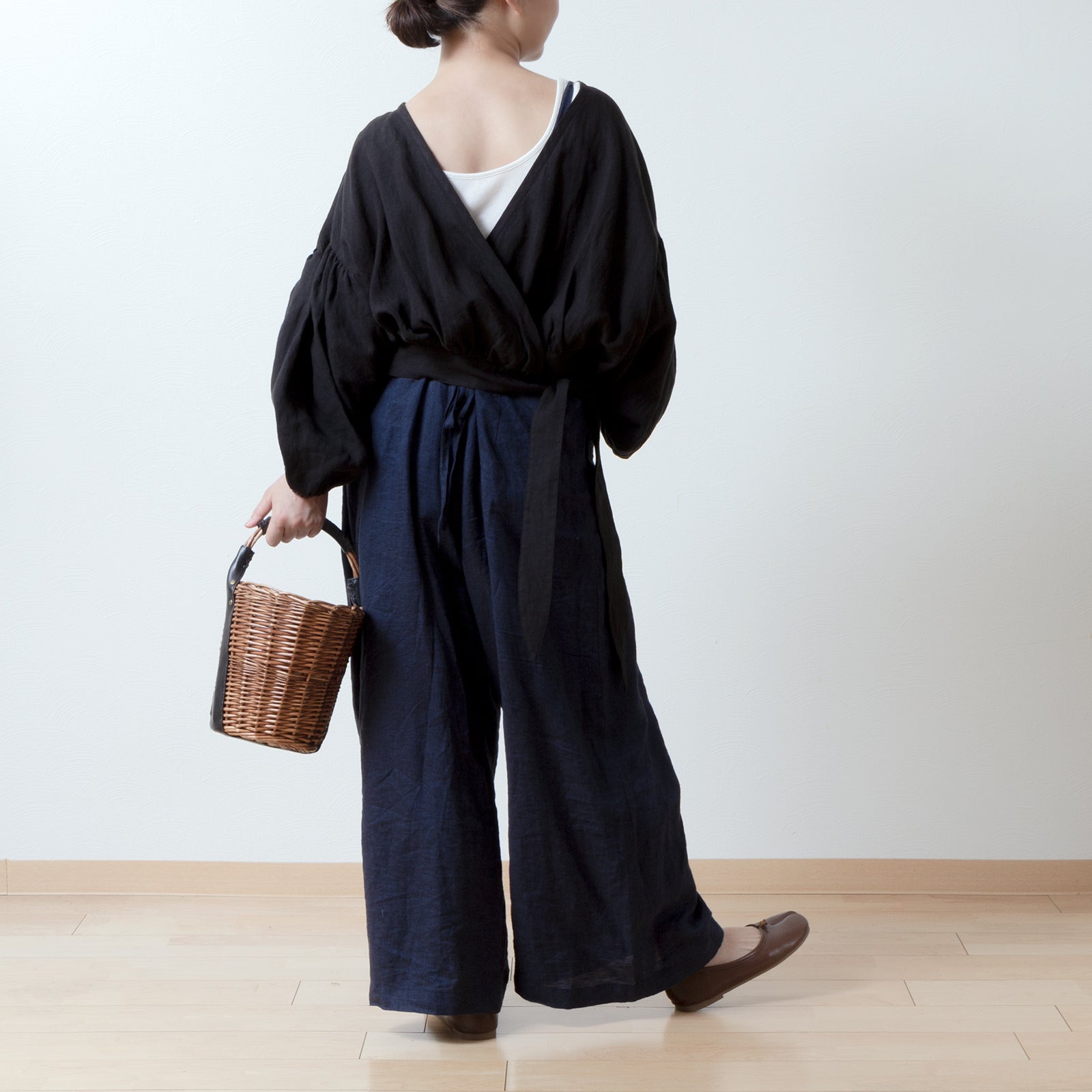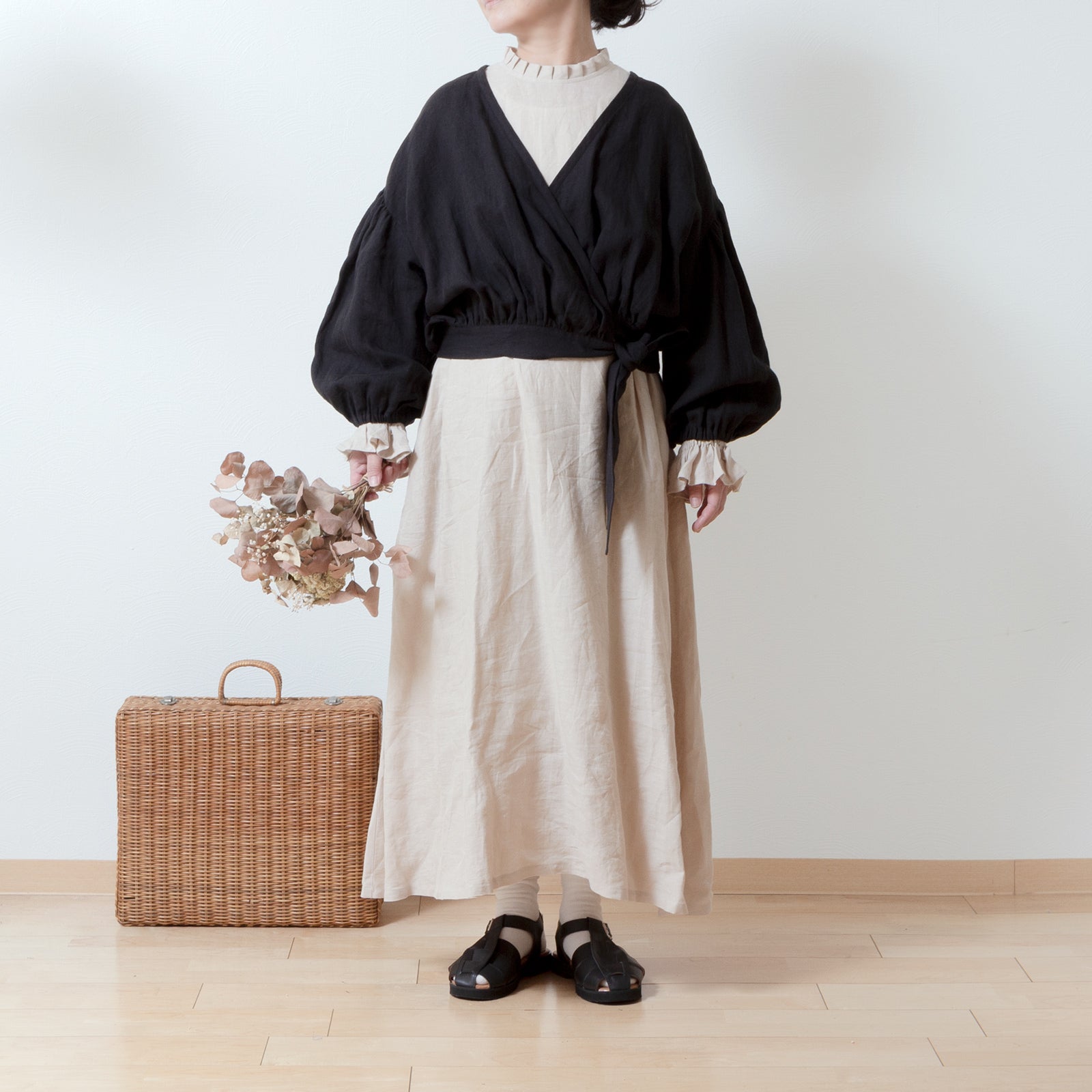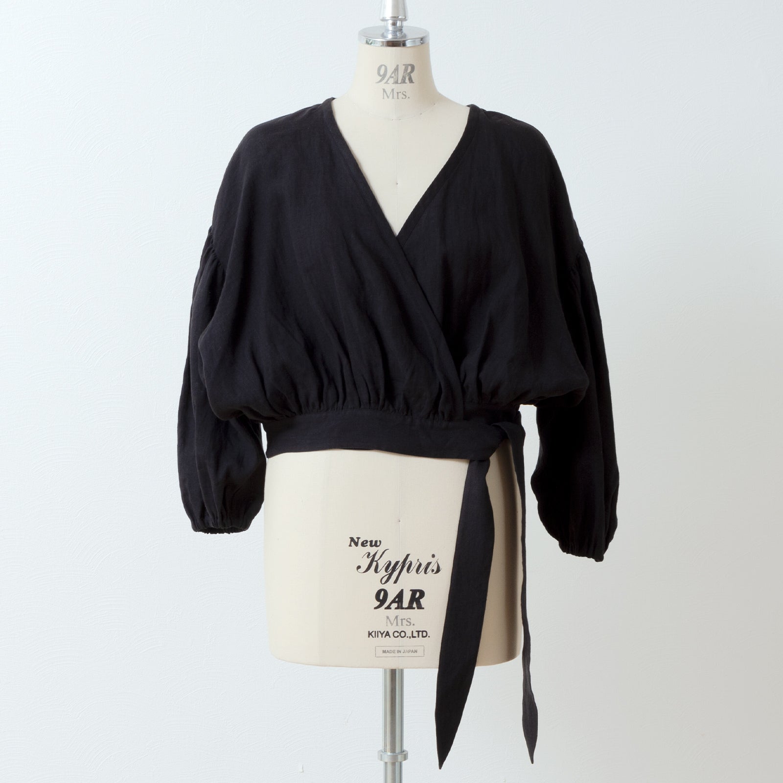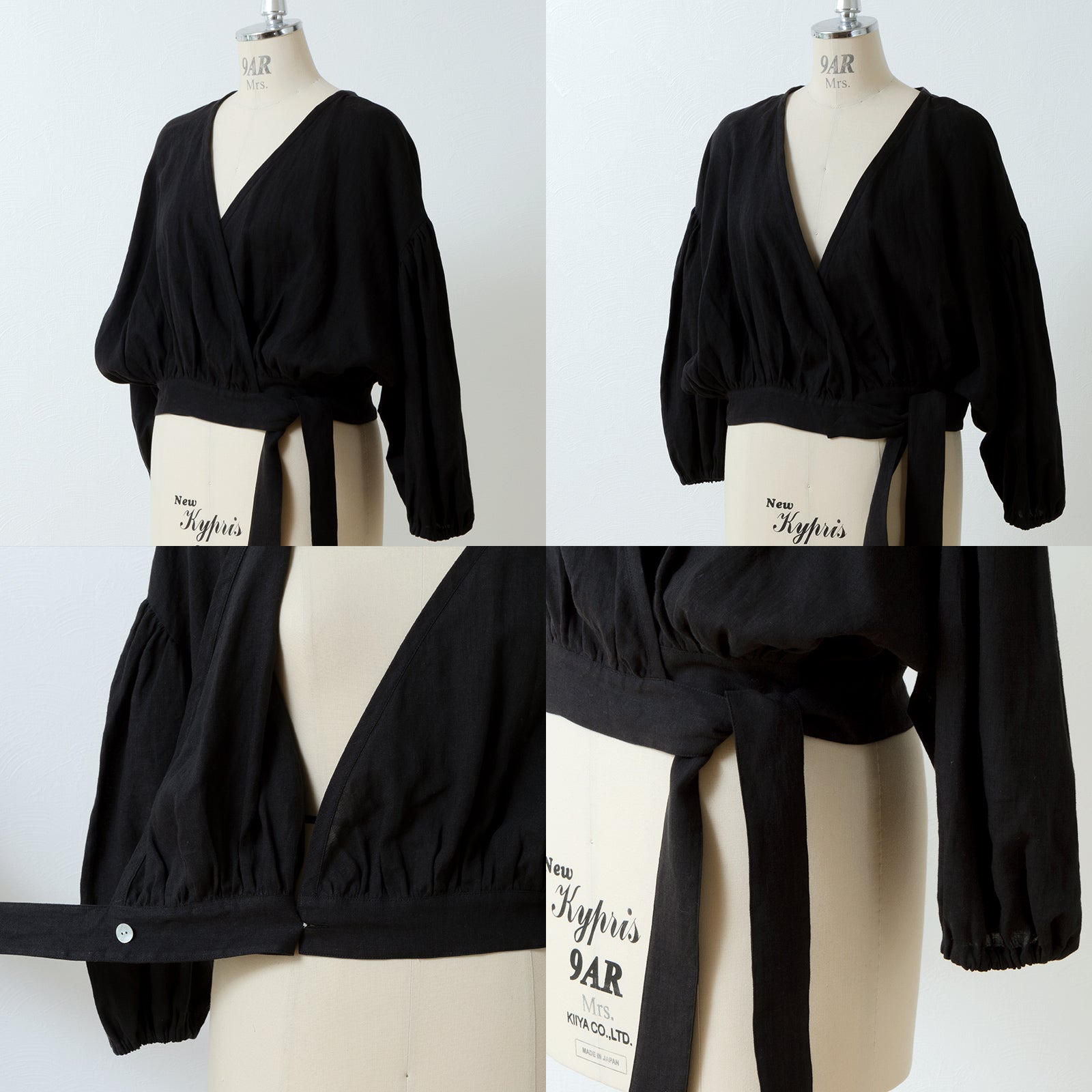 Cache-Coeur 褶皺兩用襯衫 - 法國亞麻/黑色