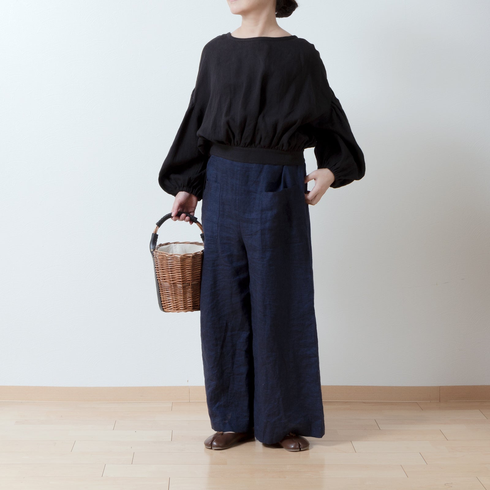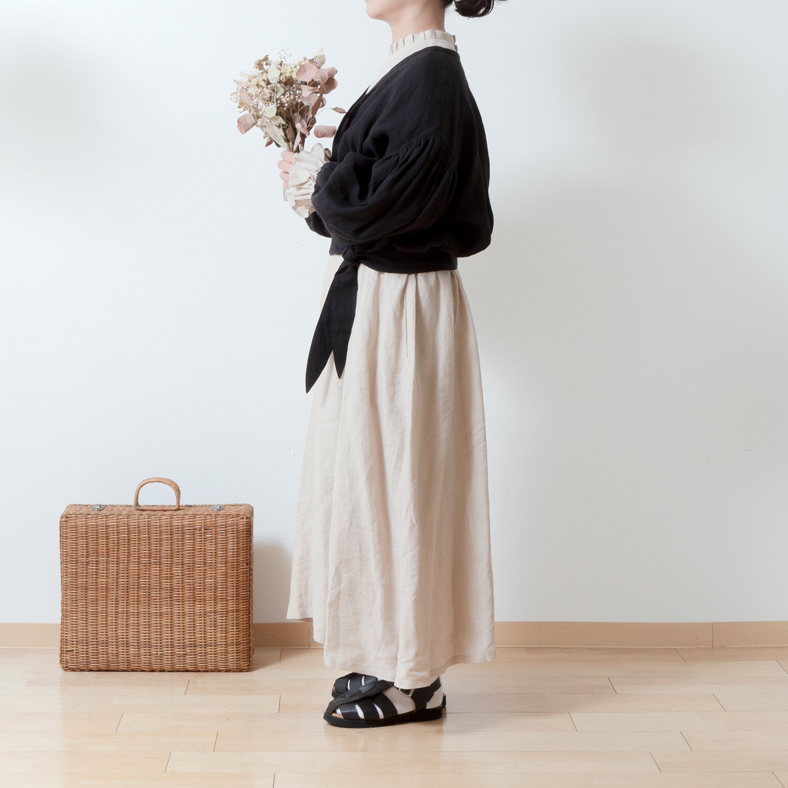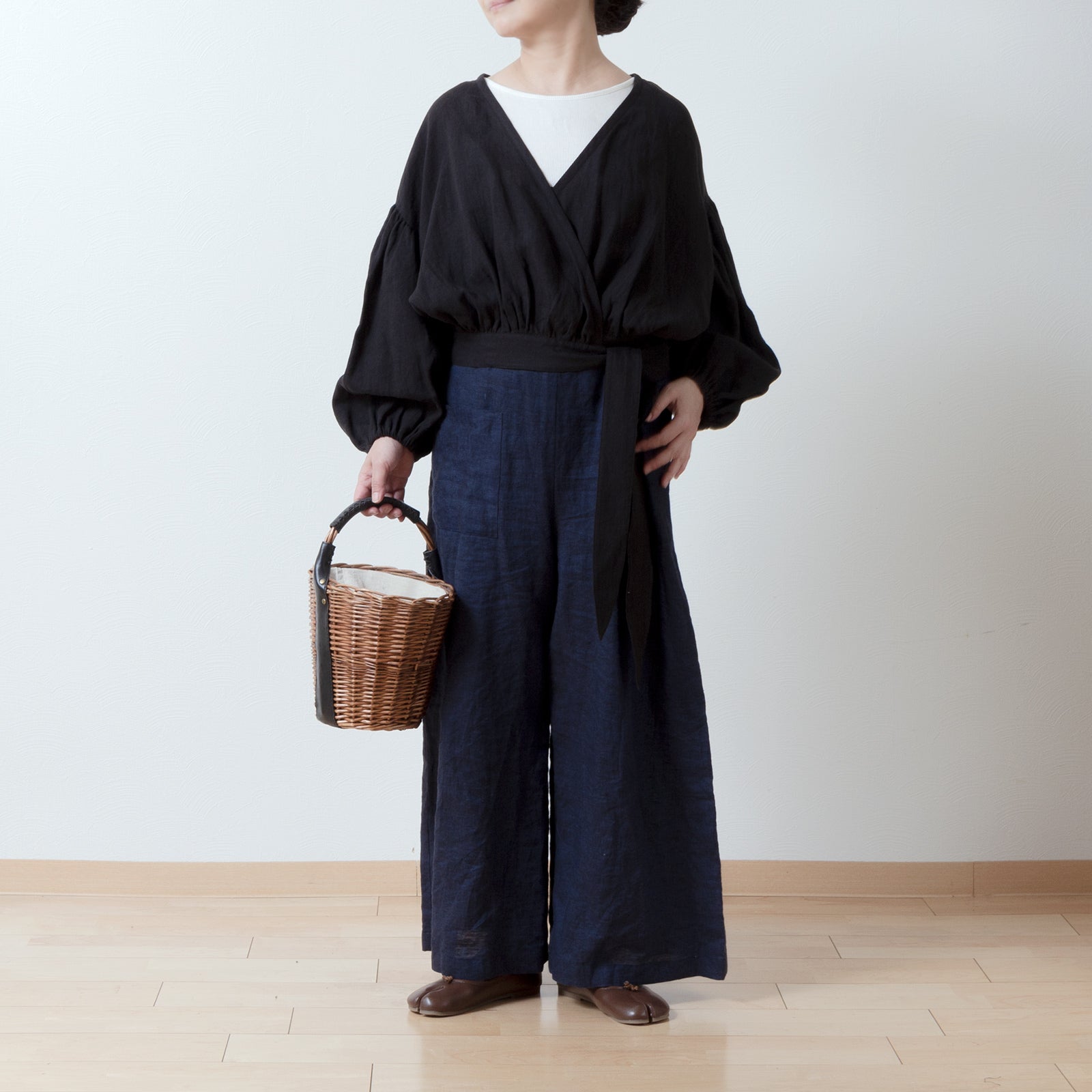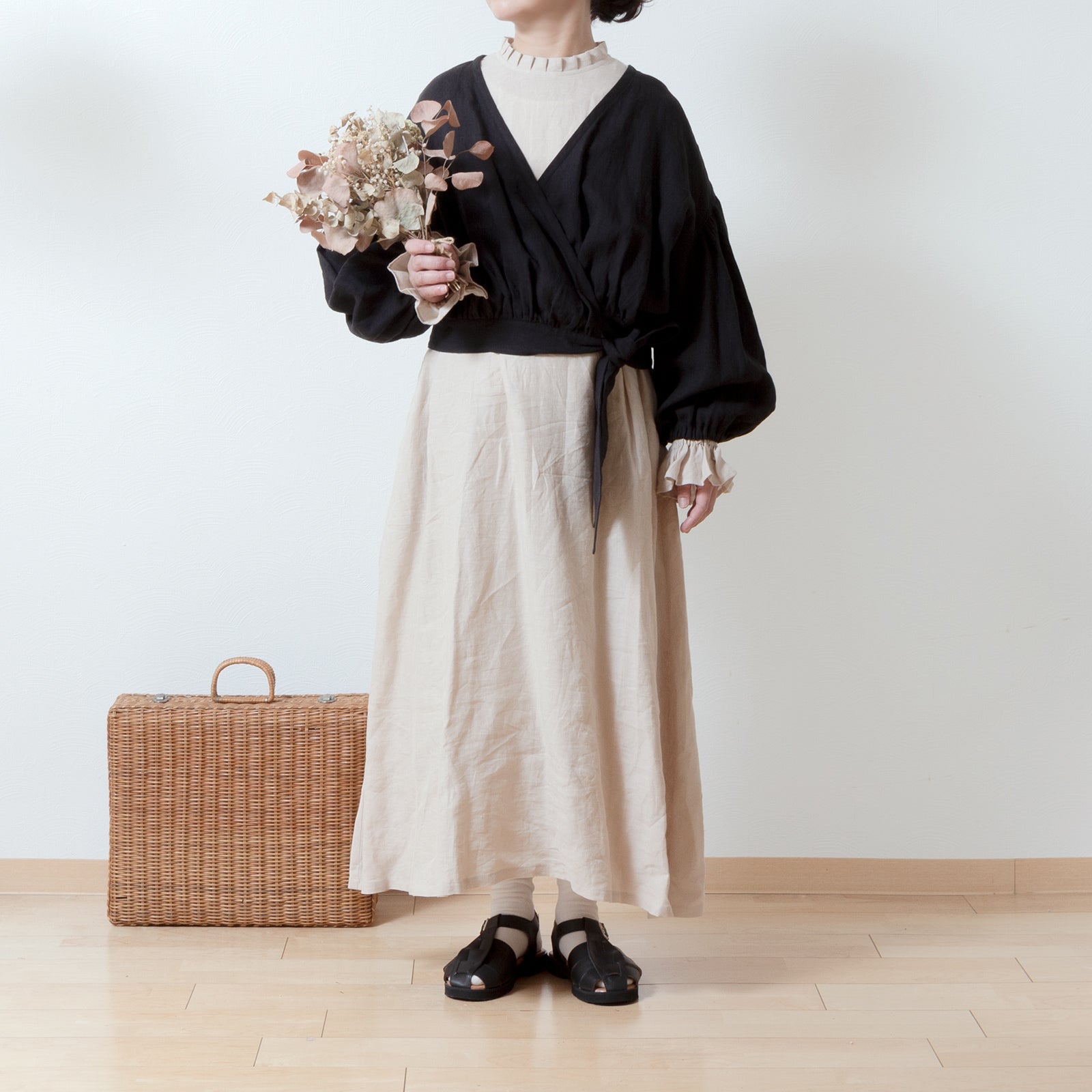 Cache-Coeur 褶皺兩用襯衫 - 法國亞麻/黑色