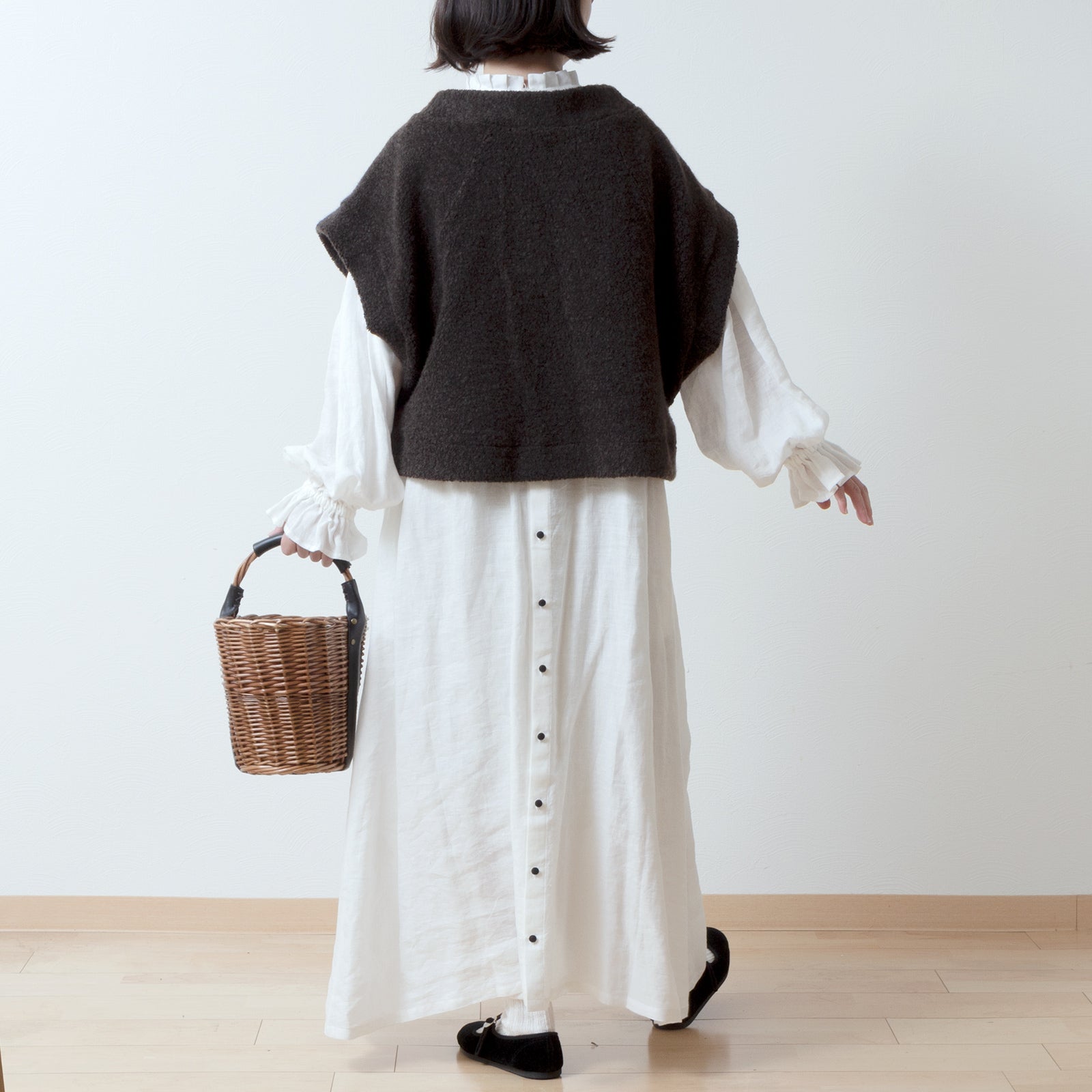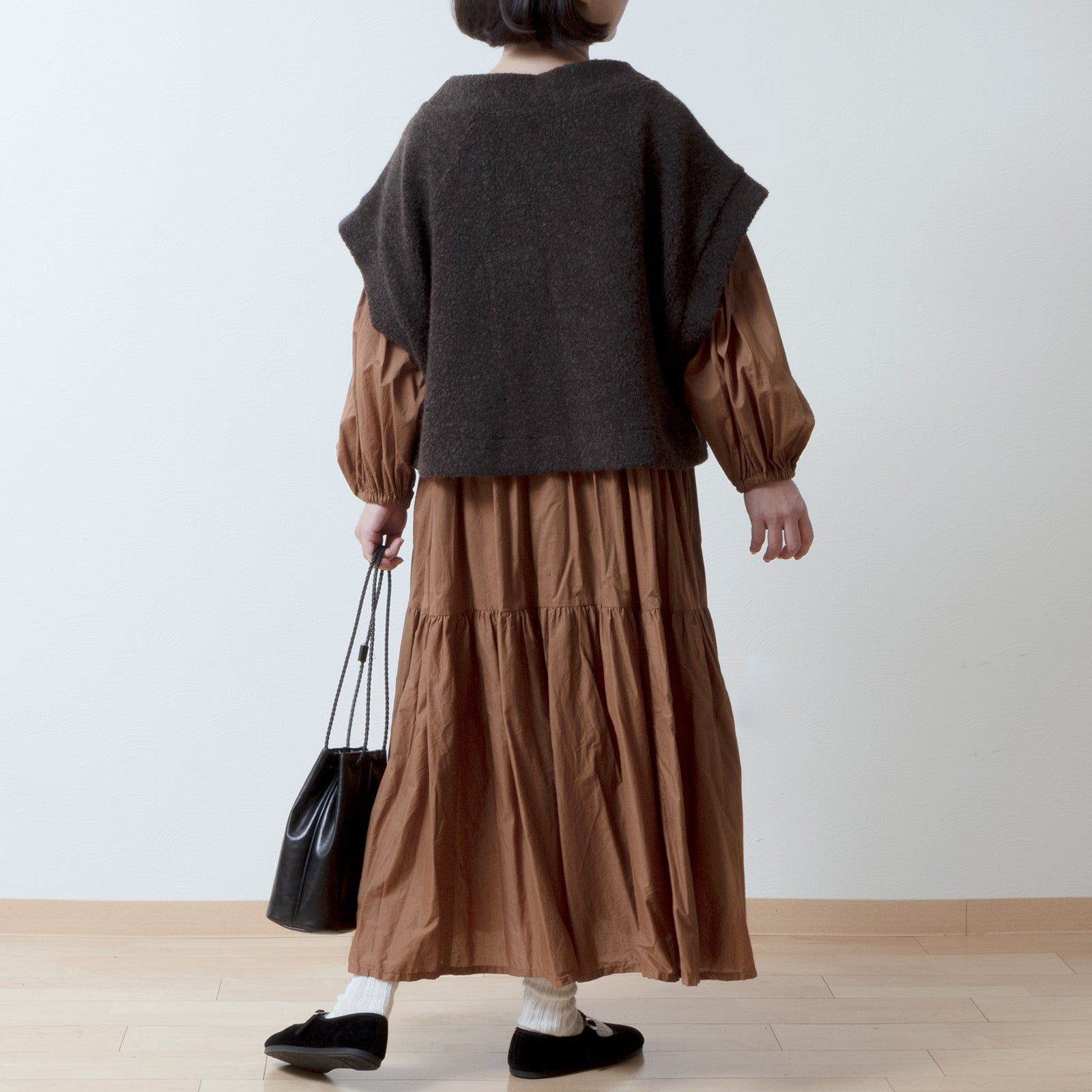 將它疊穿在分層連身裙上,營造出精緻、少女的感覺。