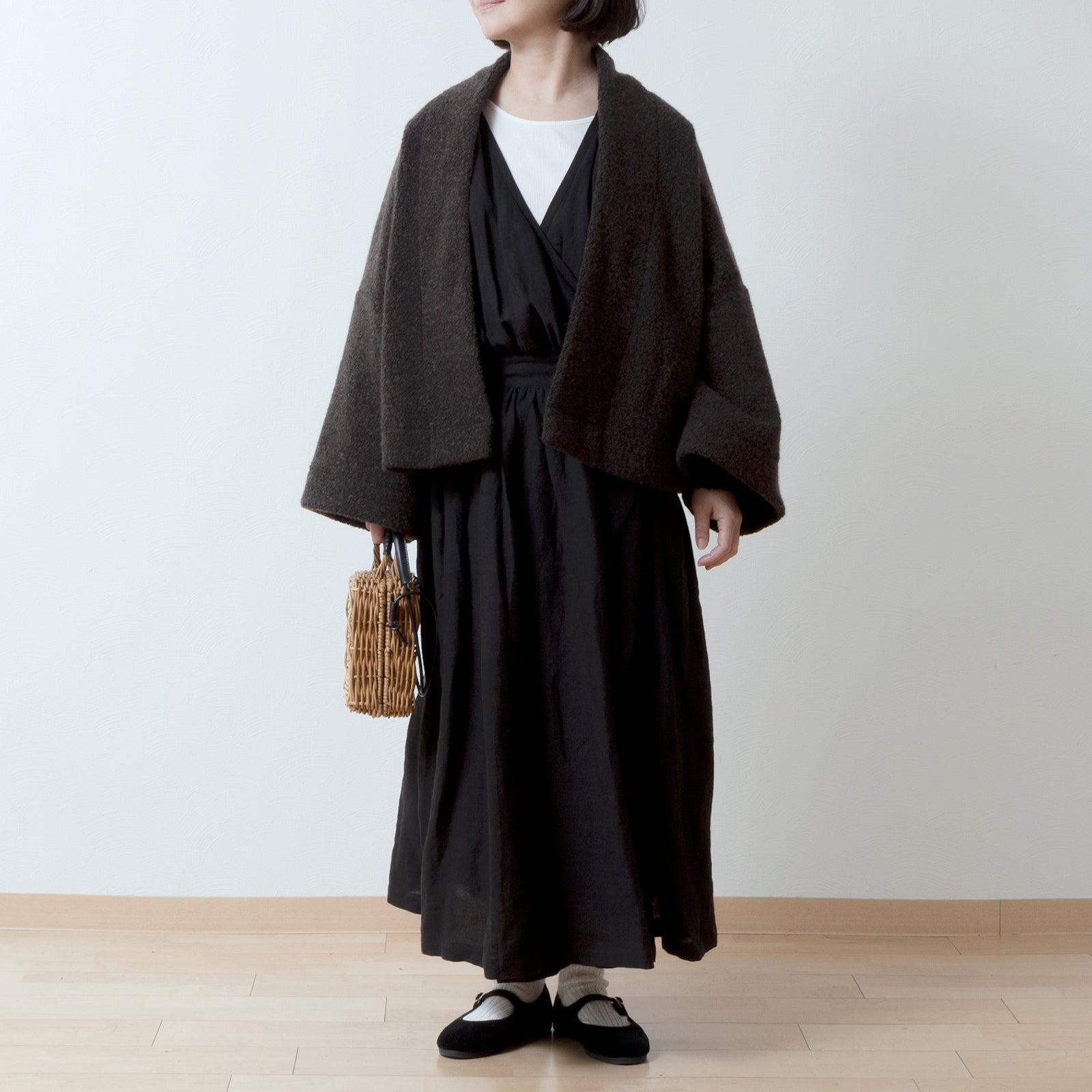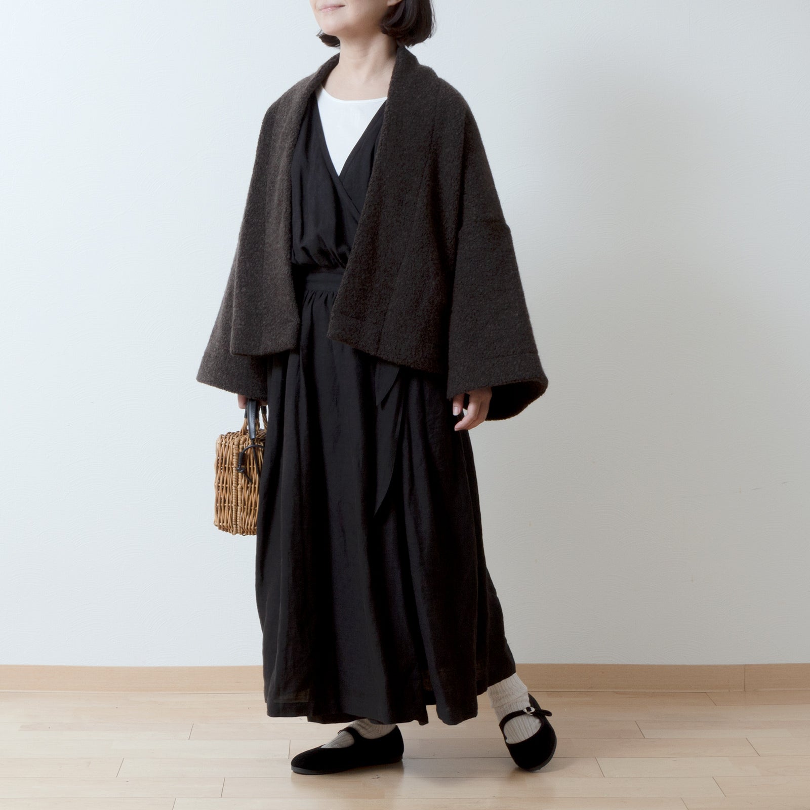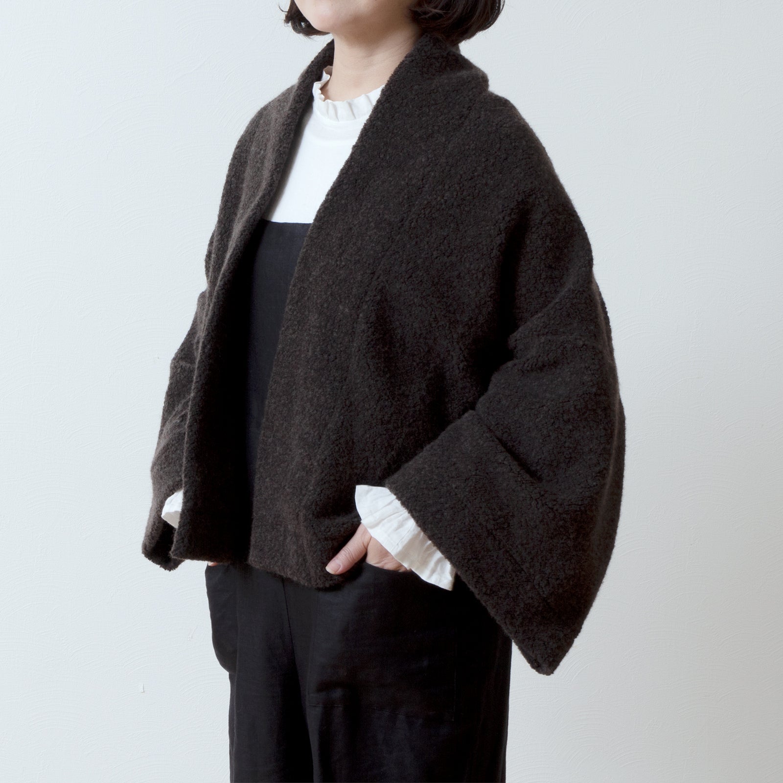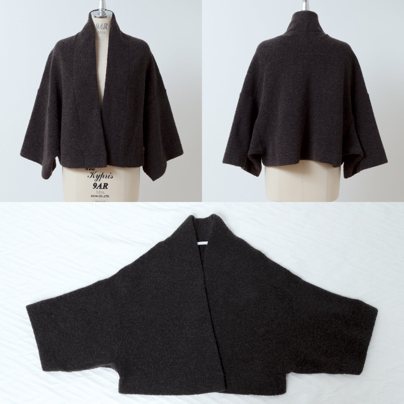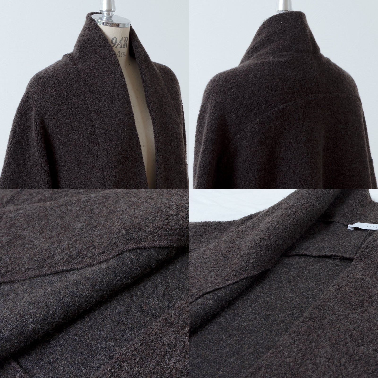 這款披肩領開襟衫採用蟒蛇皮材質,混紡羊毛超過 50%,輕盈又溫暖。