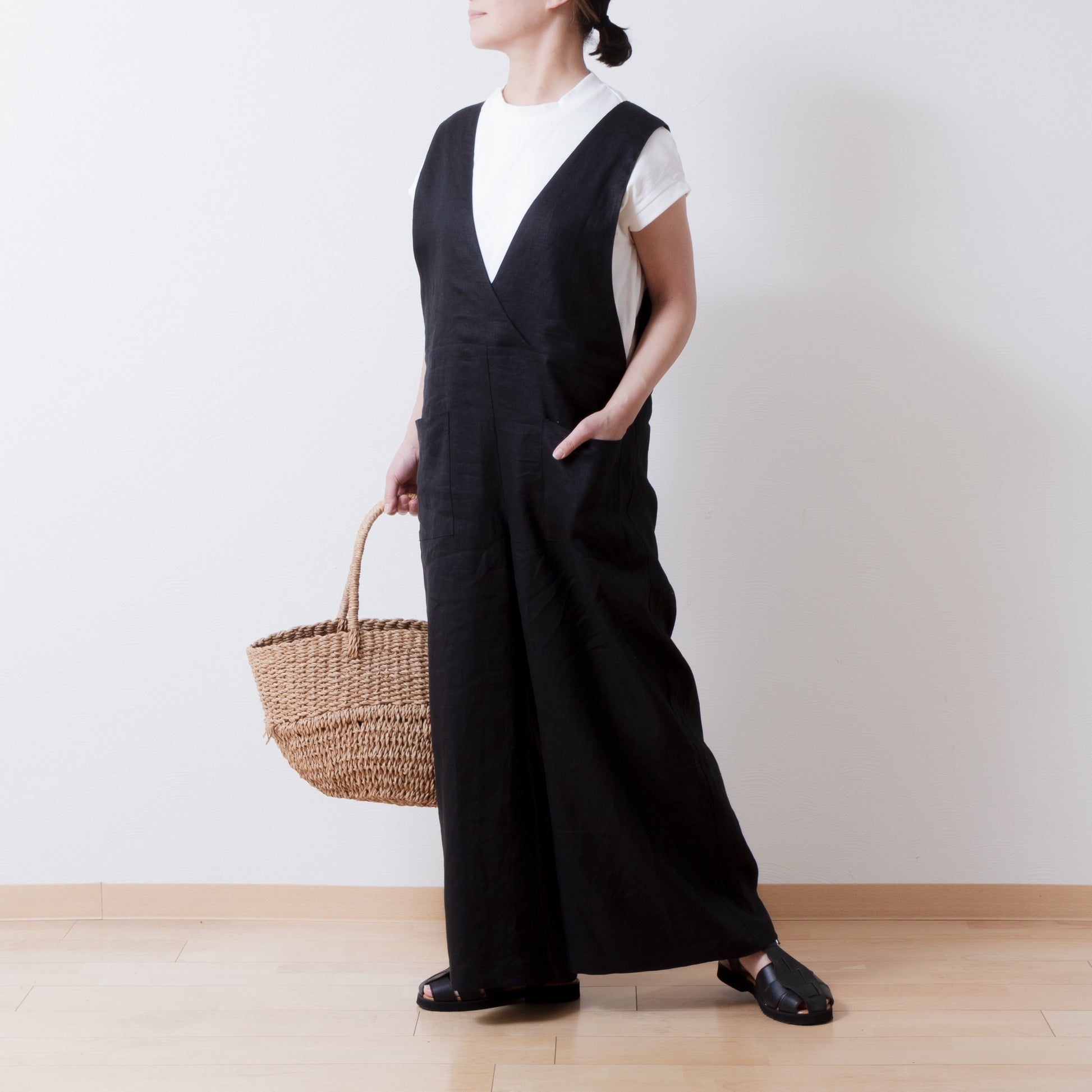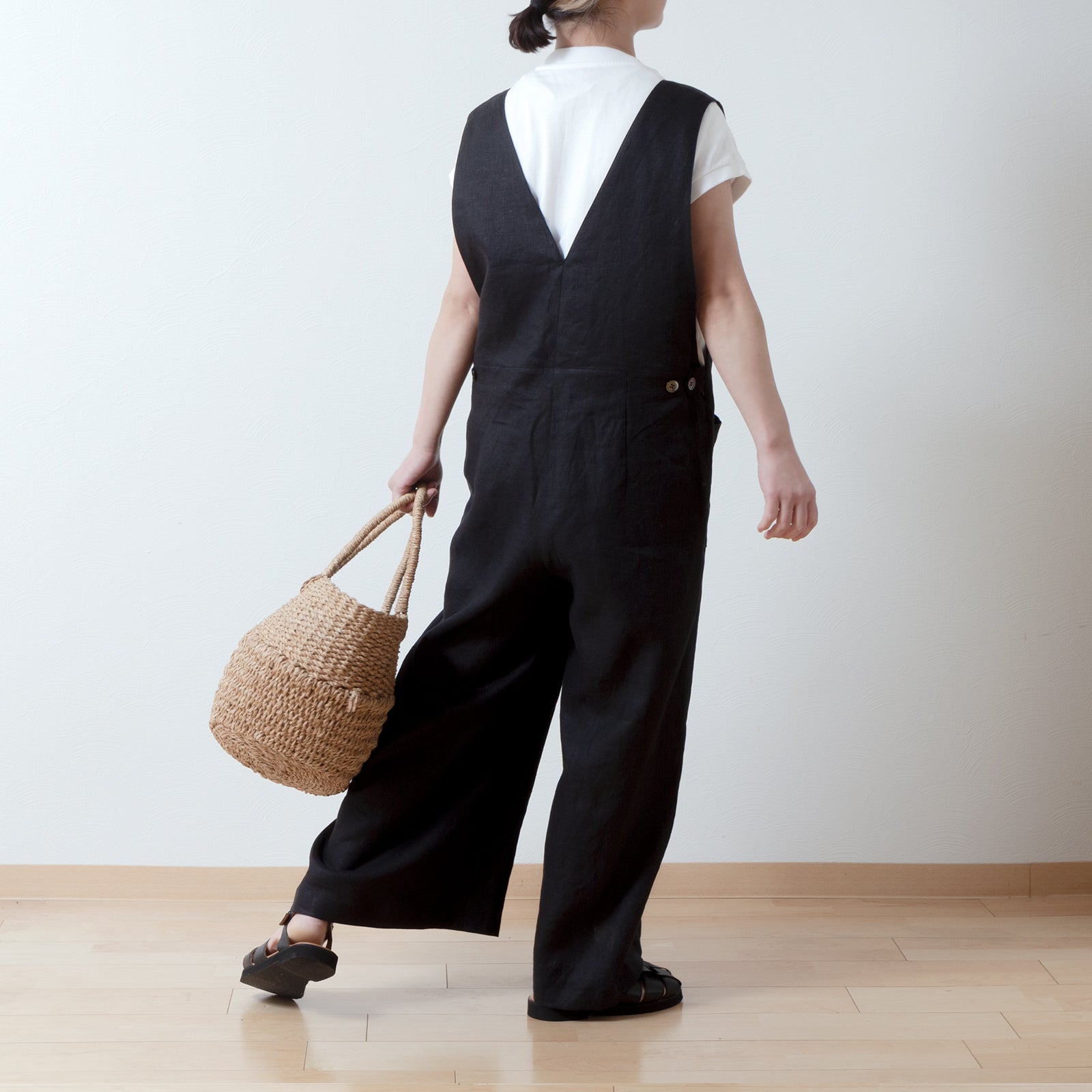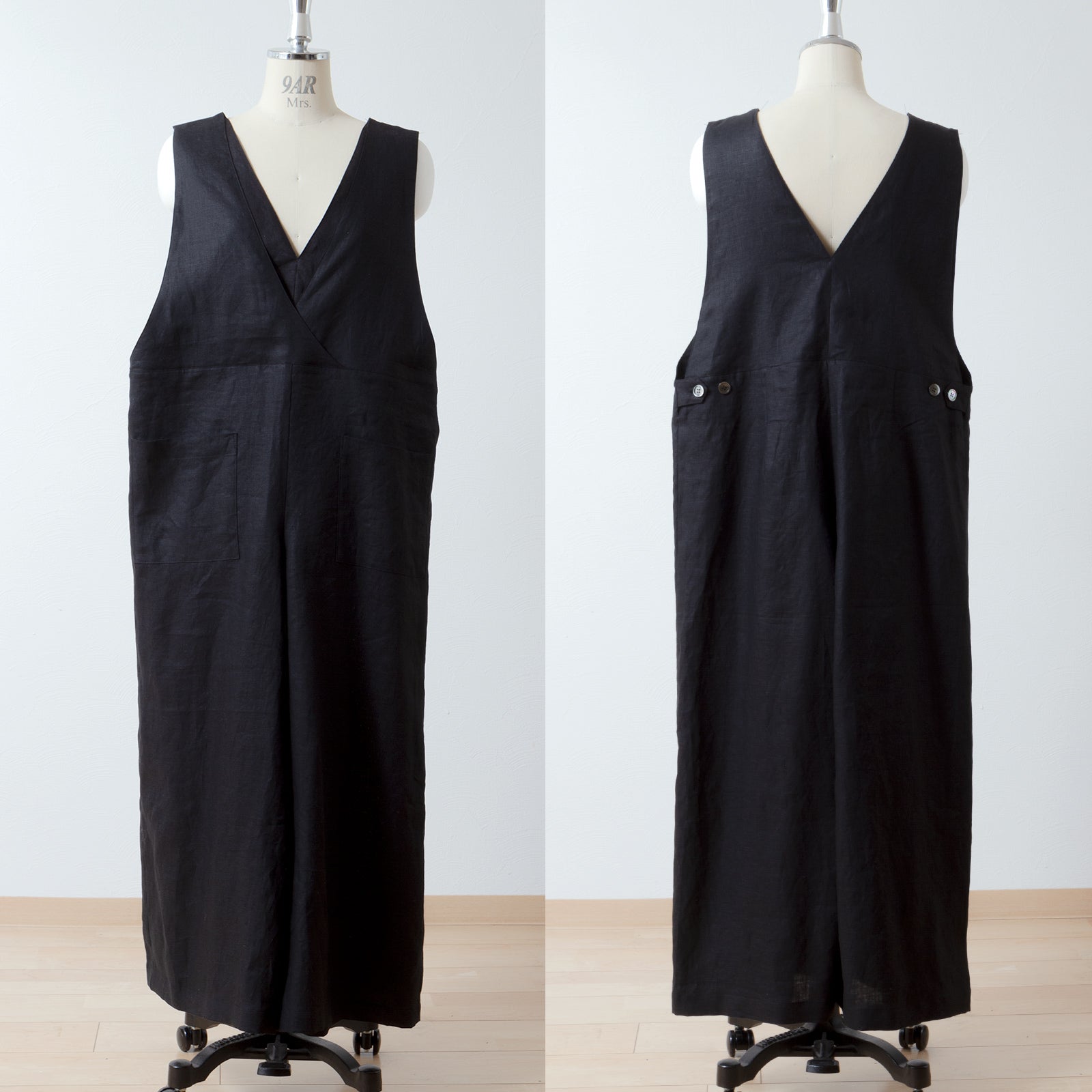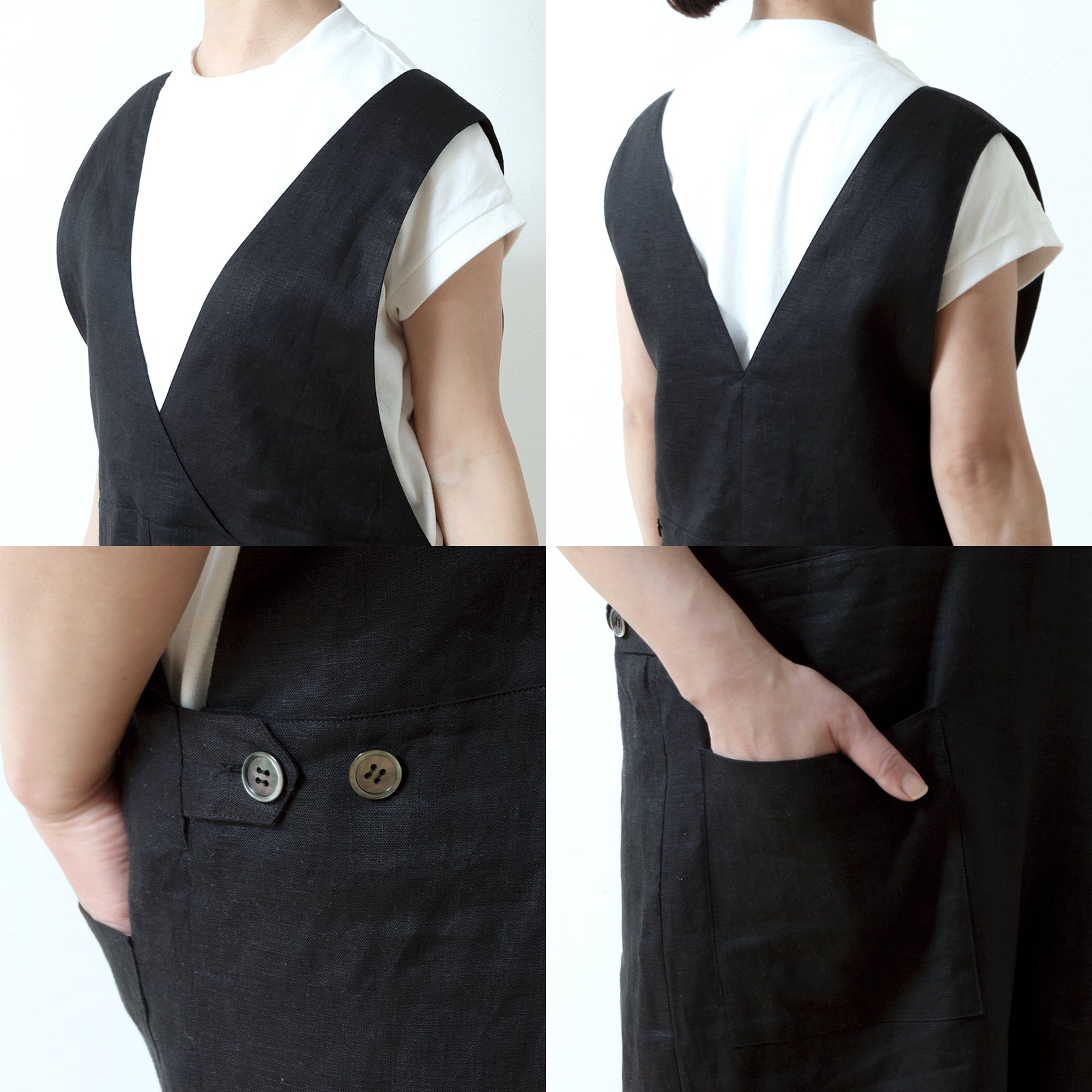 前身採用環繞式設計,後身採用深 V 領設計,使工裝褲看起來精緻而又不會過於休閒。