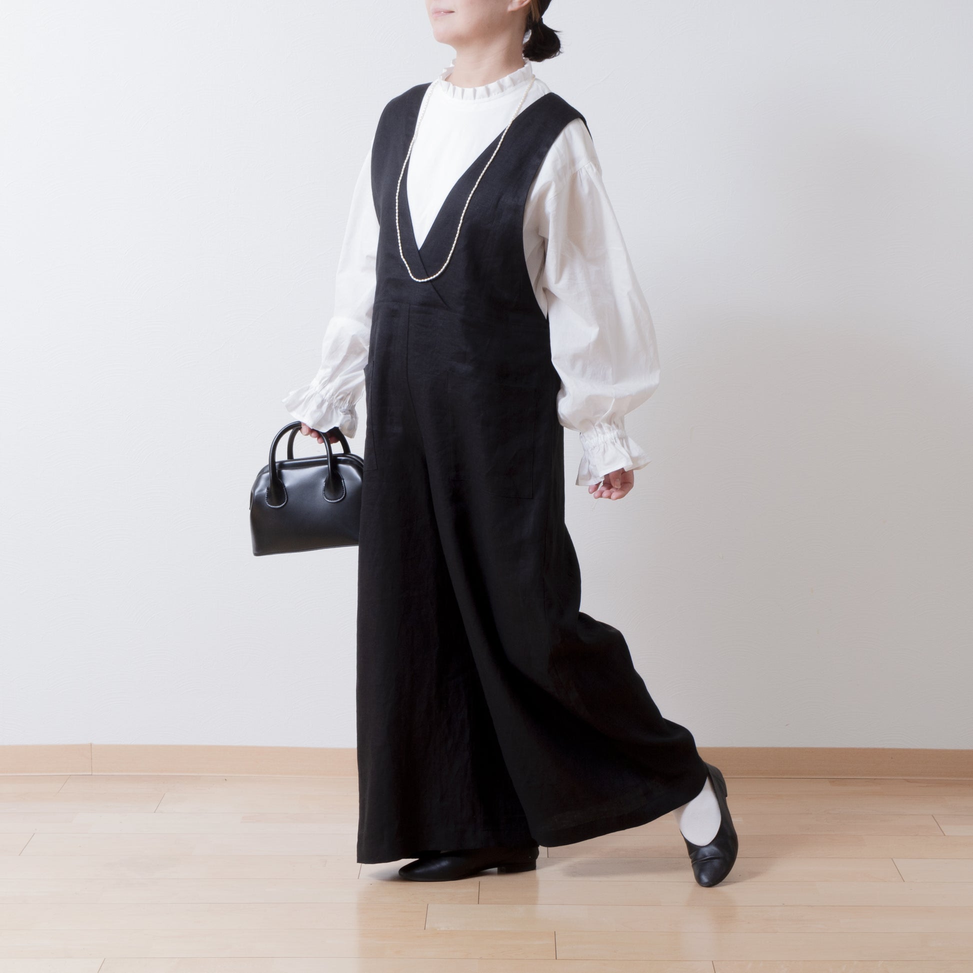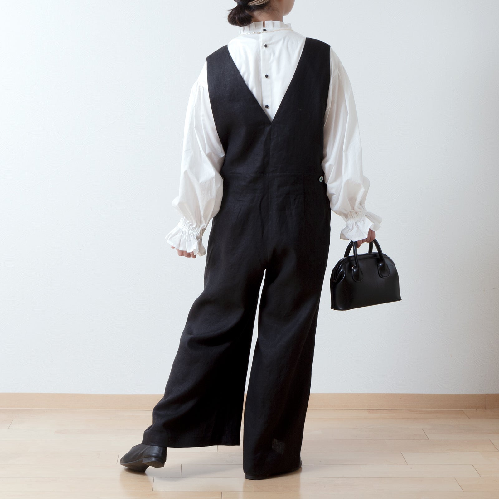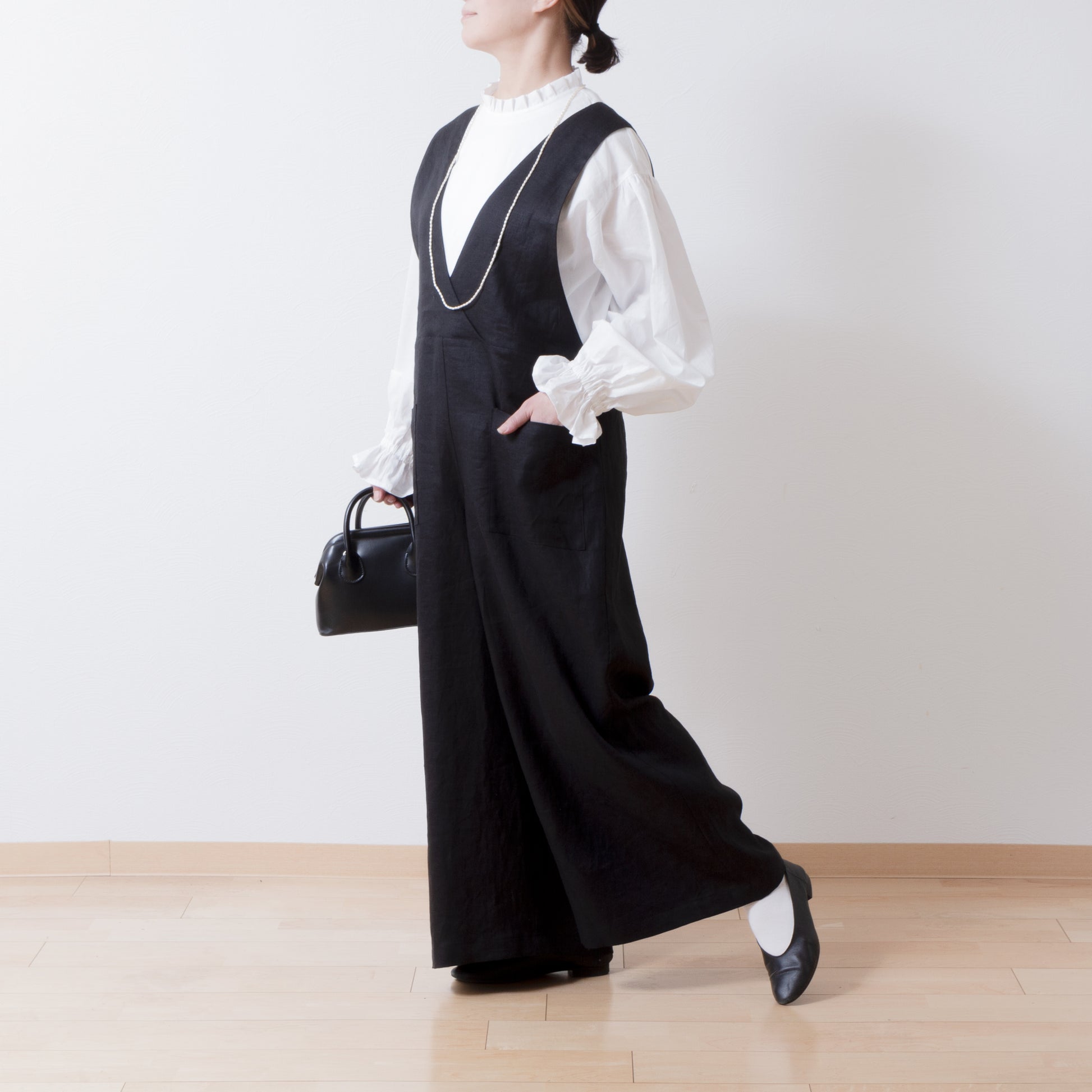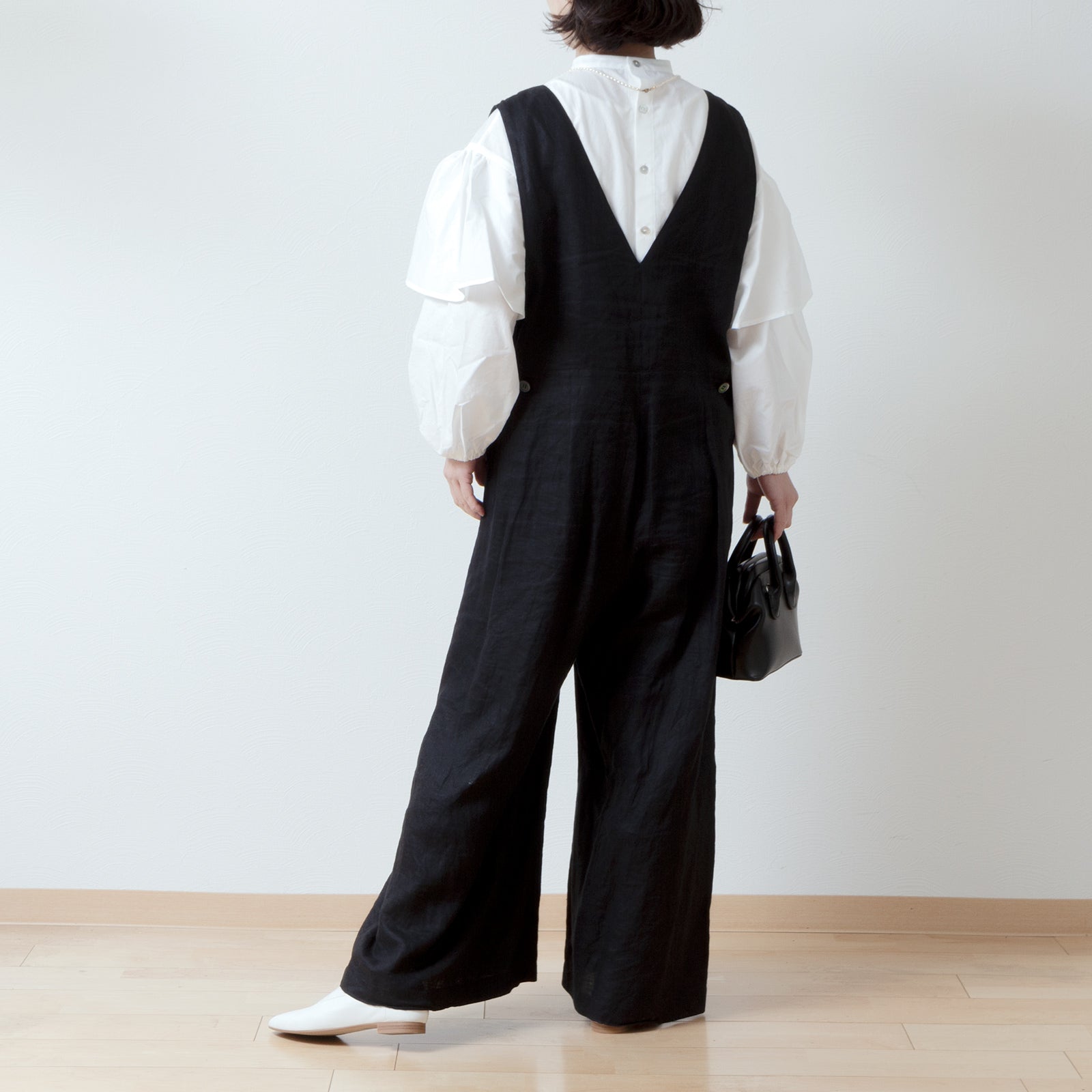 前身採用環繞式設計,後身採用深 V 領設計,使工裝褲看起來精緻而又不會過於休閒。