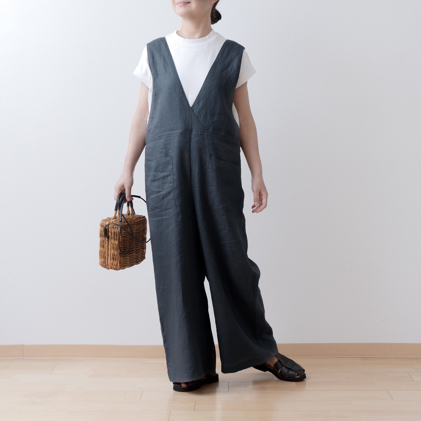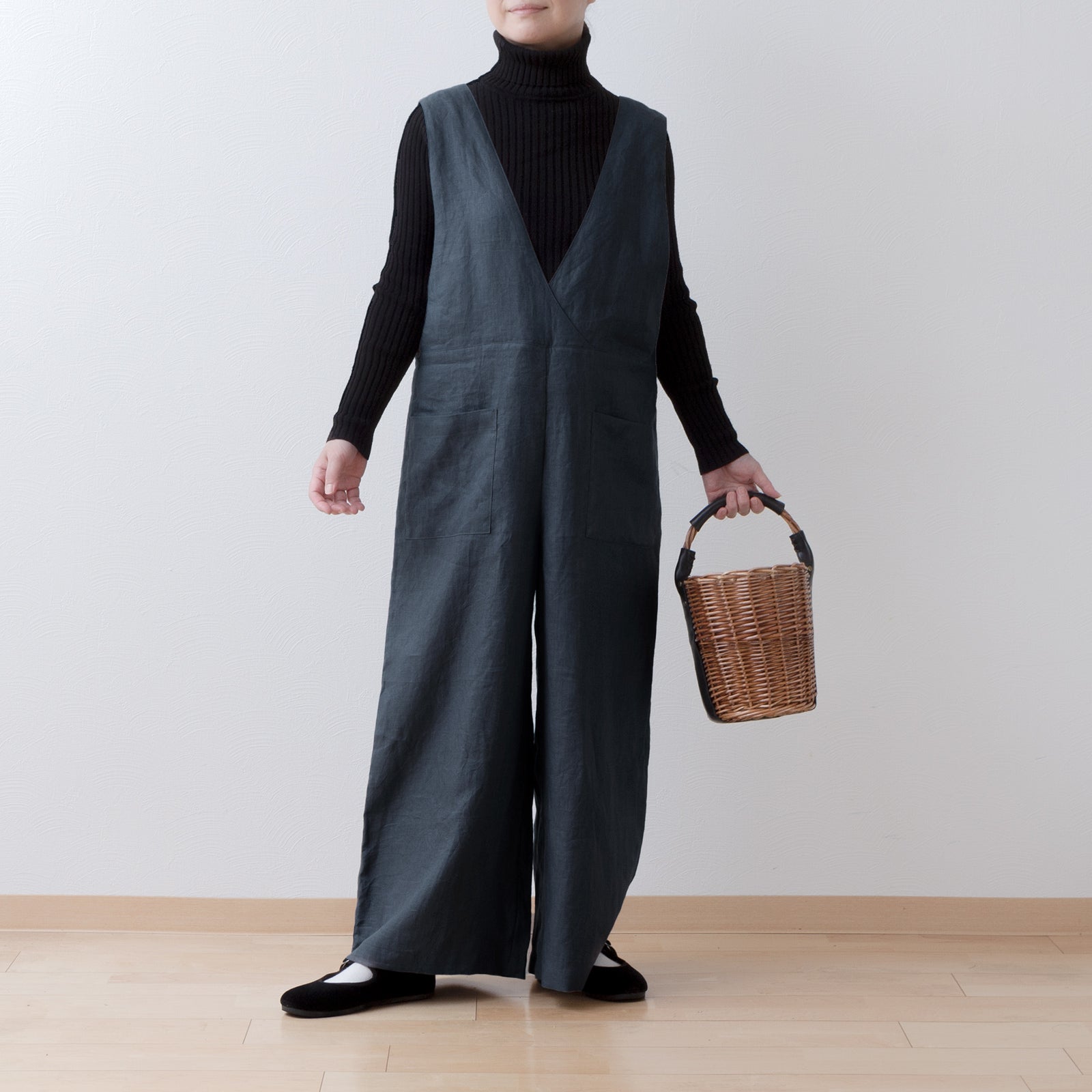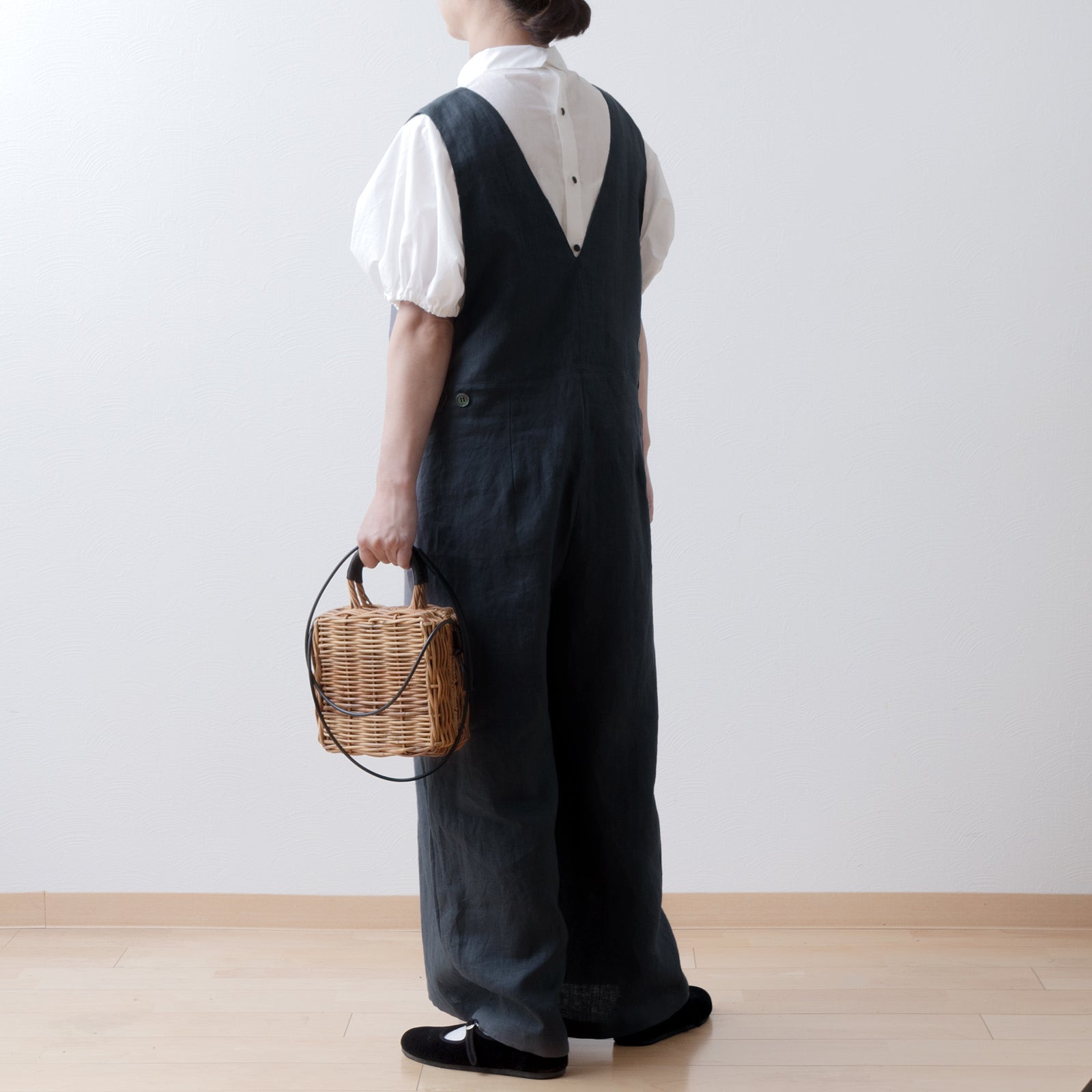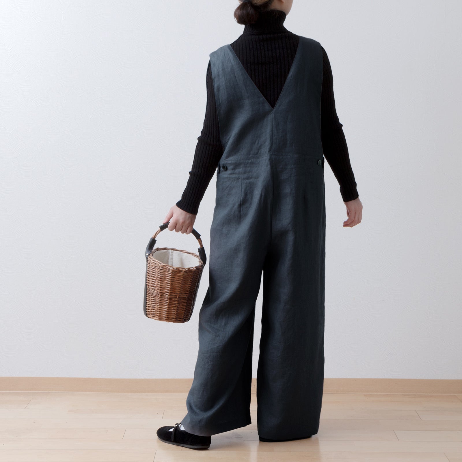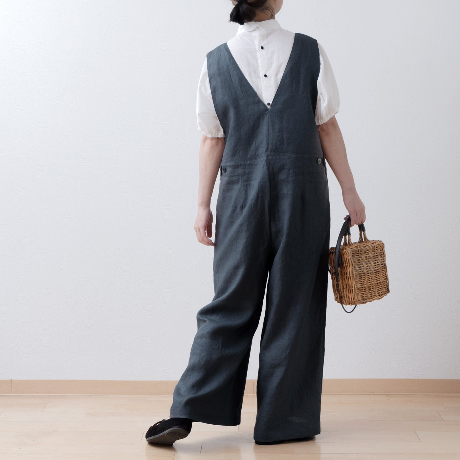 前身採用環繞式設計,後身採用深 V 領設計,使工裝褲看起來精緻而又不會過於休閒。