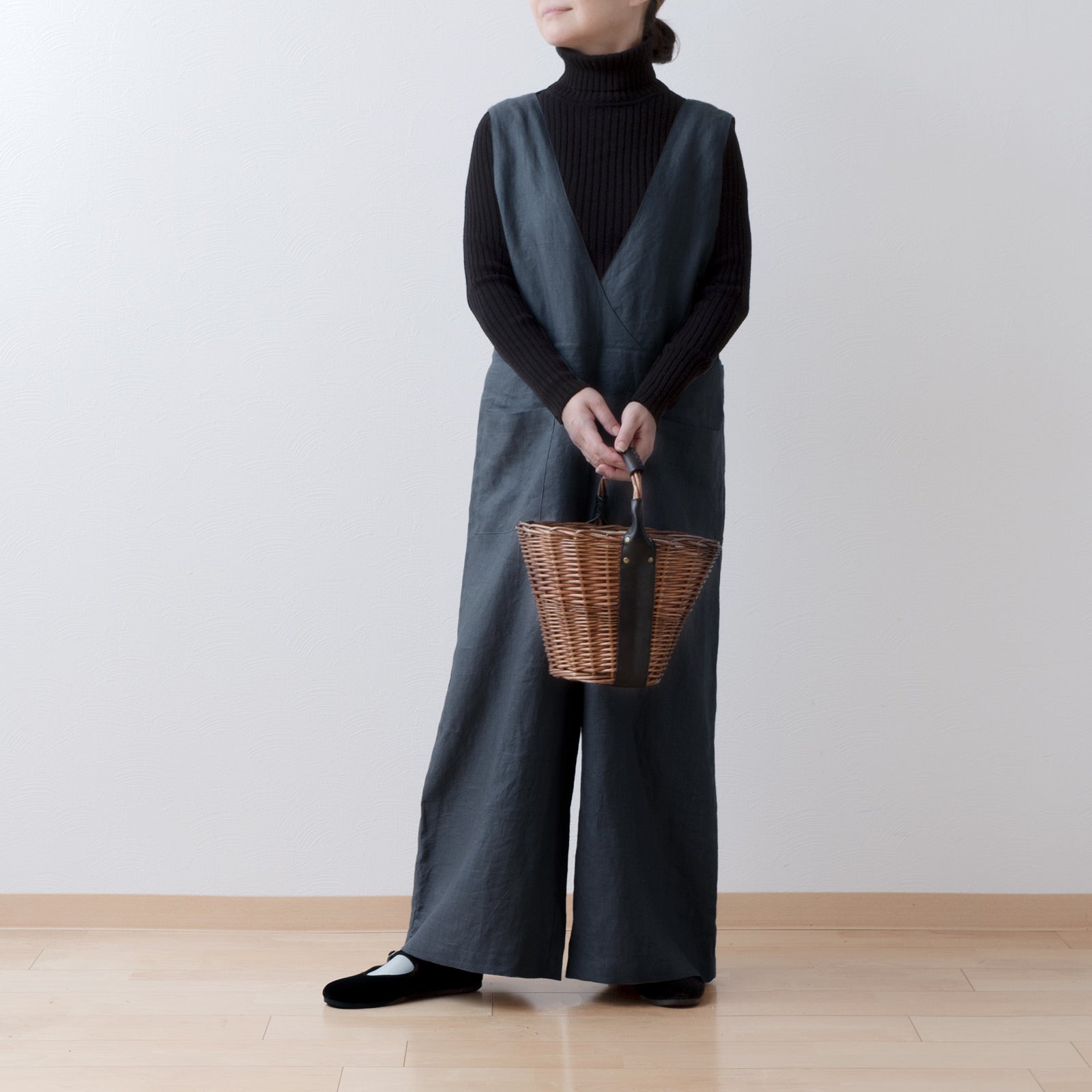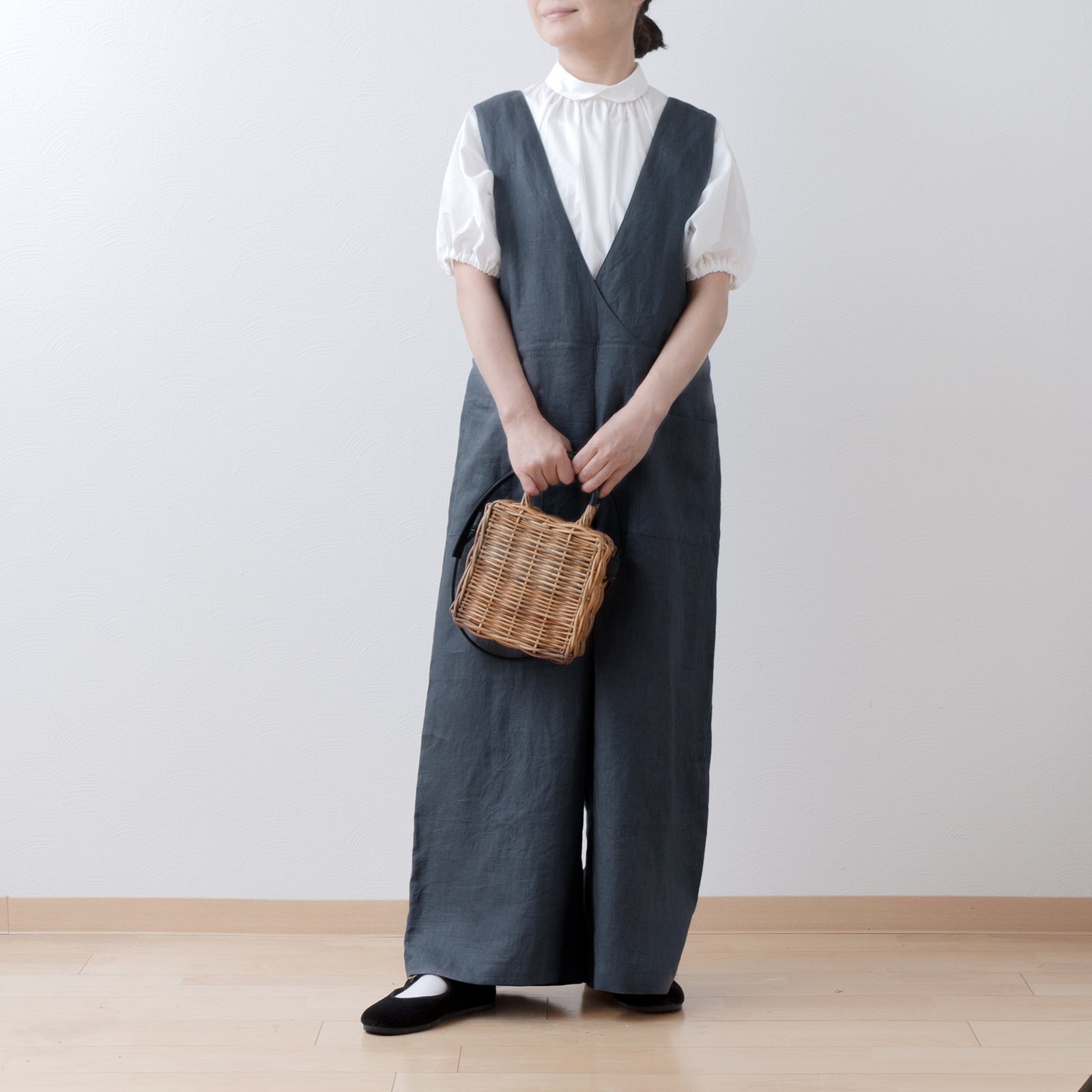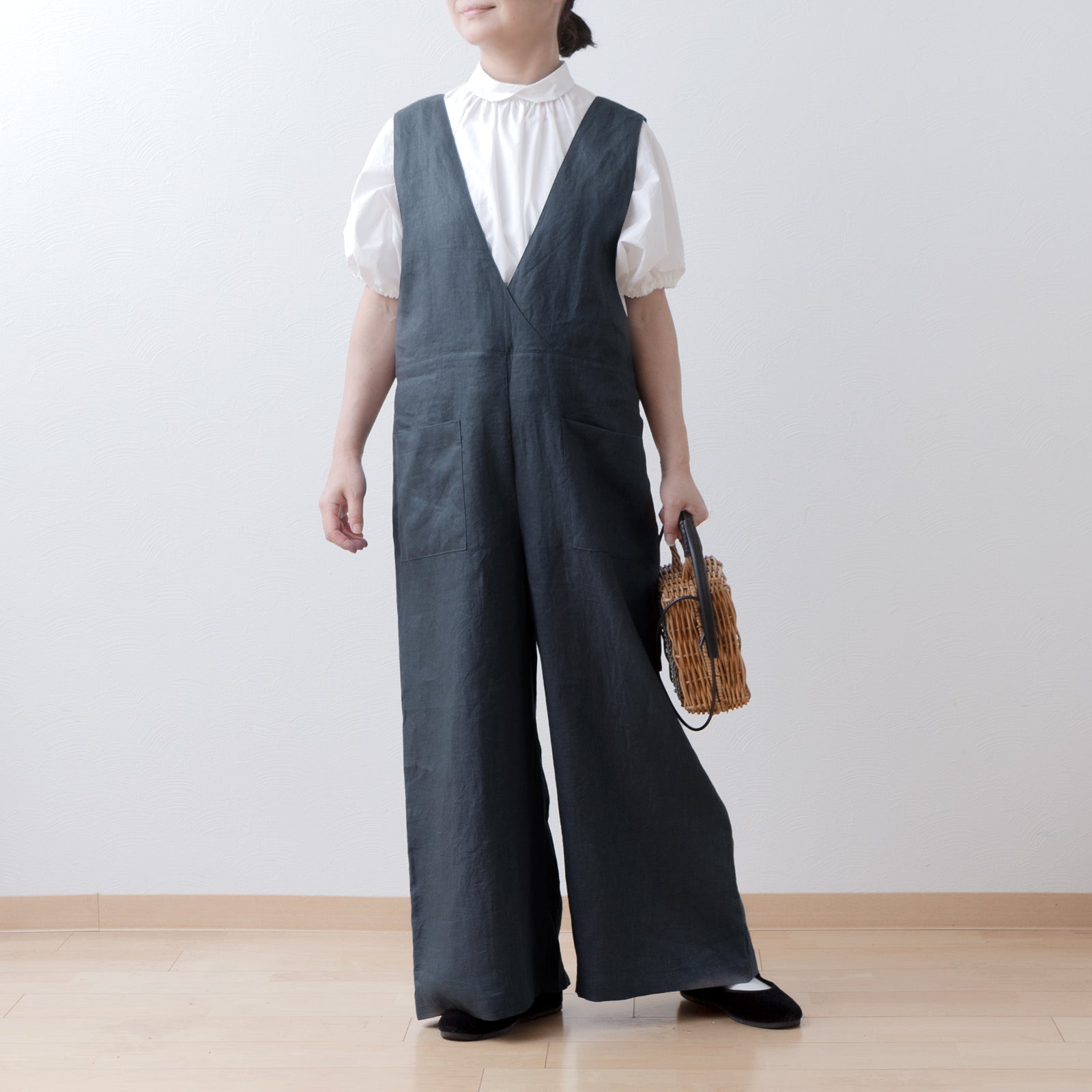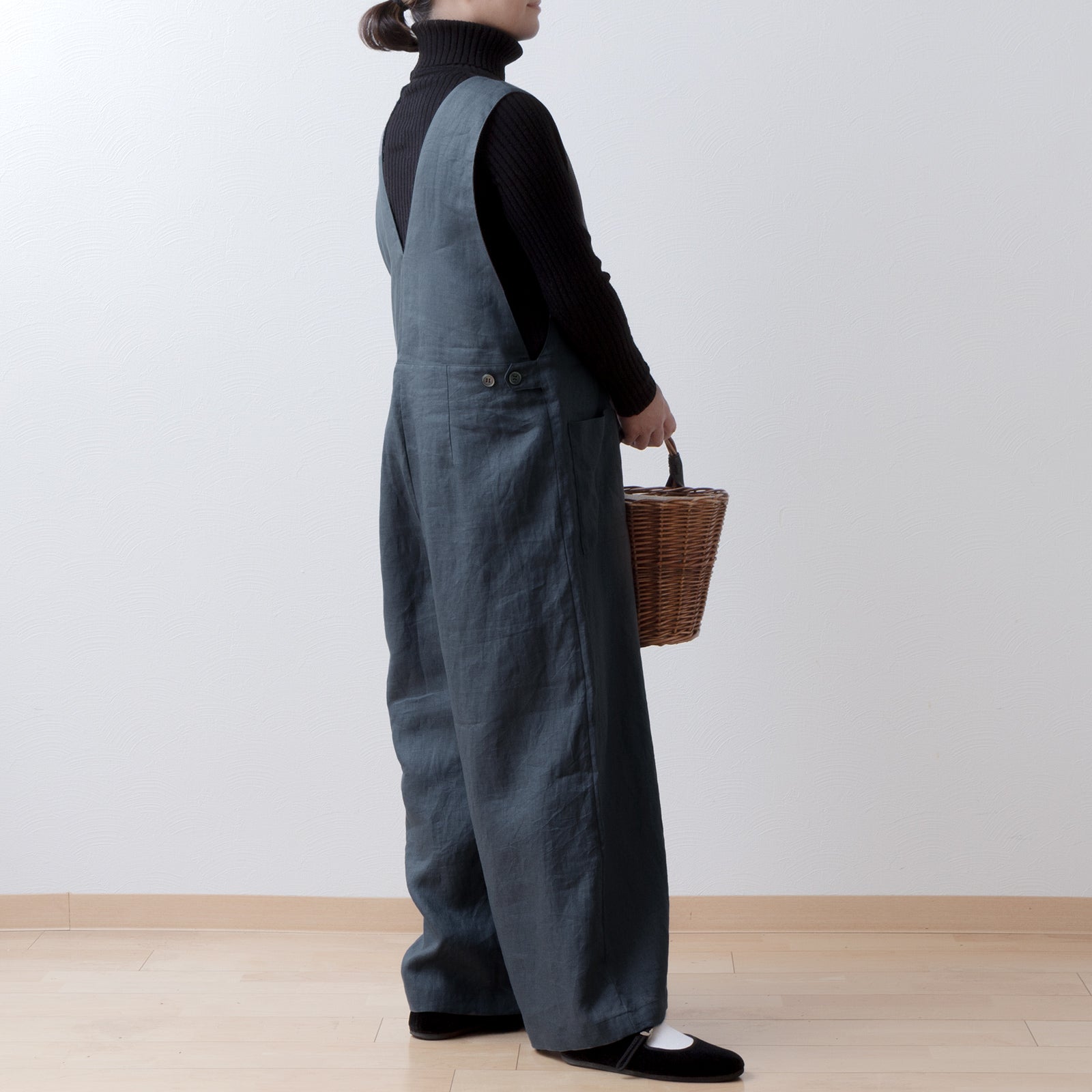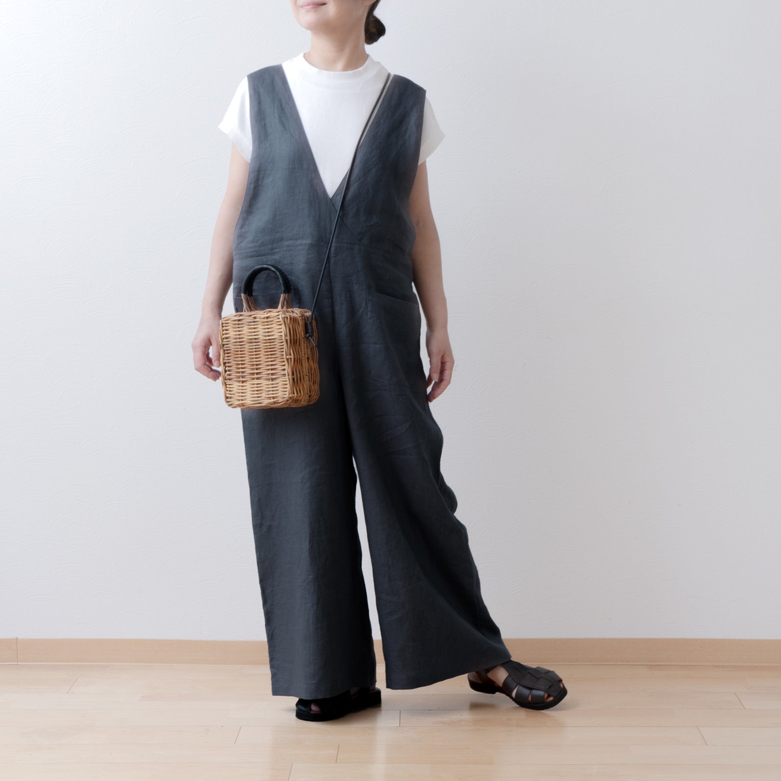 前身採用環繞式設計,後身採用深 V 領設計,使工裝褲看起來精緻而又不會過於休閒。