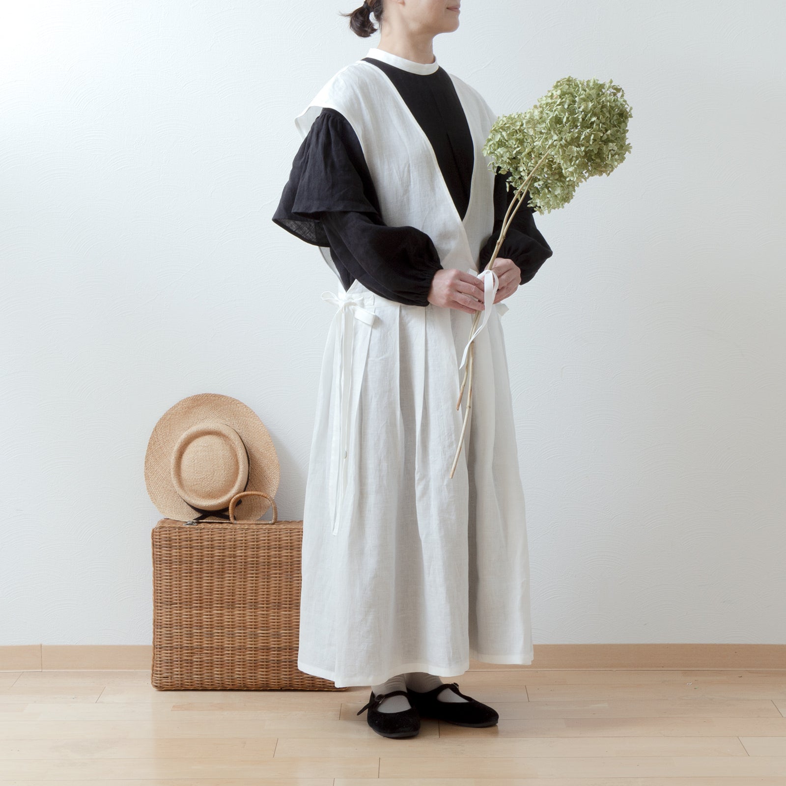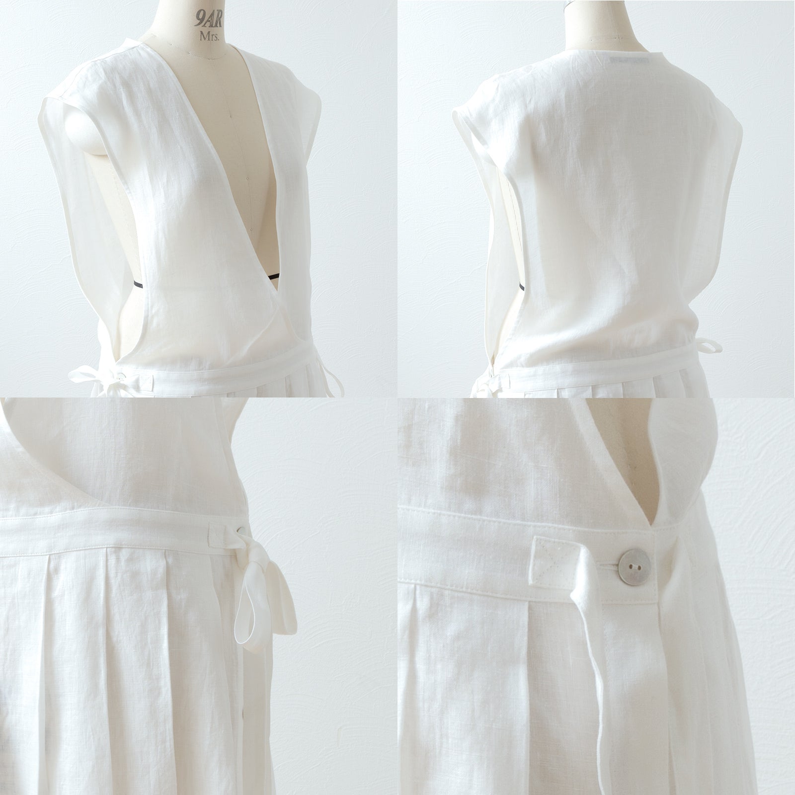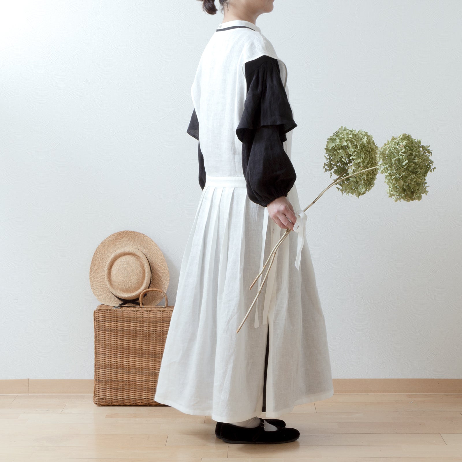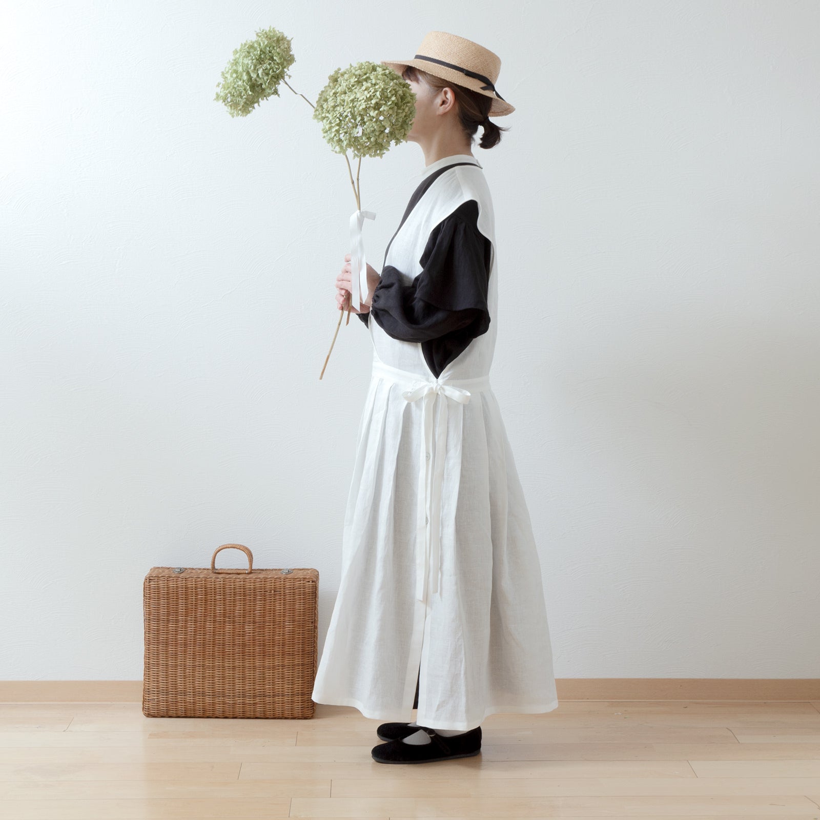 精緻而充滿少女氣息的圍裙式連身裙 - 法國亞麻/米白色