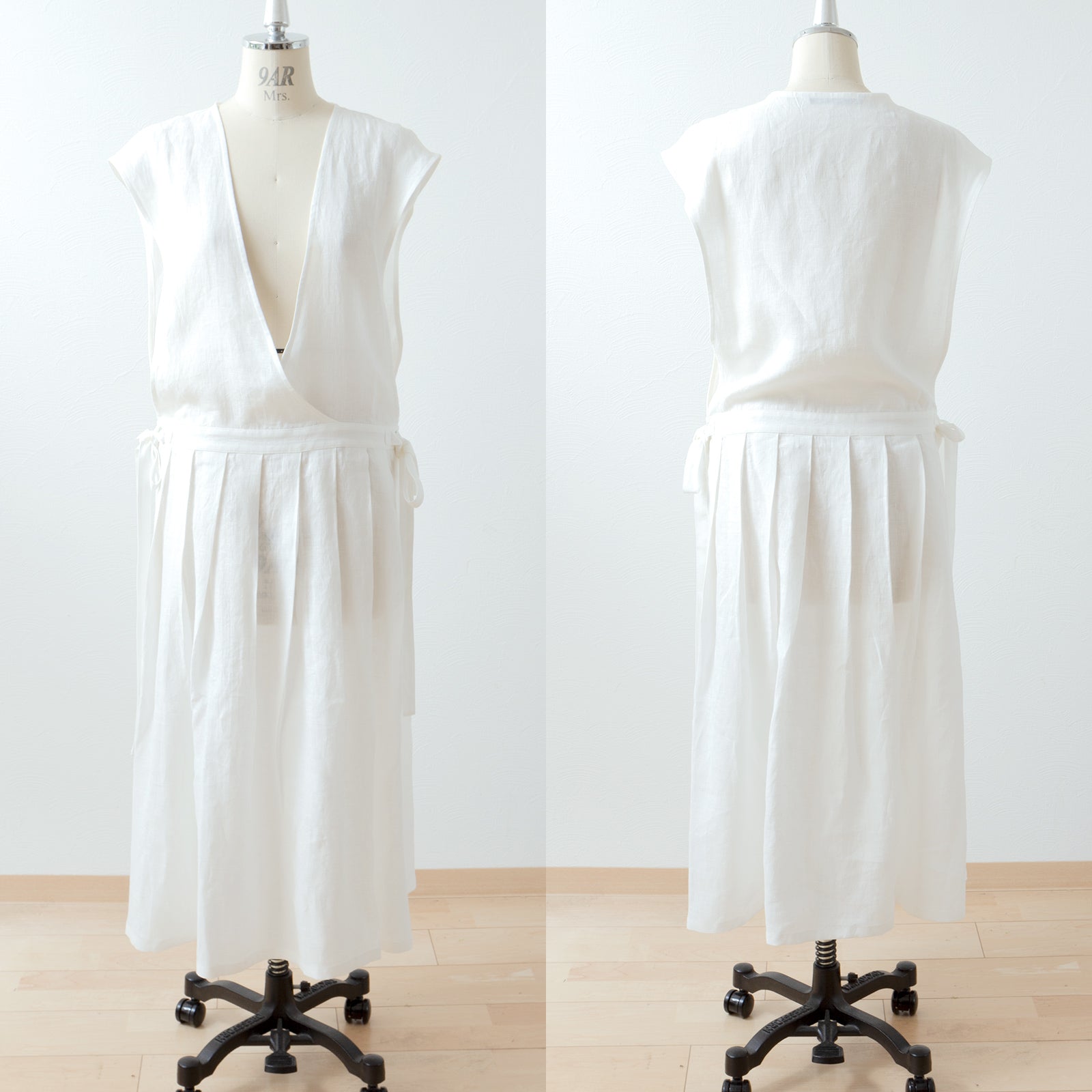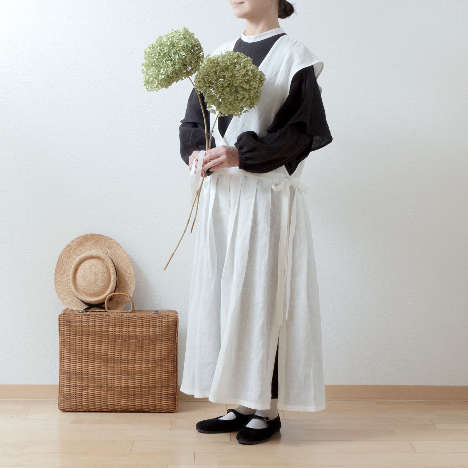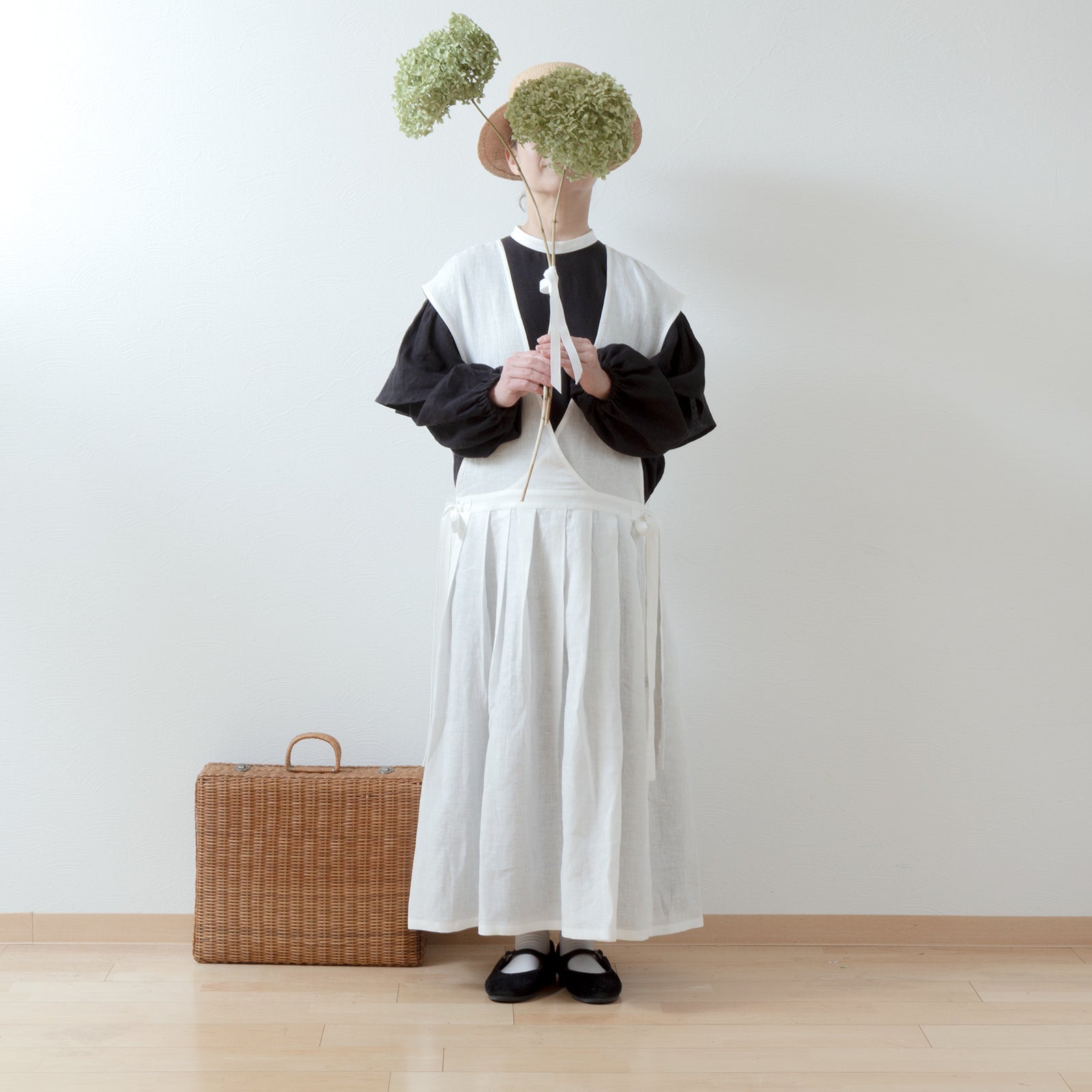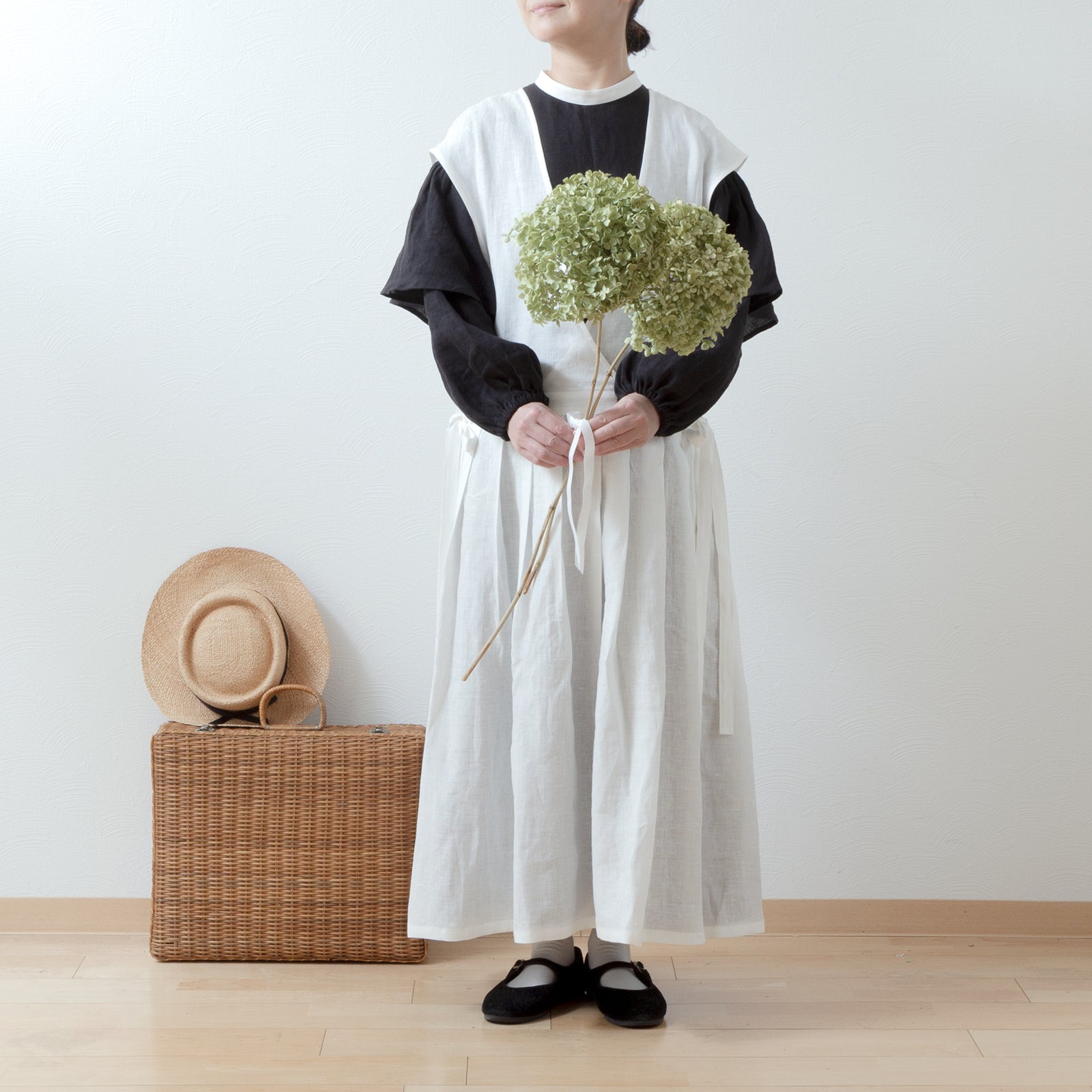 精緻而充滿少女氣息的圍裙式連身裙 - 法國亞麻/米白色