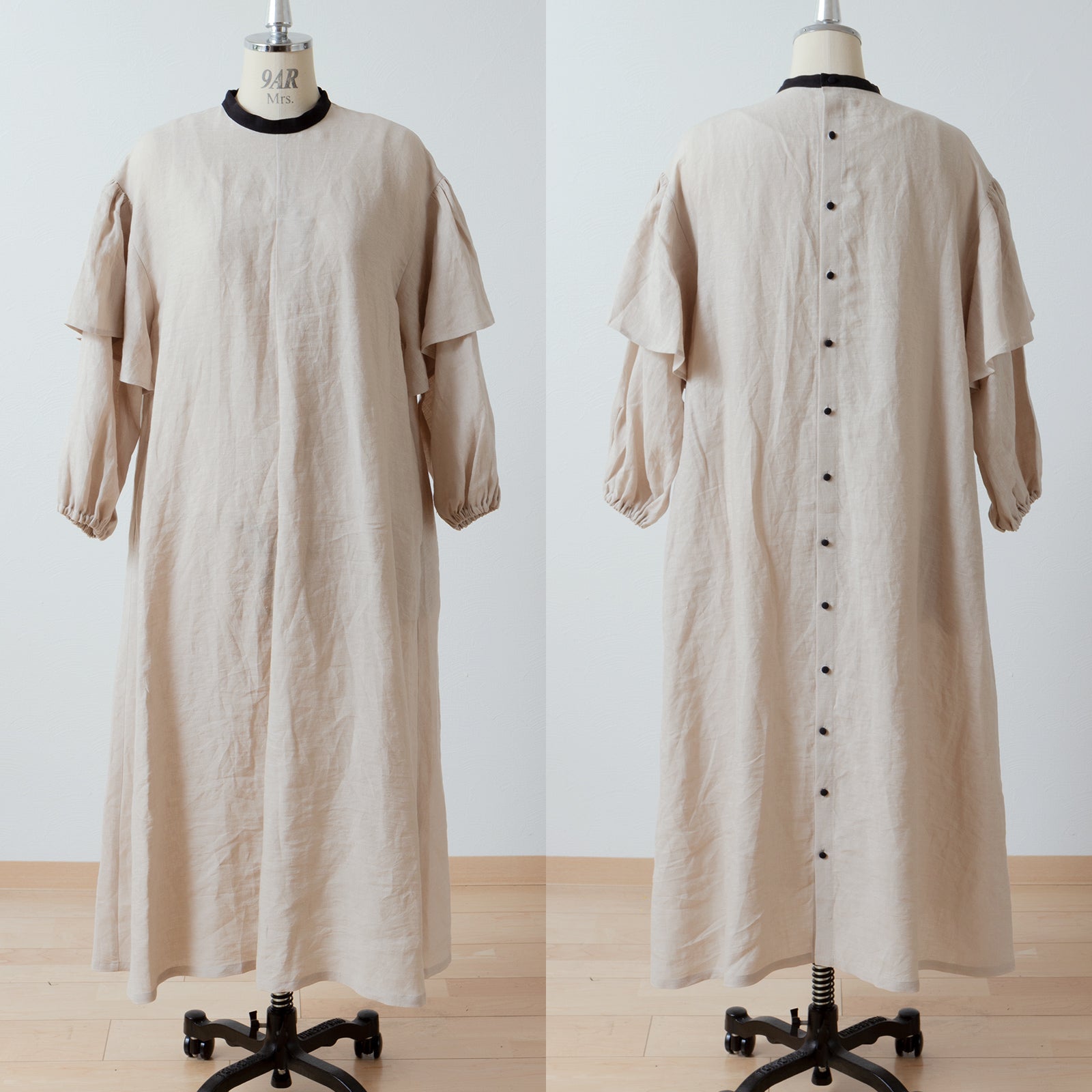這款可愛又成熟的 A 字型連身裙採用雙層袖設計。