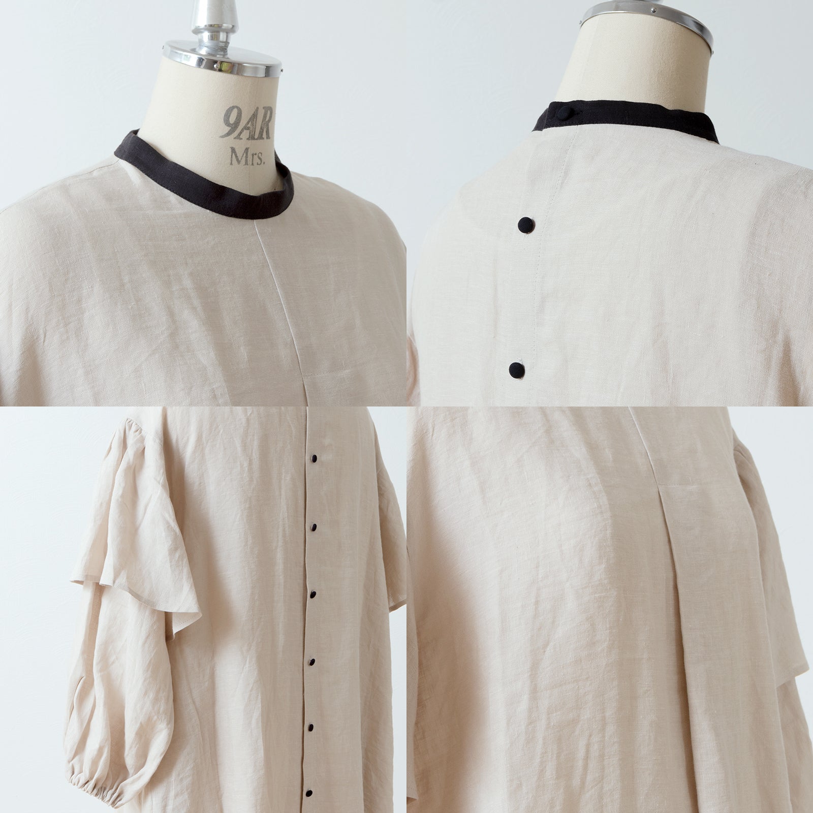收褶喇叭袖寬鬆舒適,袖口採用粗糙的鬆緊帶製成。