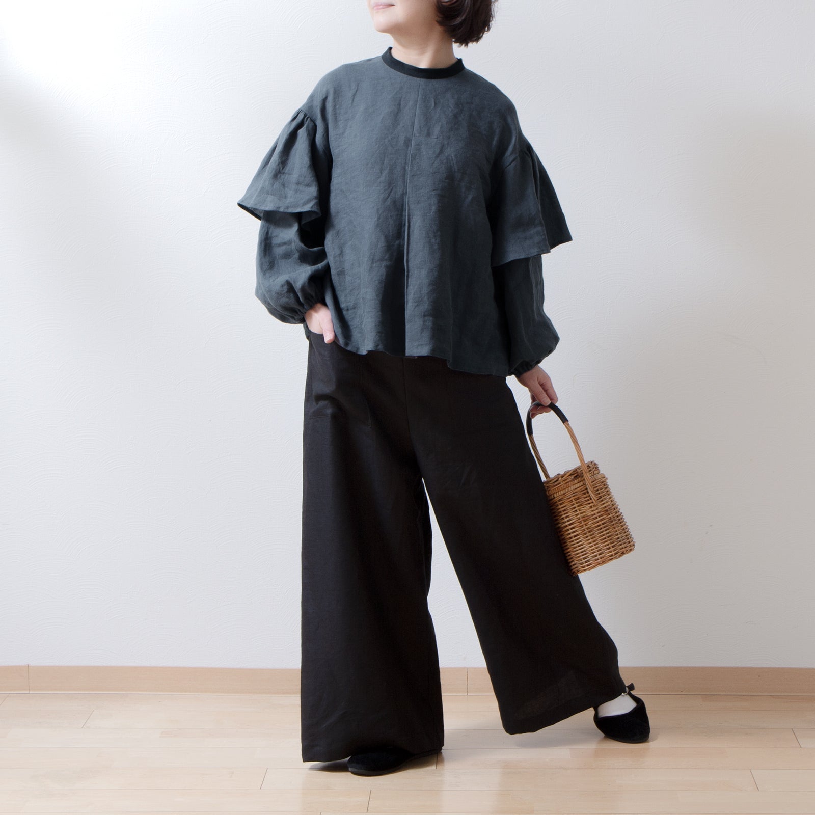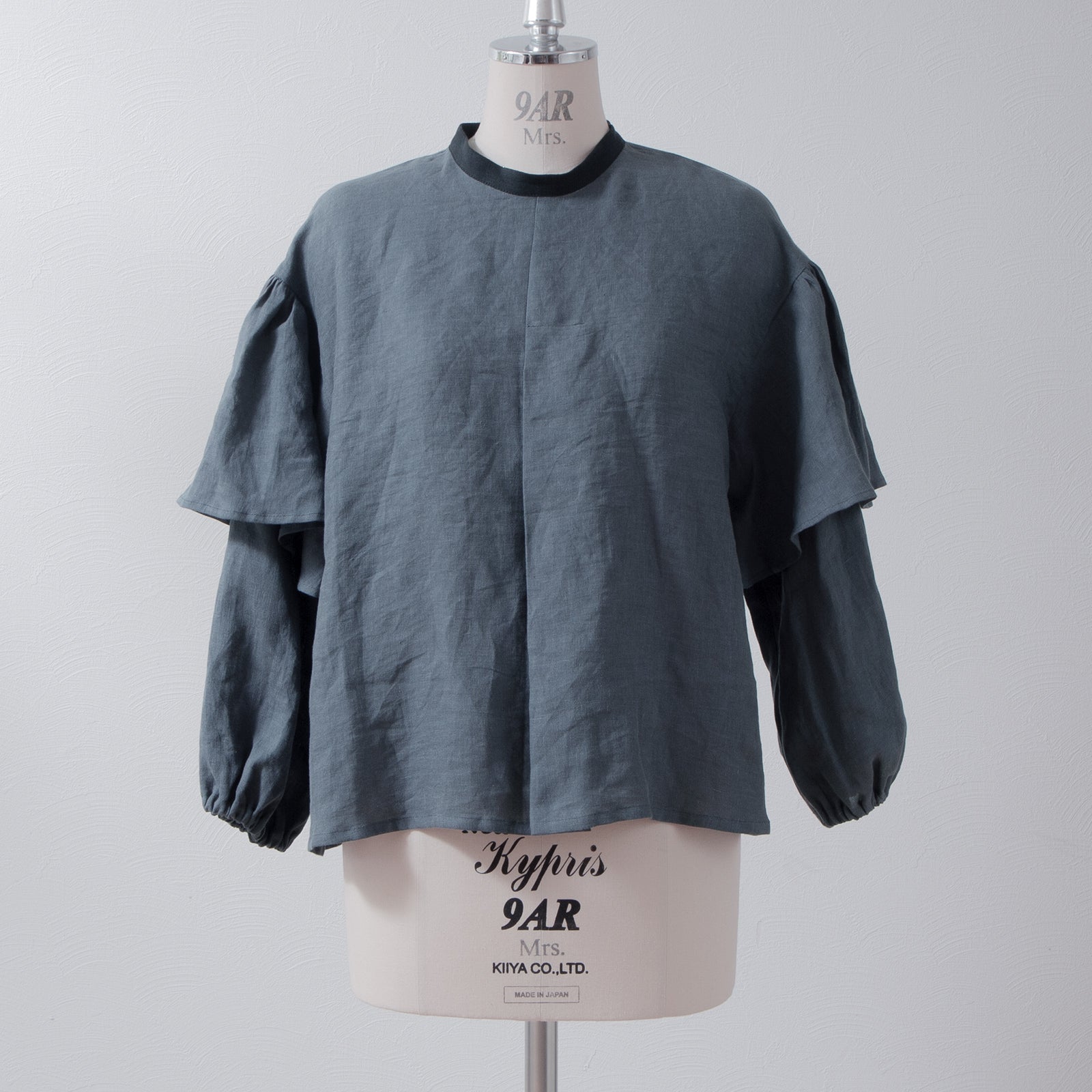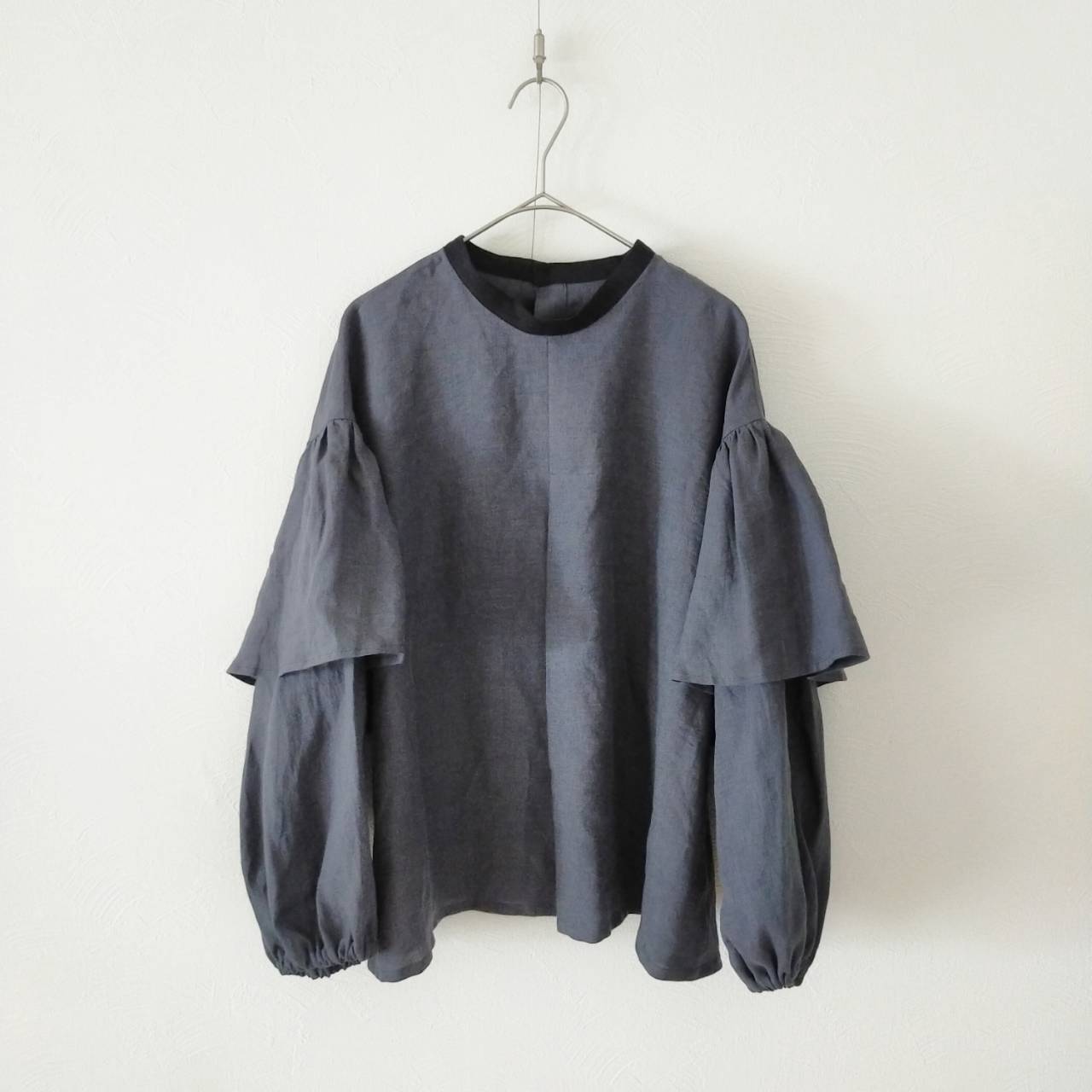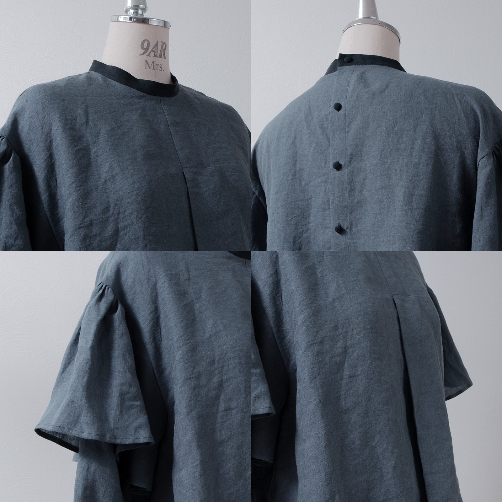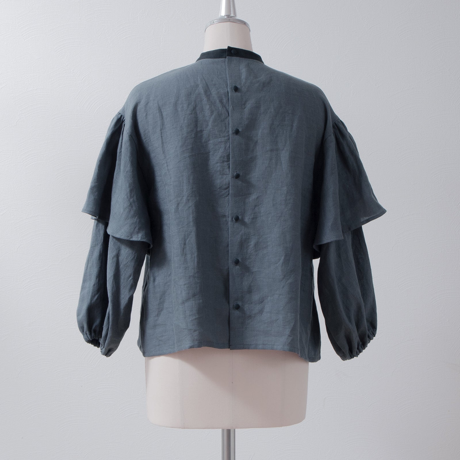 收褶喇叭袖寬鬆舒適,袖口採用粗糙的鬆緊帶製成。
