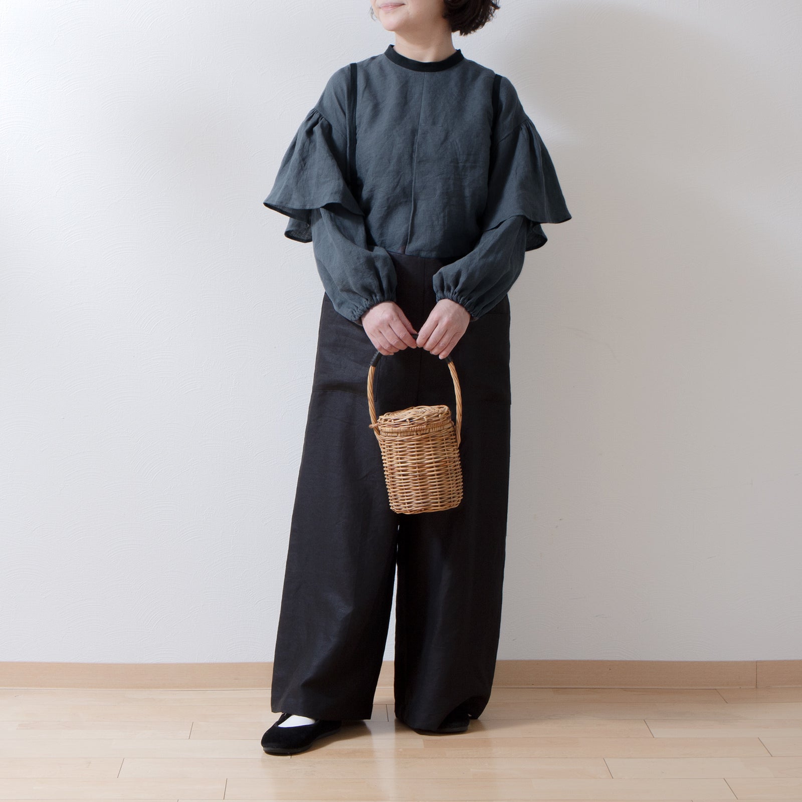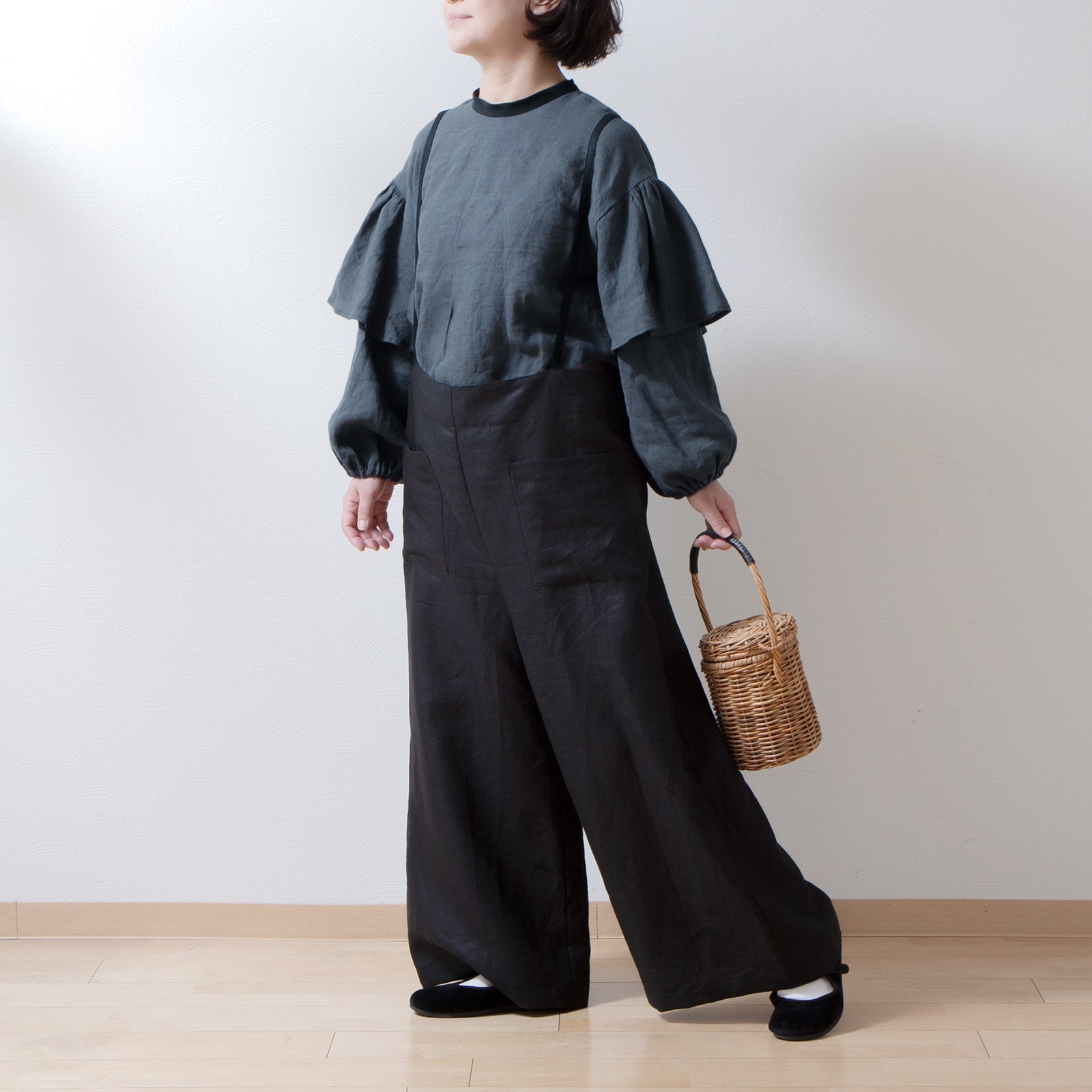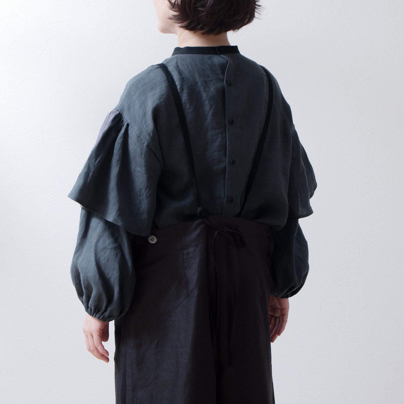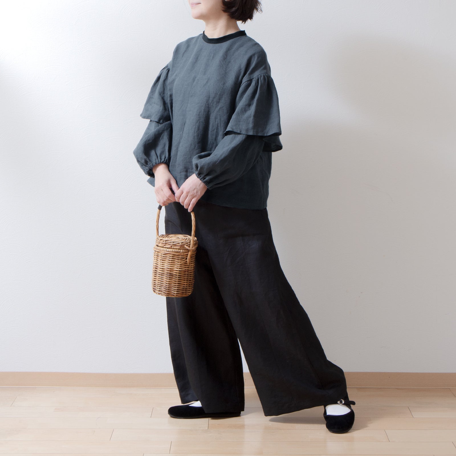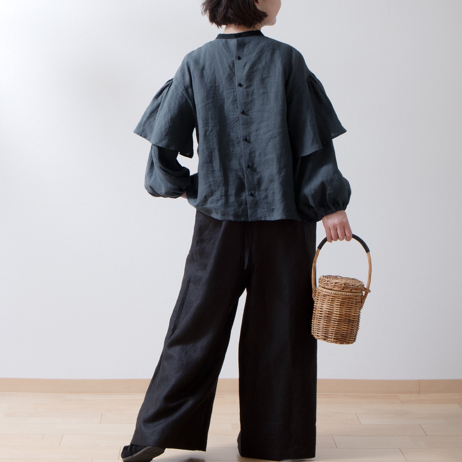 收褶喇叭袖寬鬆舒適,袖口採用粗糙的鬆緊帶製成。