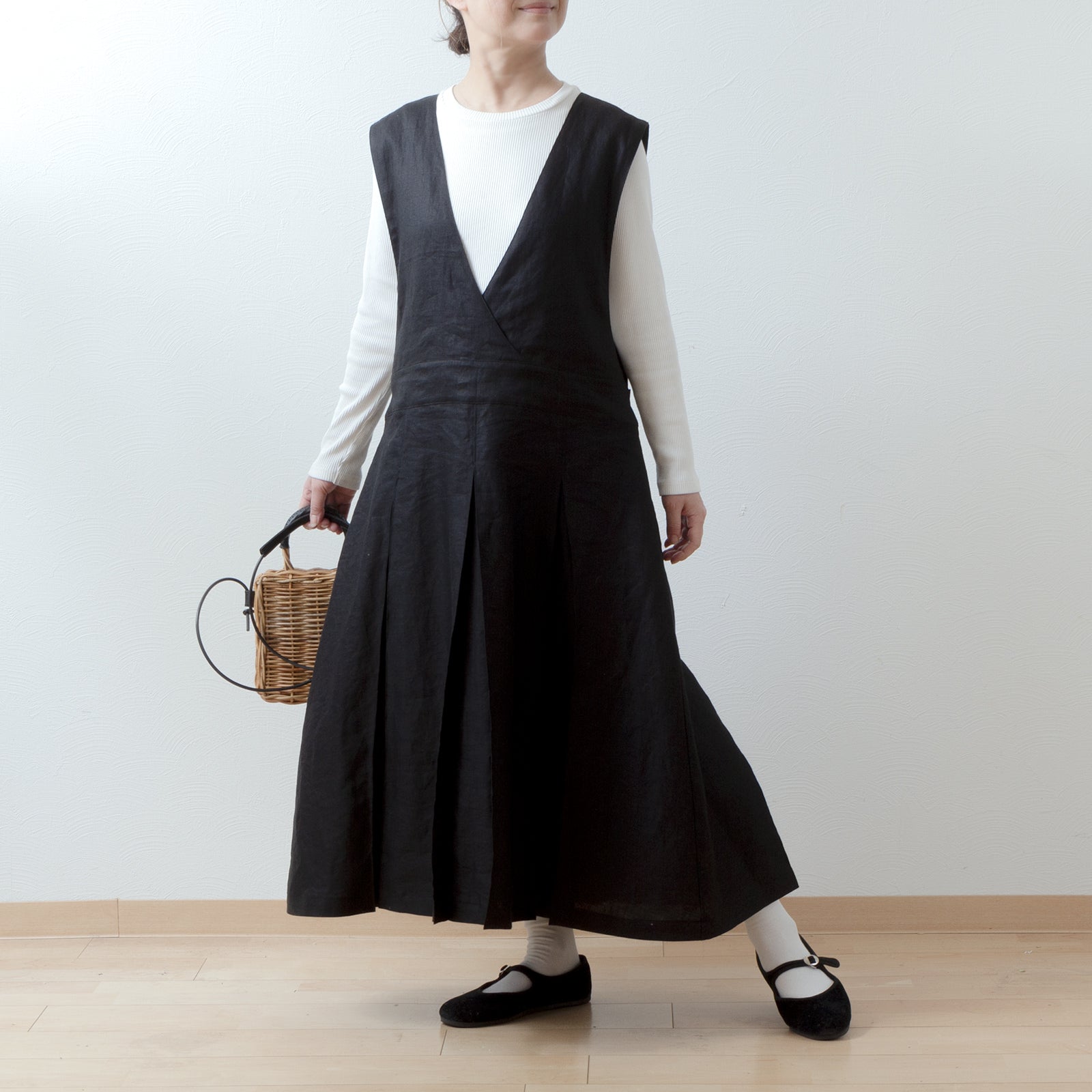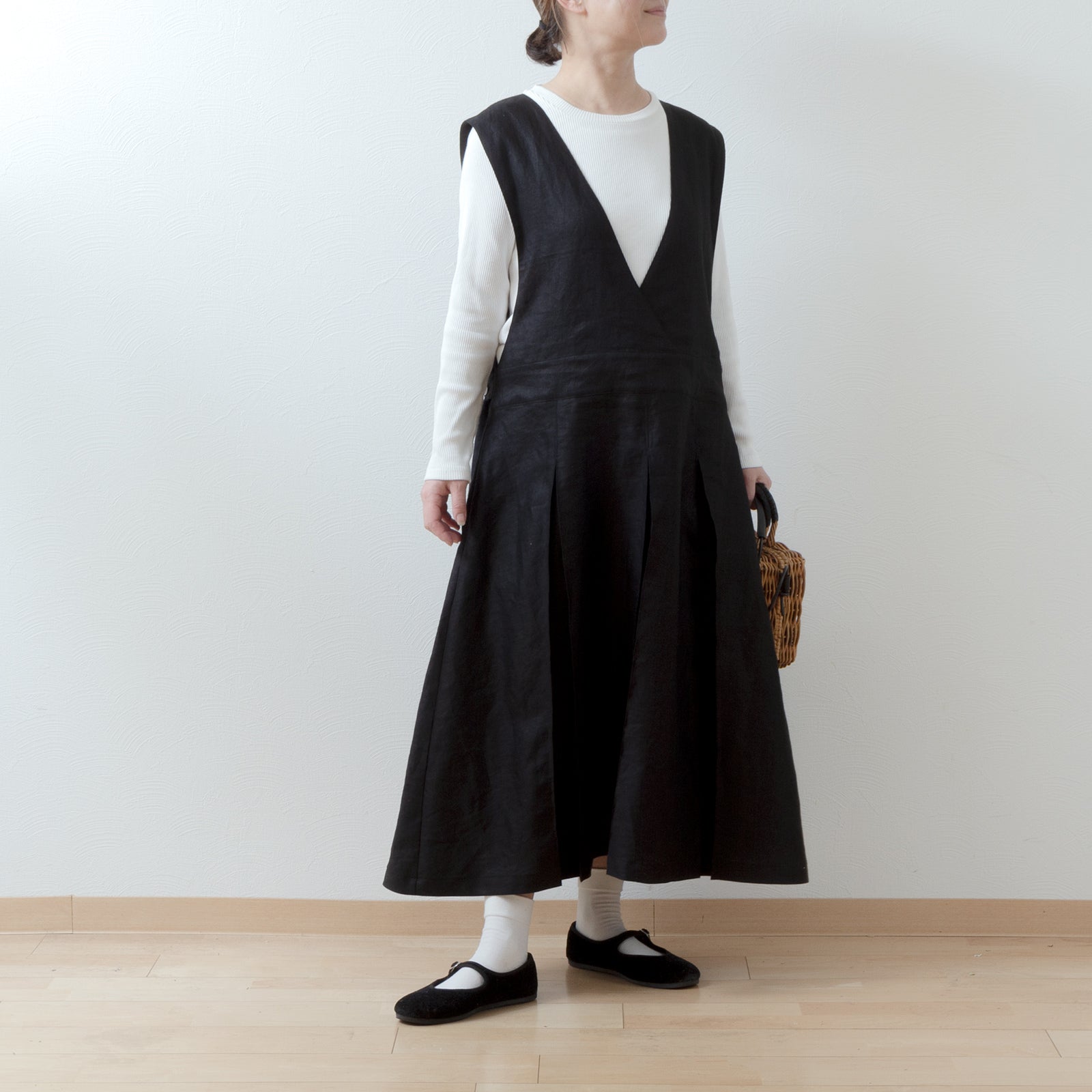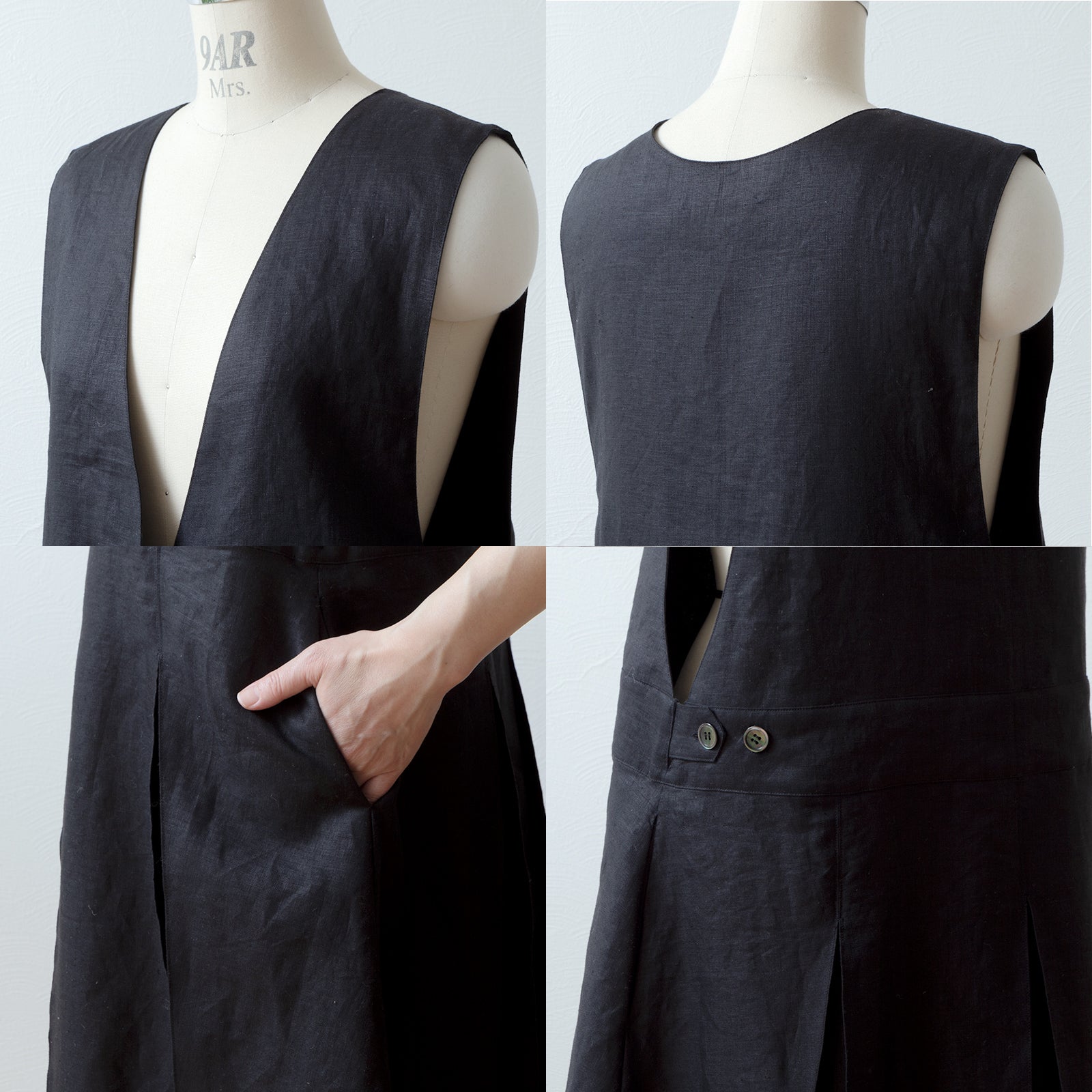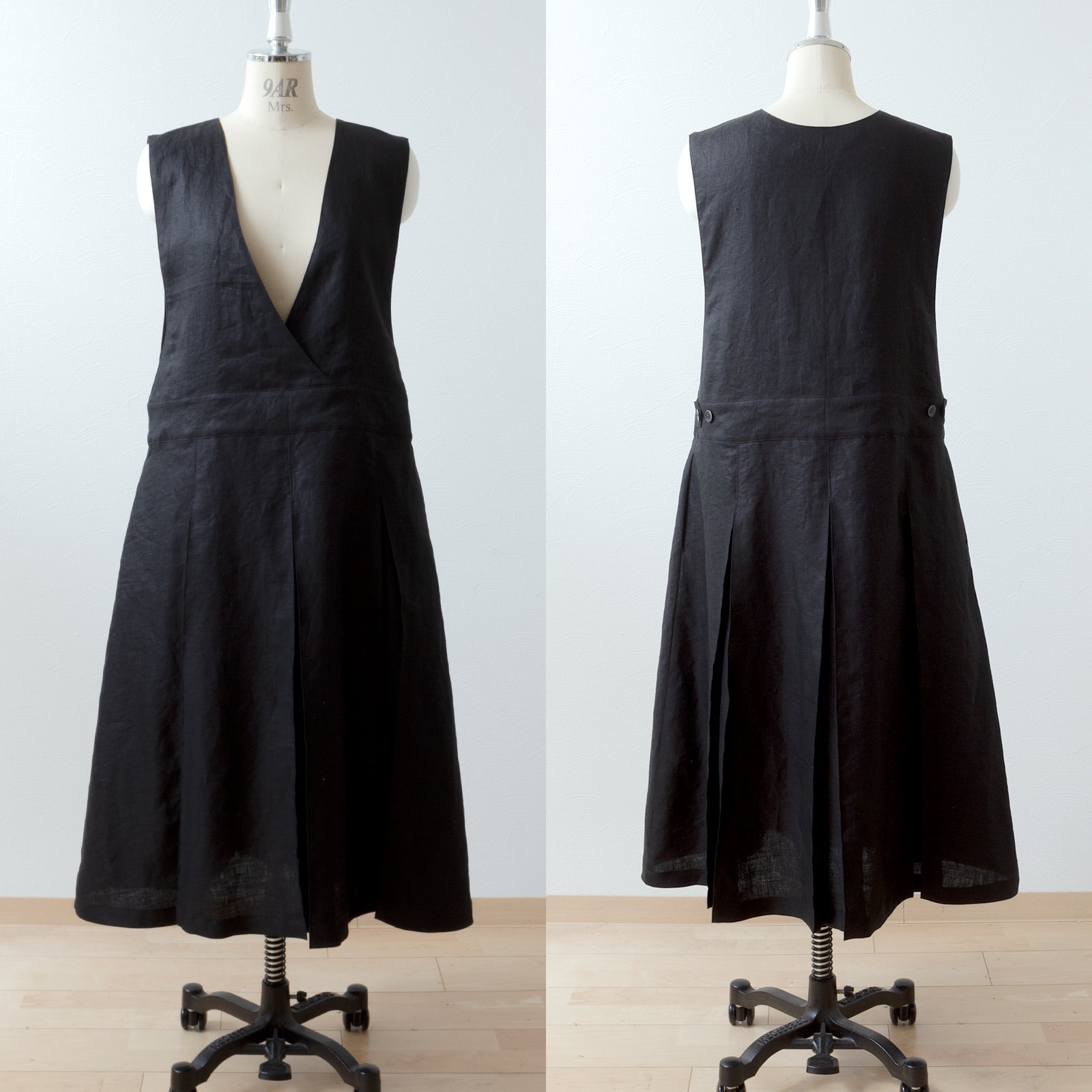 受歡迎的冬季裹胸褶皺連身裙採用 Riprune 經典亞麻材料重新設計,同時保留了相同的設計。