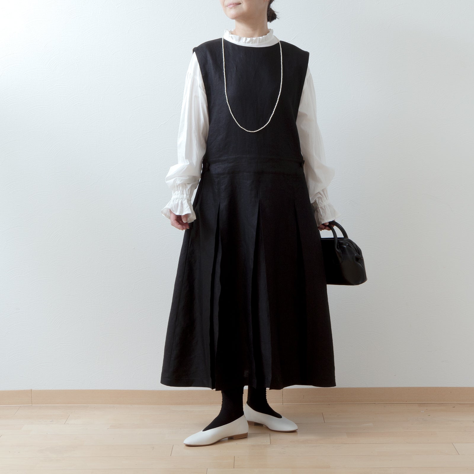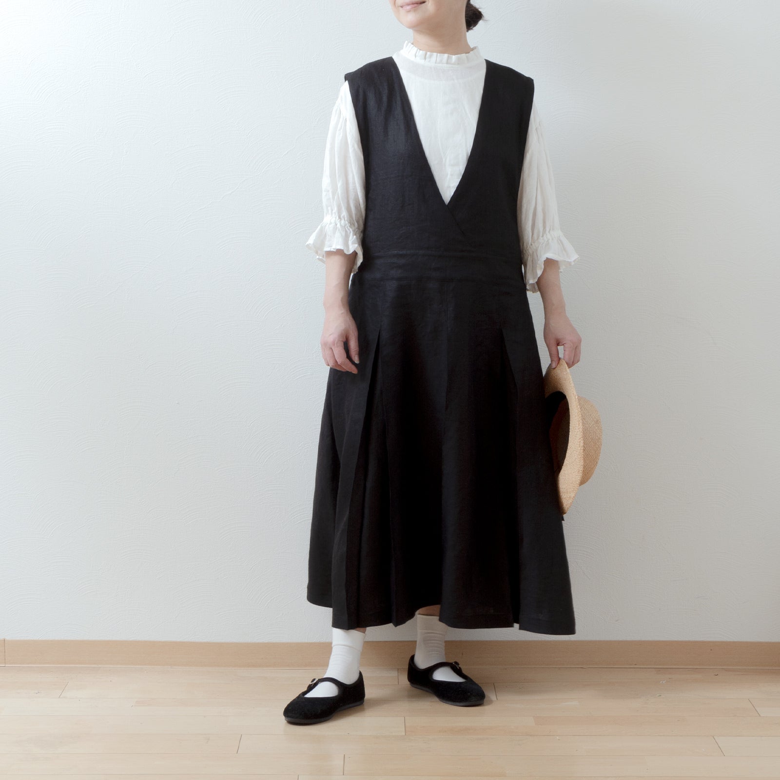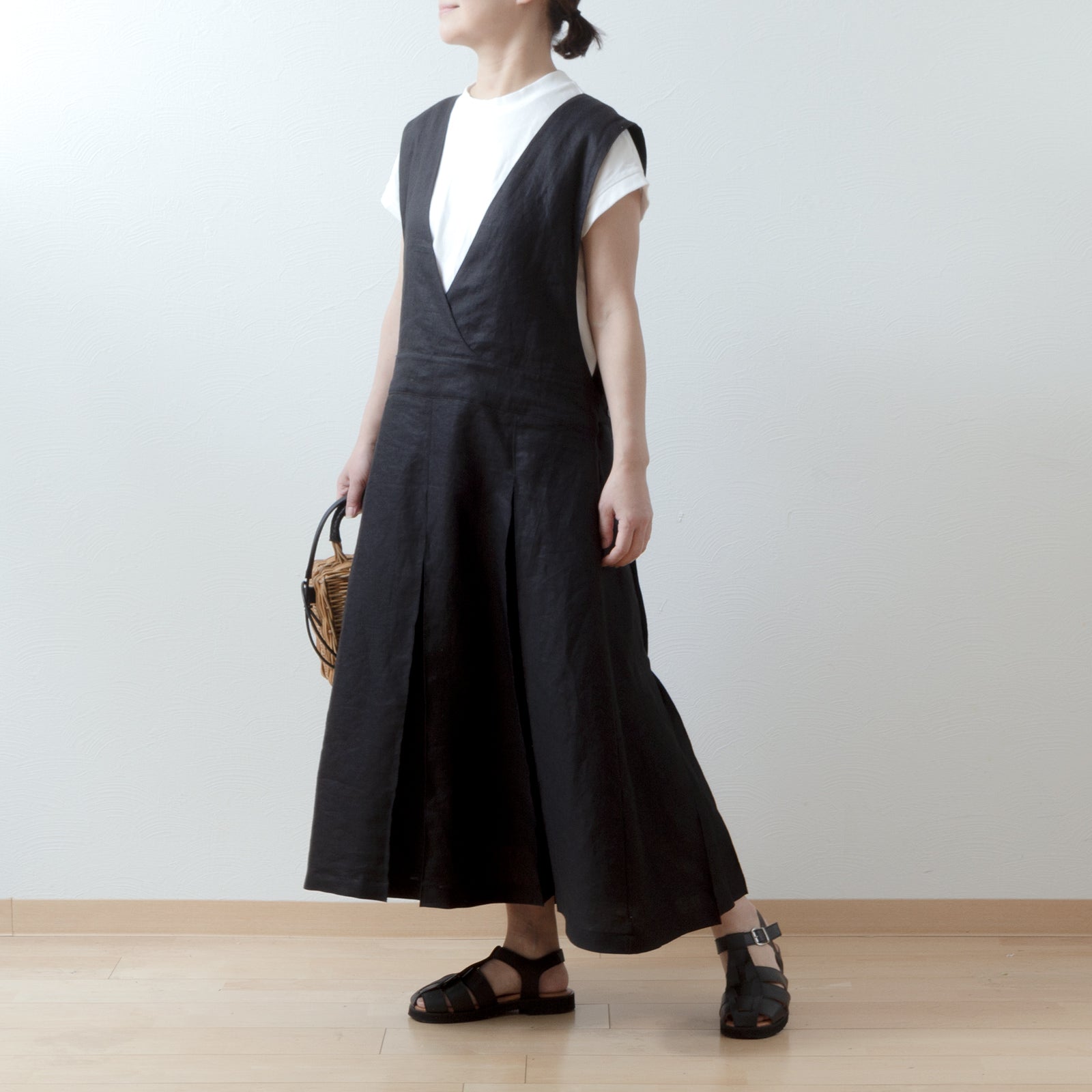 受歡迎的冬季裹胸褶皺連身裙採用 Riprune 經典亞麻材料重新設計,同時保留了相同的設計。
